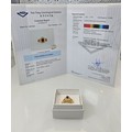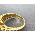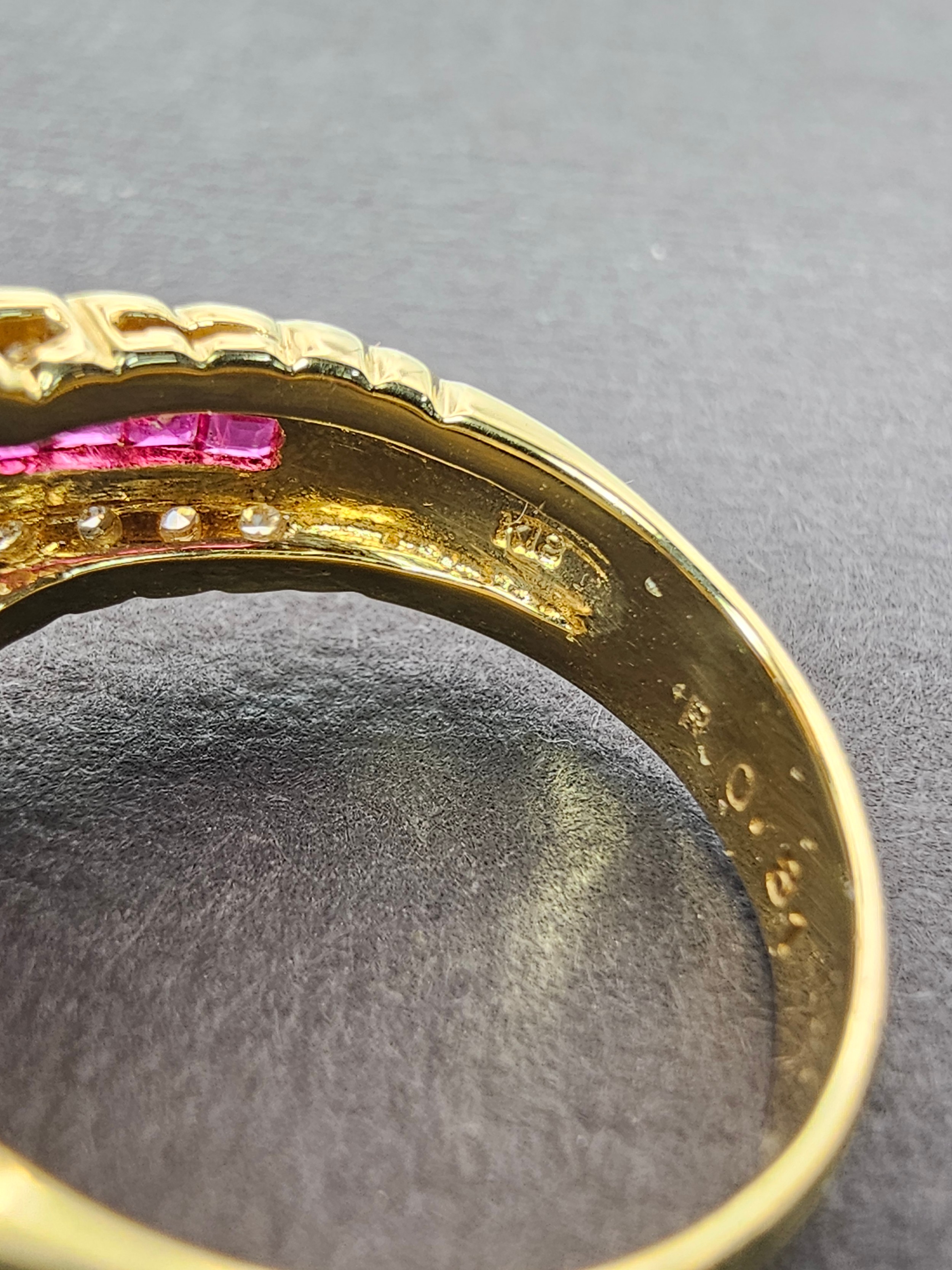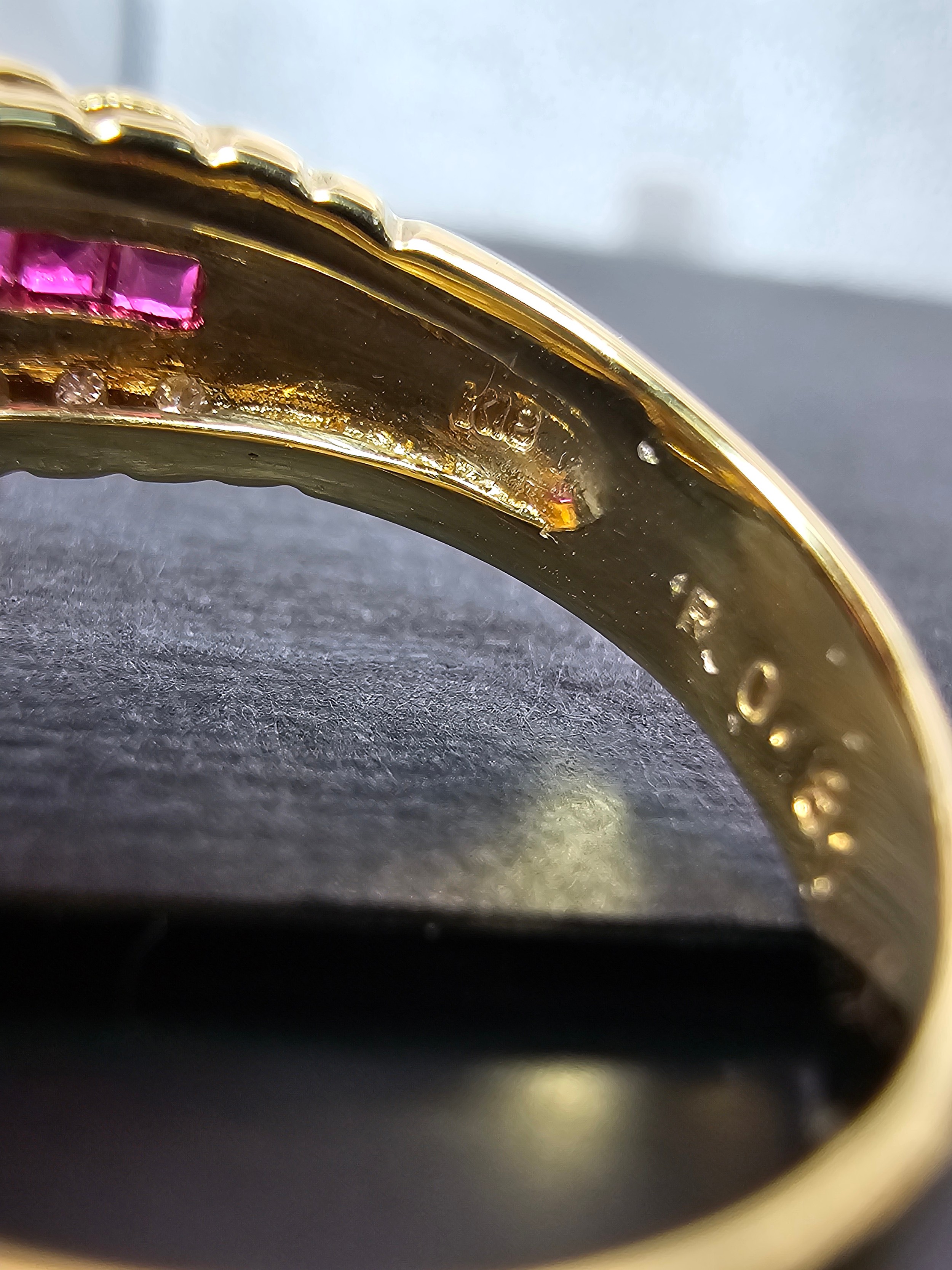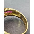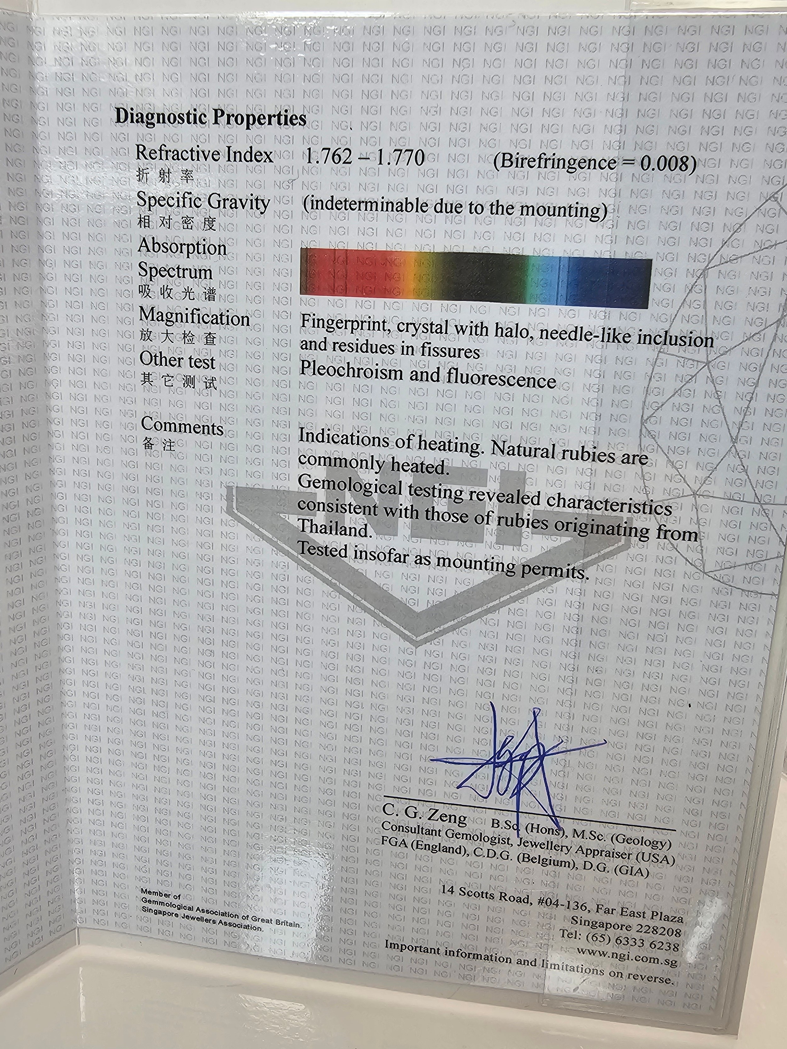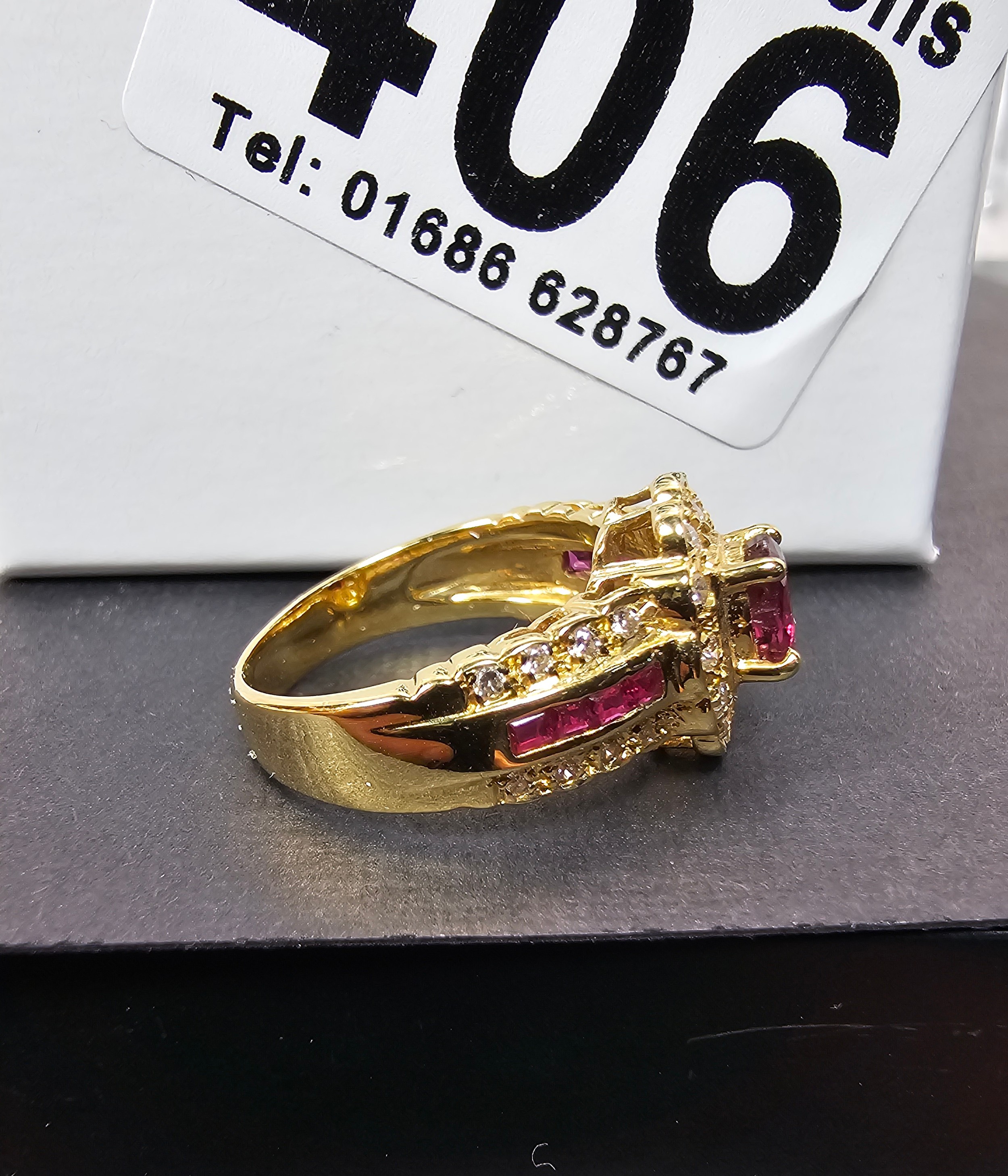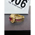 A fine quality 18ct Gold Ruby & Diamond Halo Ring. Claw set with an oval cut natural Ruby weighing 0.81ct, displaying a pleasing red hue, surrounded by a halo of round brilliant cut diamonds, the shoulders further accented with diamond and calibre cut ruby detail stones creating a well balanced and elegant design. Accompanied by it's NGI Gemstone Report confirming the Ruby to be natural with indications of heating, a standard and accepted treatment within the trade. The ring is brand new and displays very nicely. total weight of the ring is 6.14g. Complete with its presenetation box.