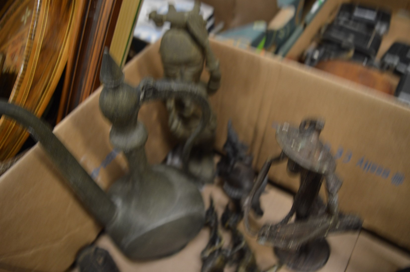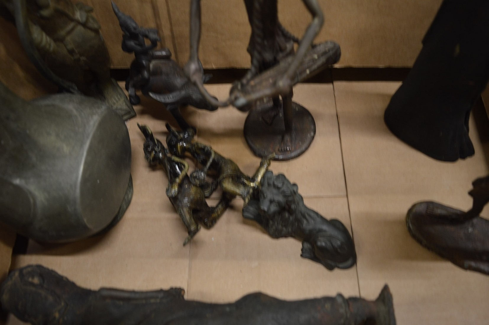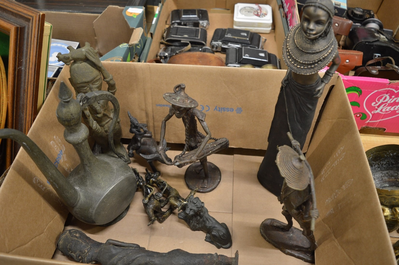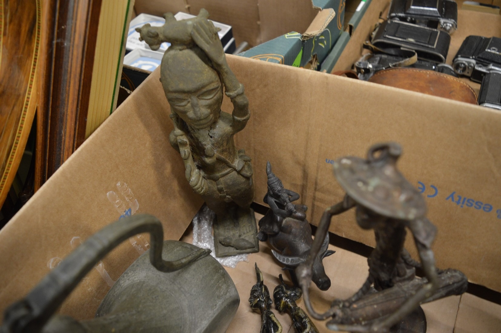 Benin style bronze figure and related items.