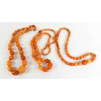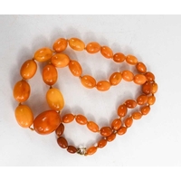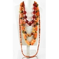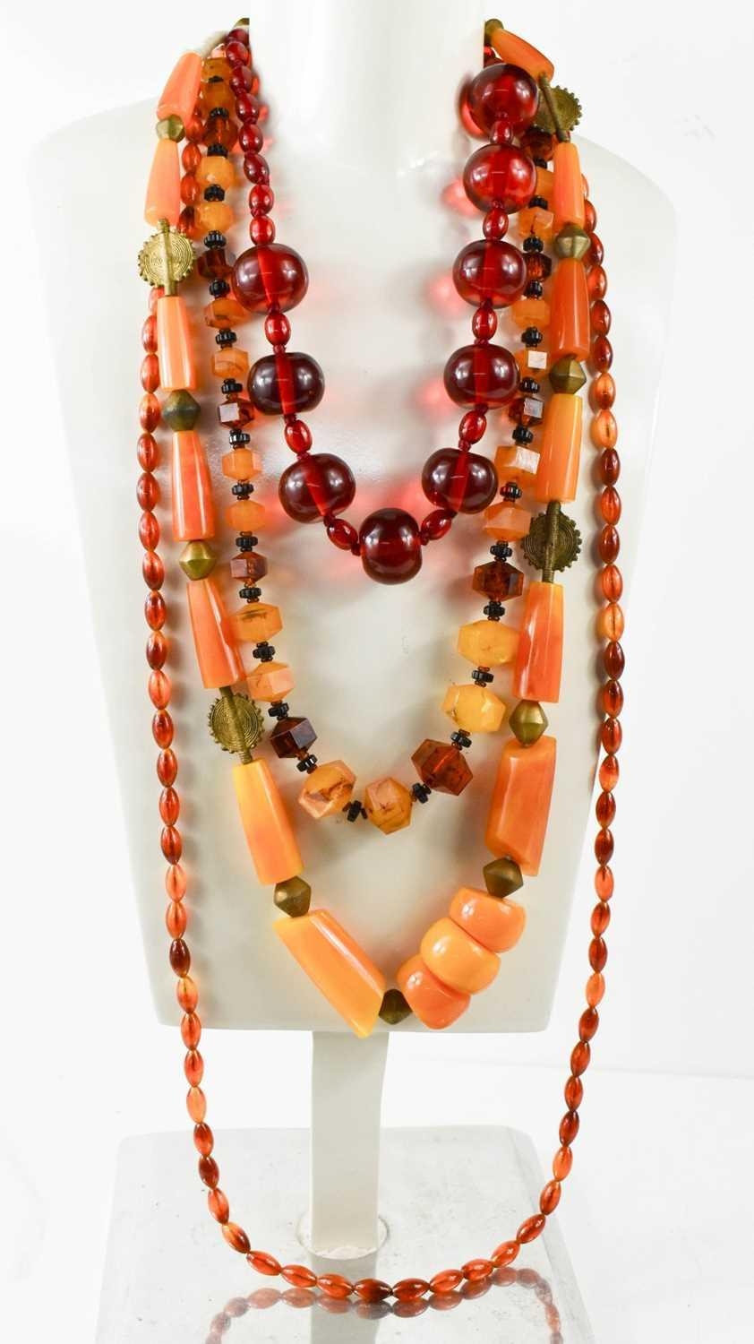 A group of four vintage faux amber and amber coloured necklaces.
