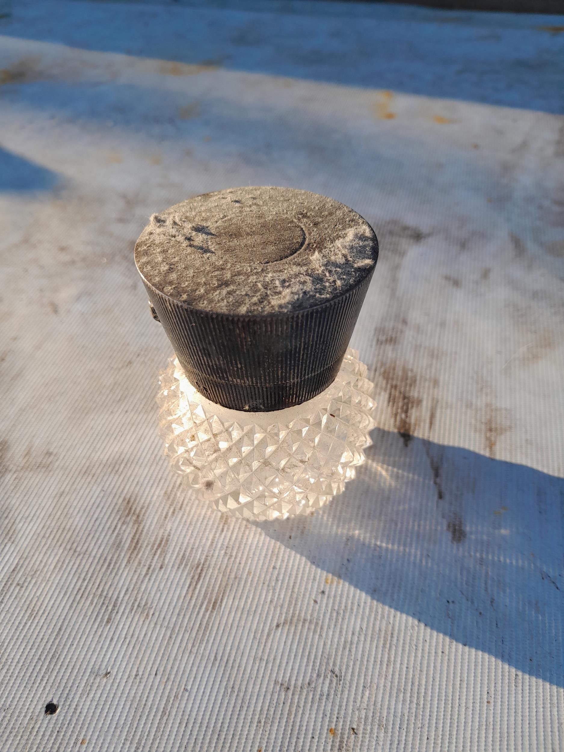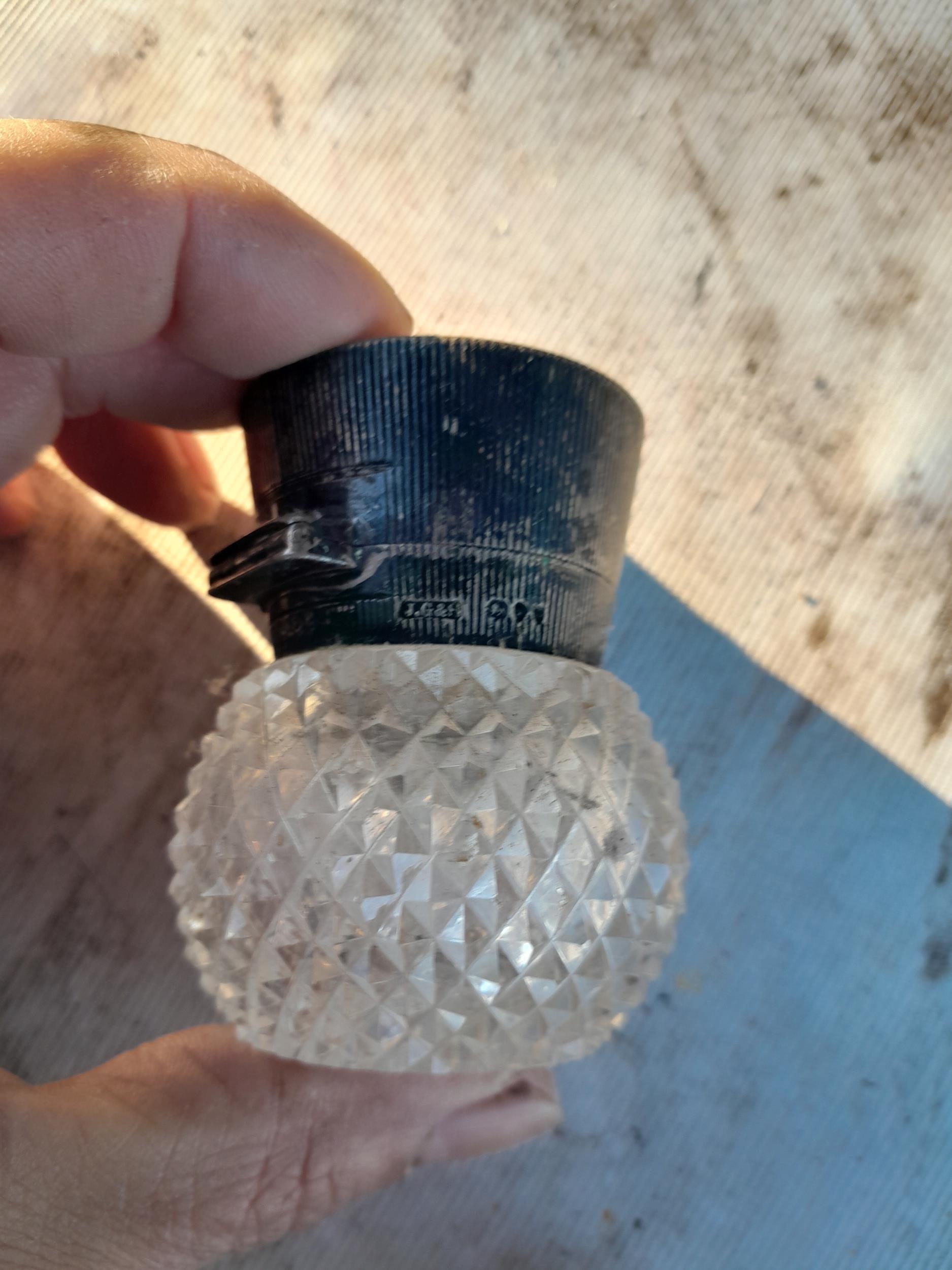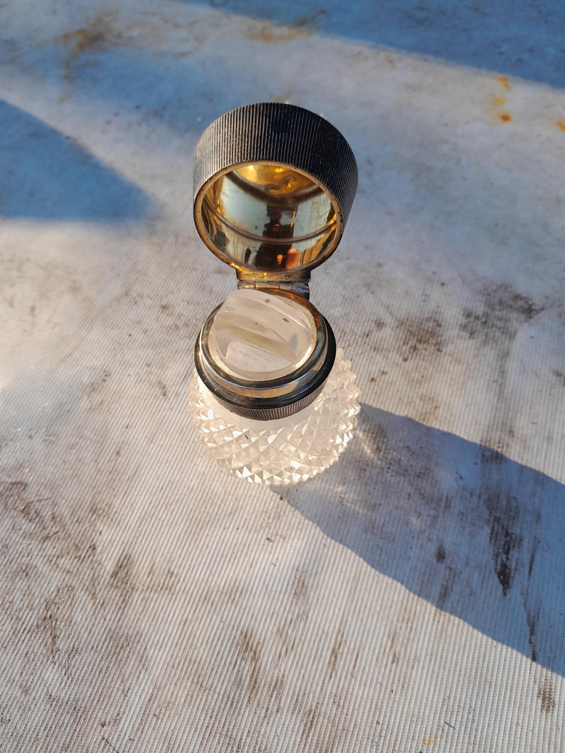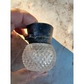 Silver lidded diamond cut glass scent bottle