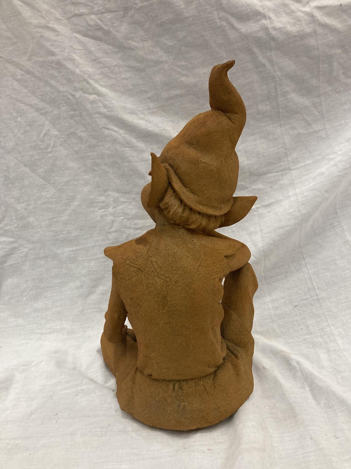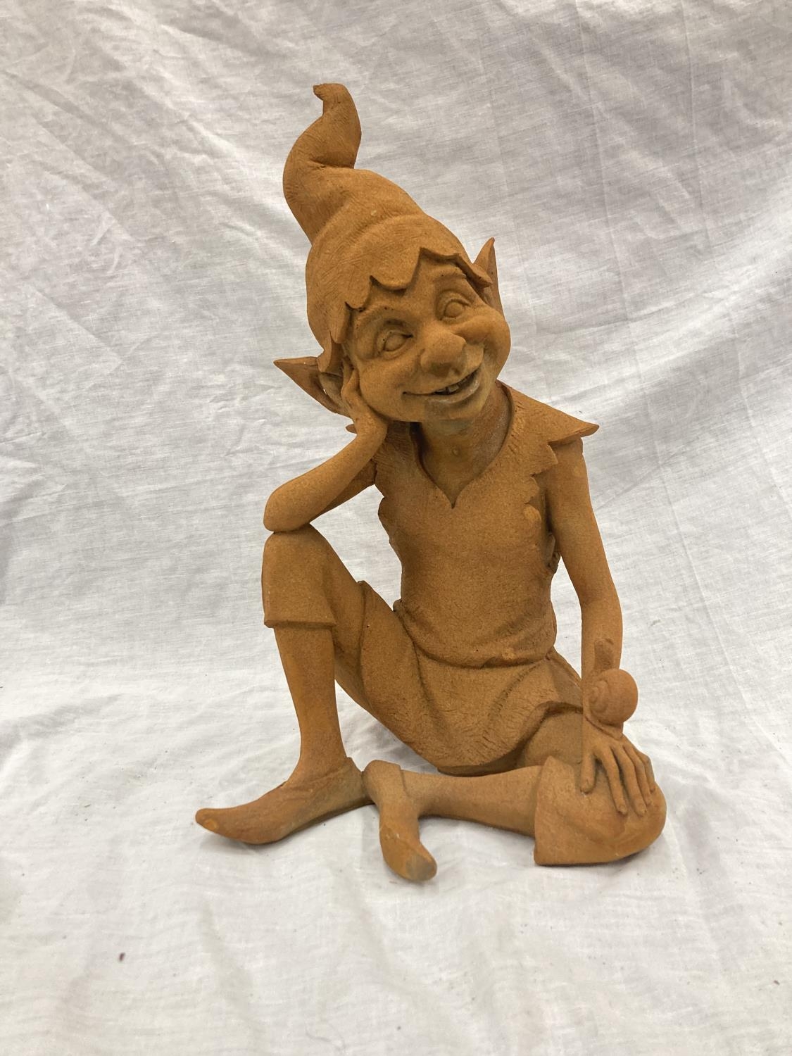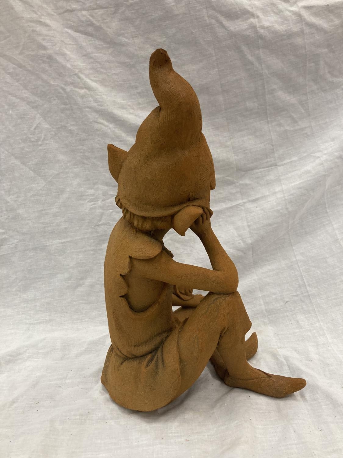 A CAST RUSTY GARDEN PIXIE - HEIGHT 37CM