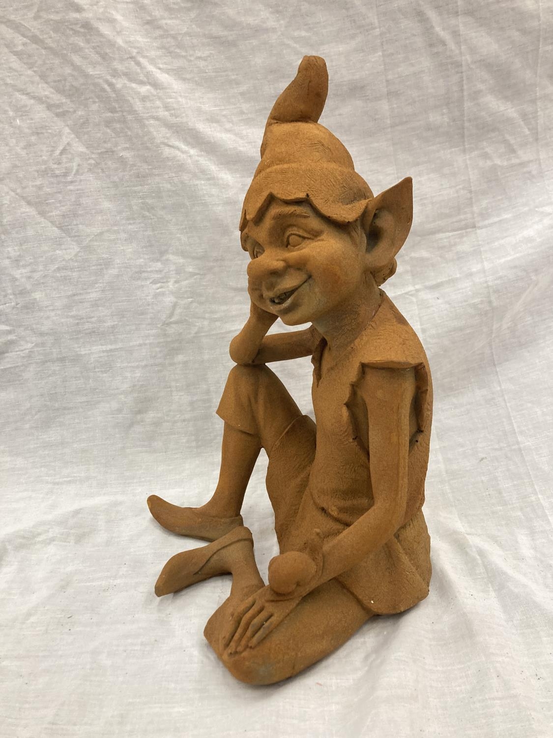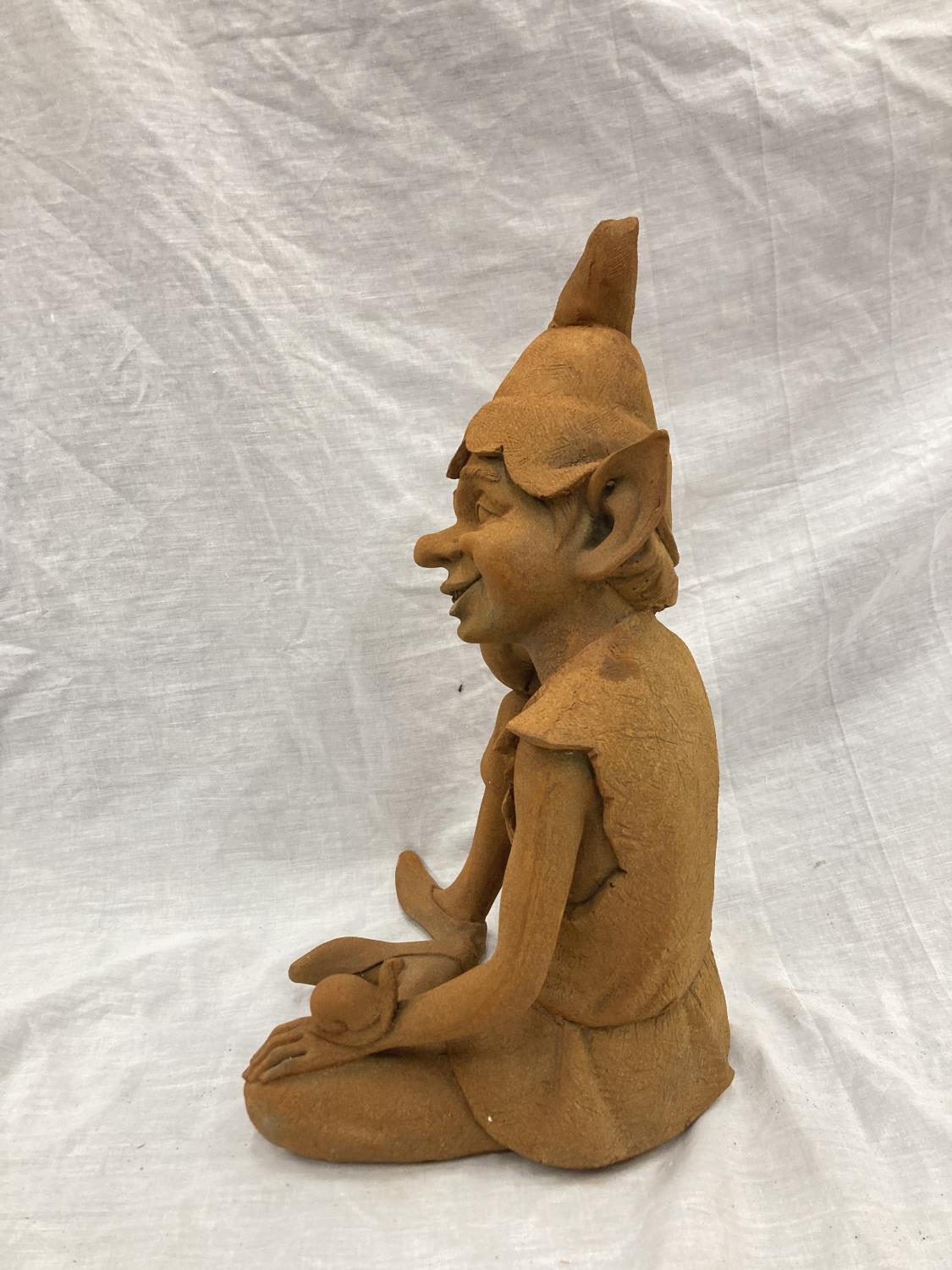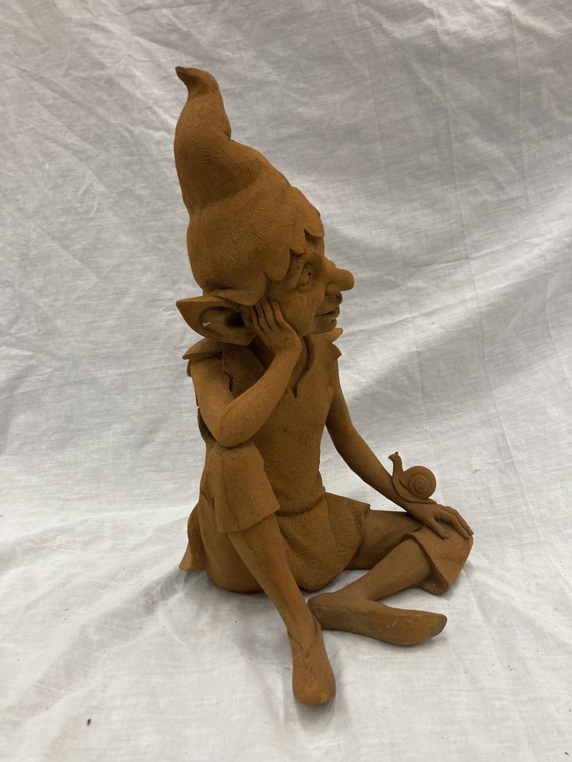 A CAST RUSTY GARDEN PIXIE - HEIGHT 37CM