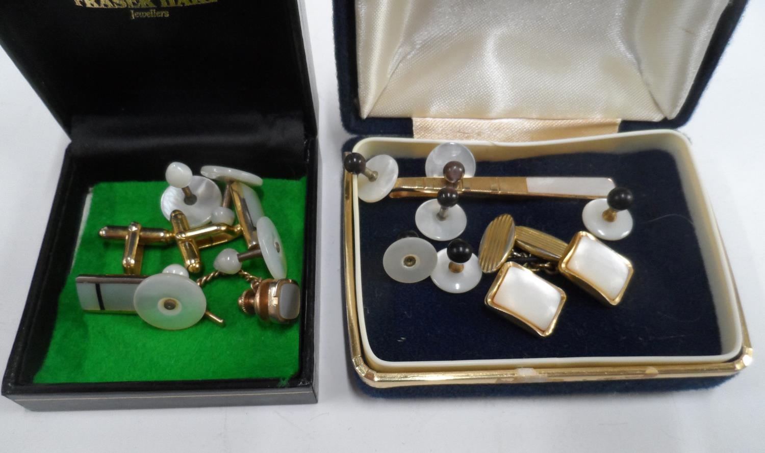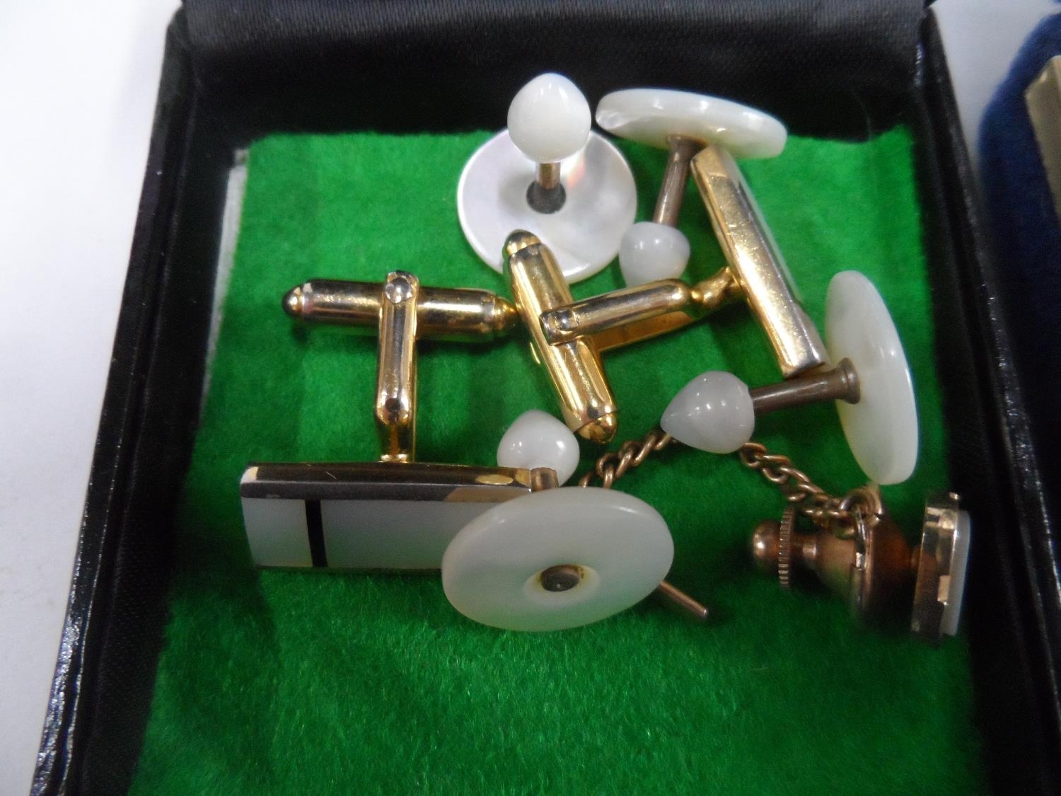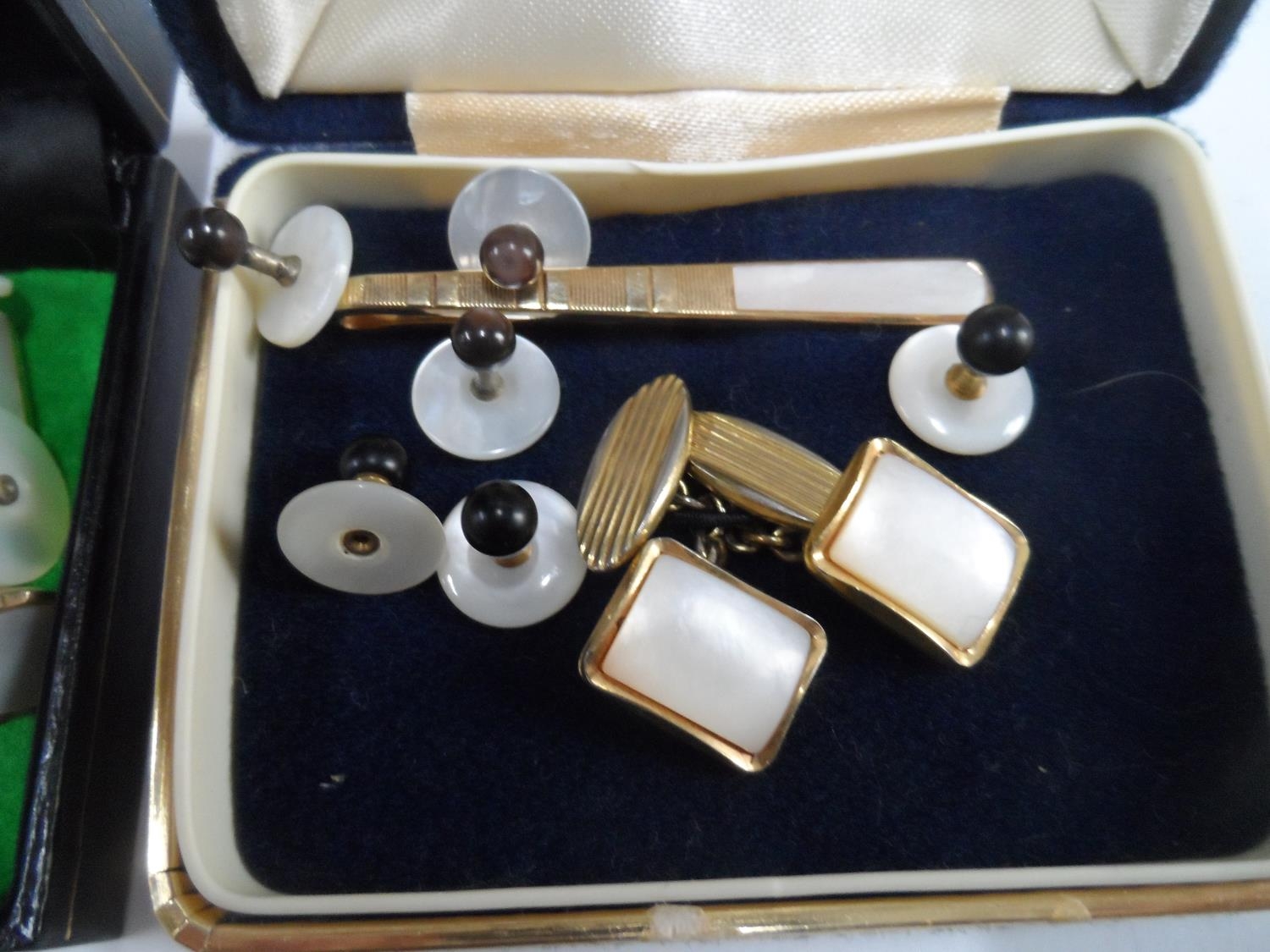 Two small boxes full of vintage cuff-links including mother of pearl examples (Qty)