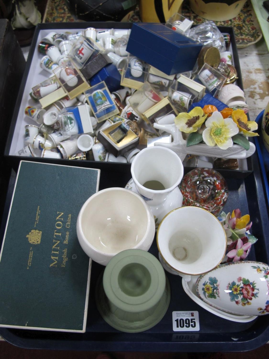 A Collection of Thimbles, Aynsley vase, Minton Haddon Hall c...