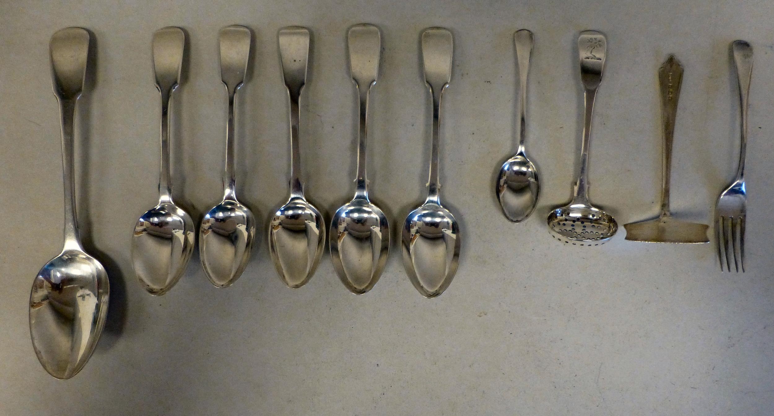 Silver: to include spoons Georgian and later mixed marks (approx. total weight 210 grams)