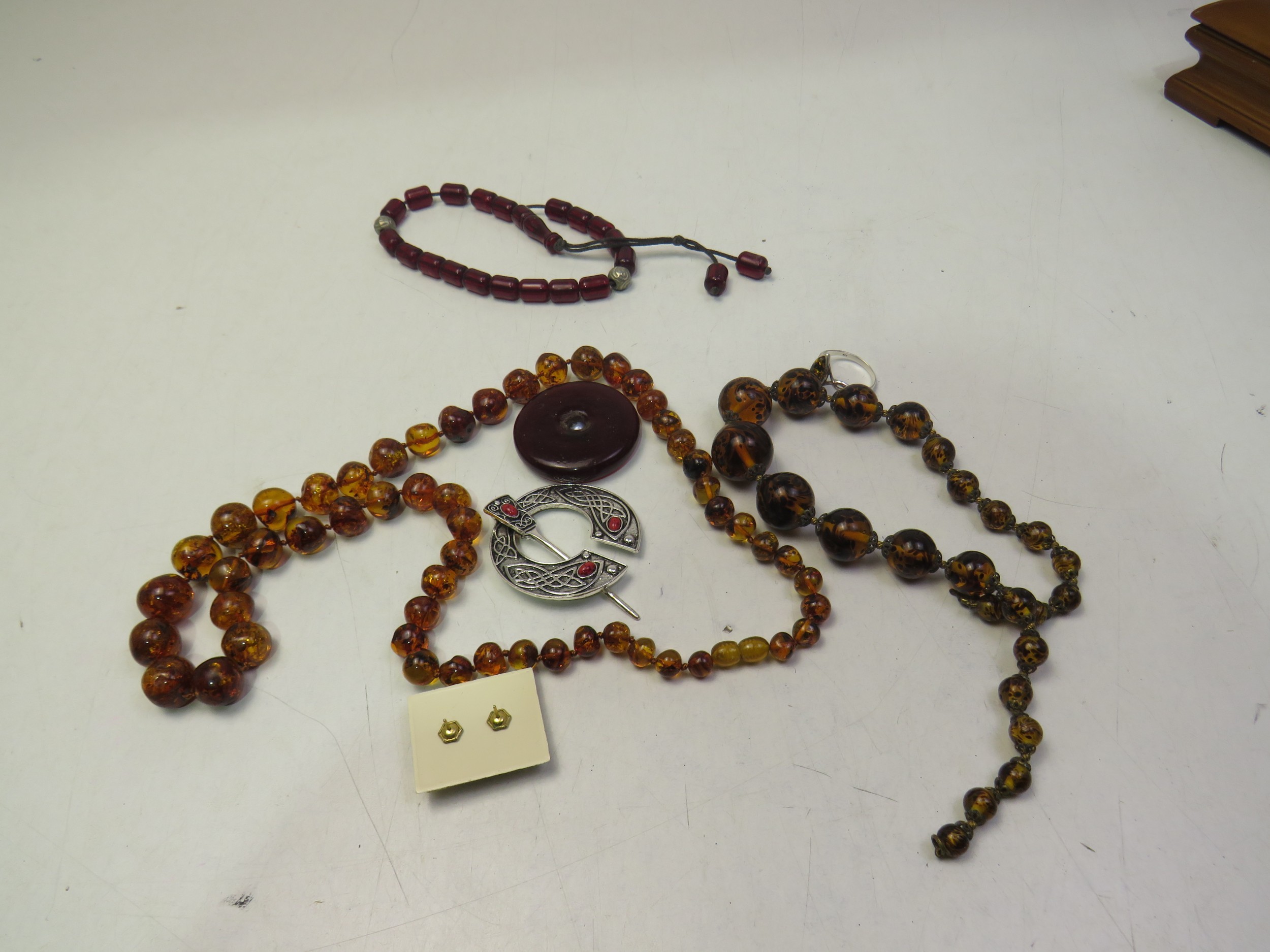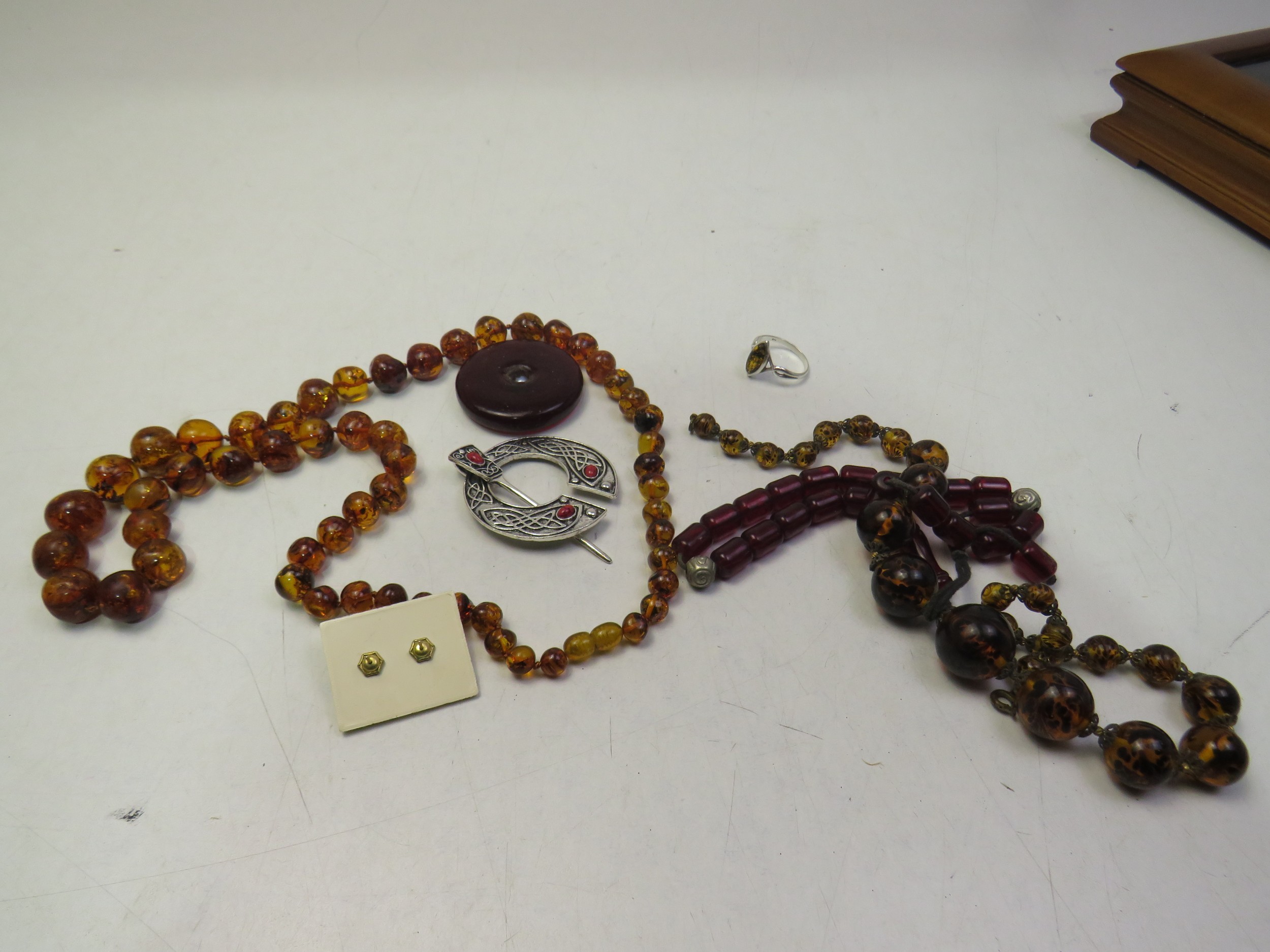Jewellery box with jewellery including amber 925 Silver ring with Green amber.