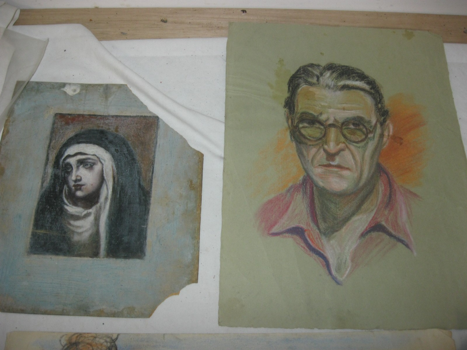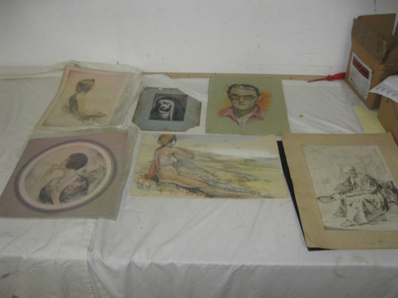 Mixed lot of Sketches, Pastel Portraits and Prints