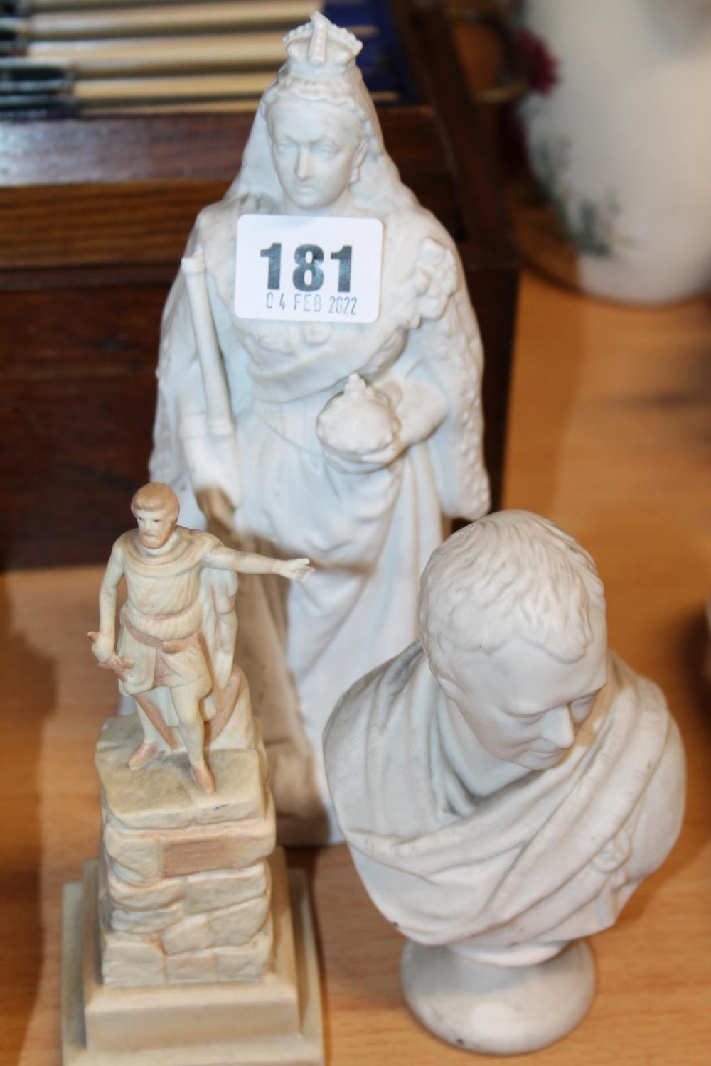 Ceramic figure of the Wallace Statue in Aberdeen, a bust of Walter Scott, and another. (3)