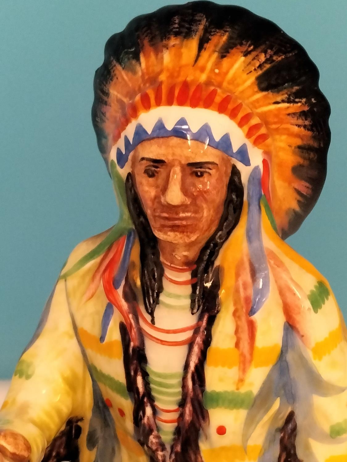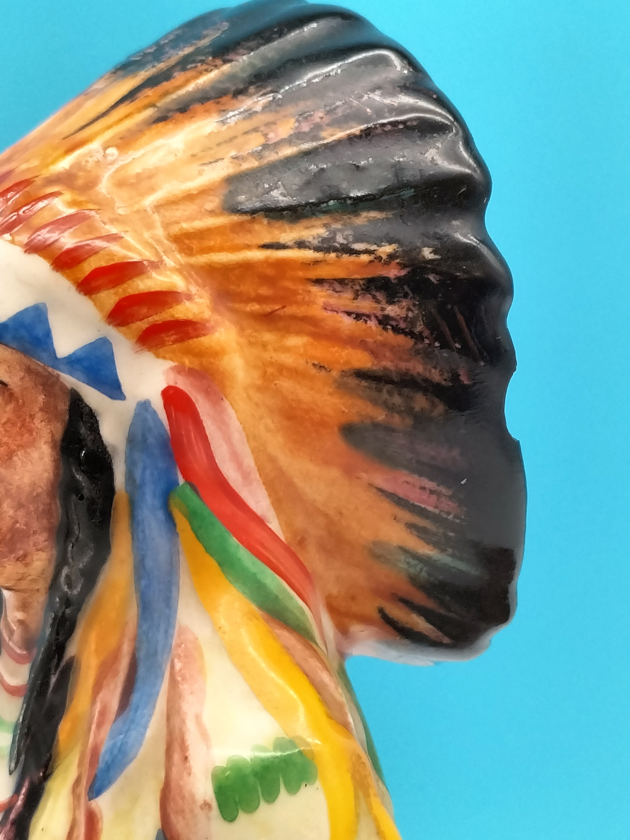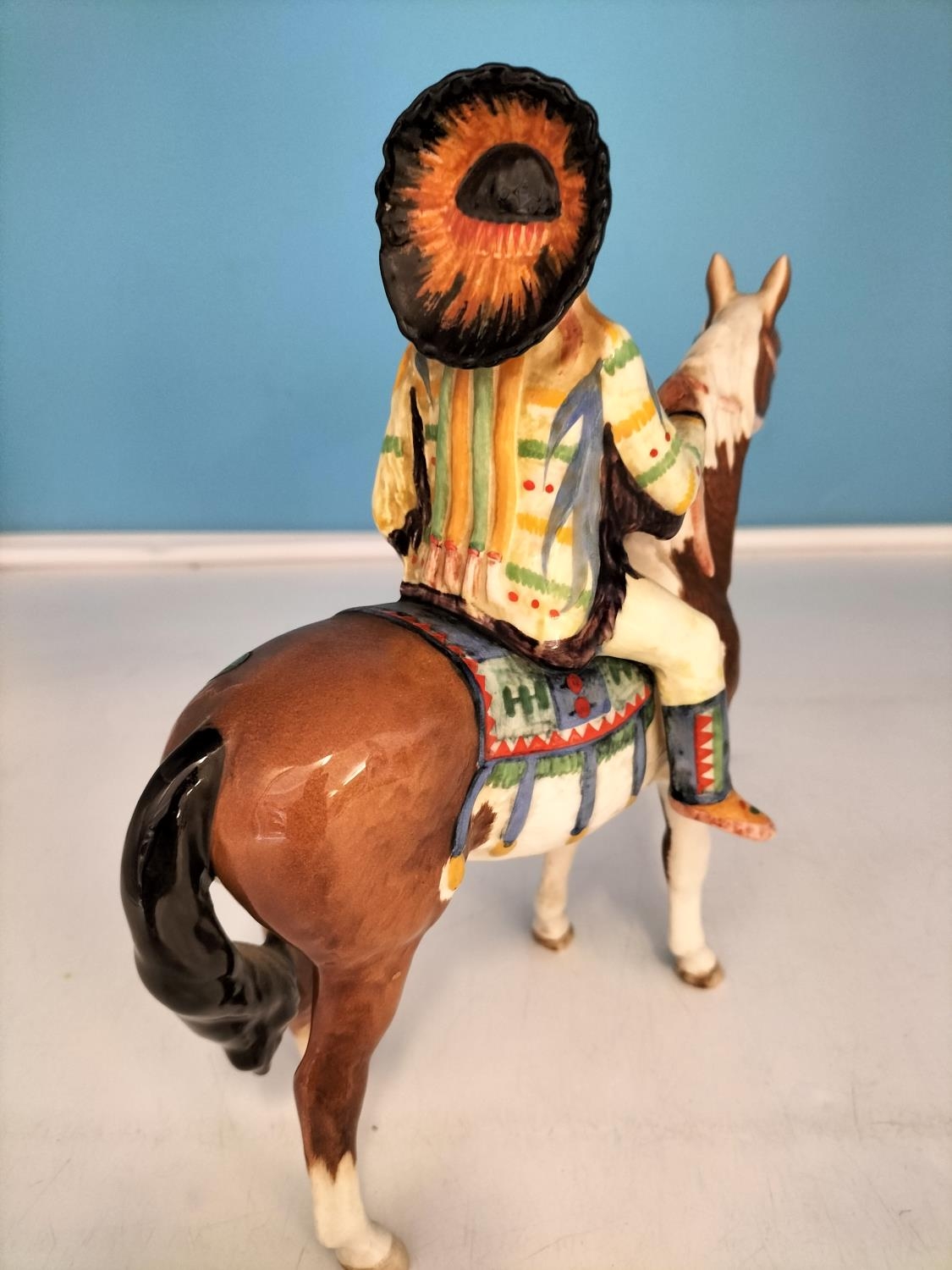 Beswick Figure of a Mounted Indian on Skewbald Horse 1391. 22cm High, 21cm Long. A/F to Back of Headdress (not visible from front).
