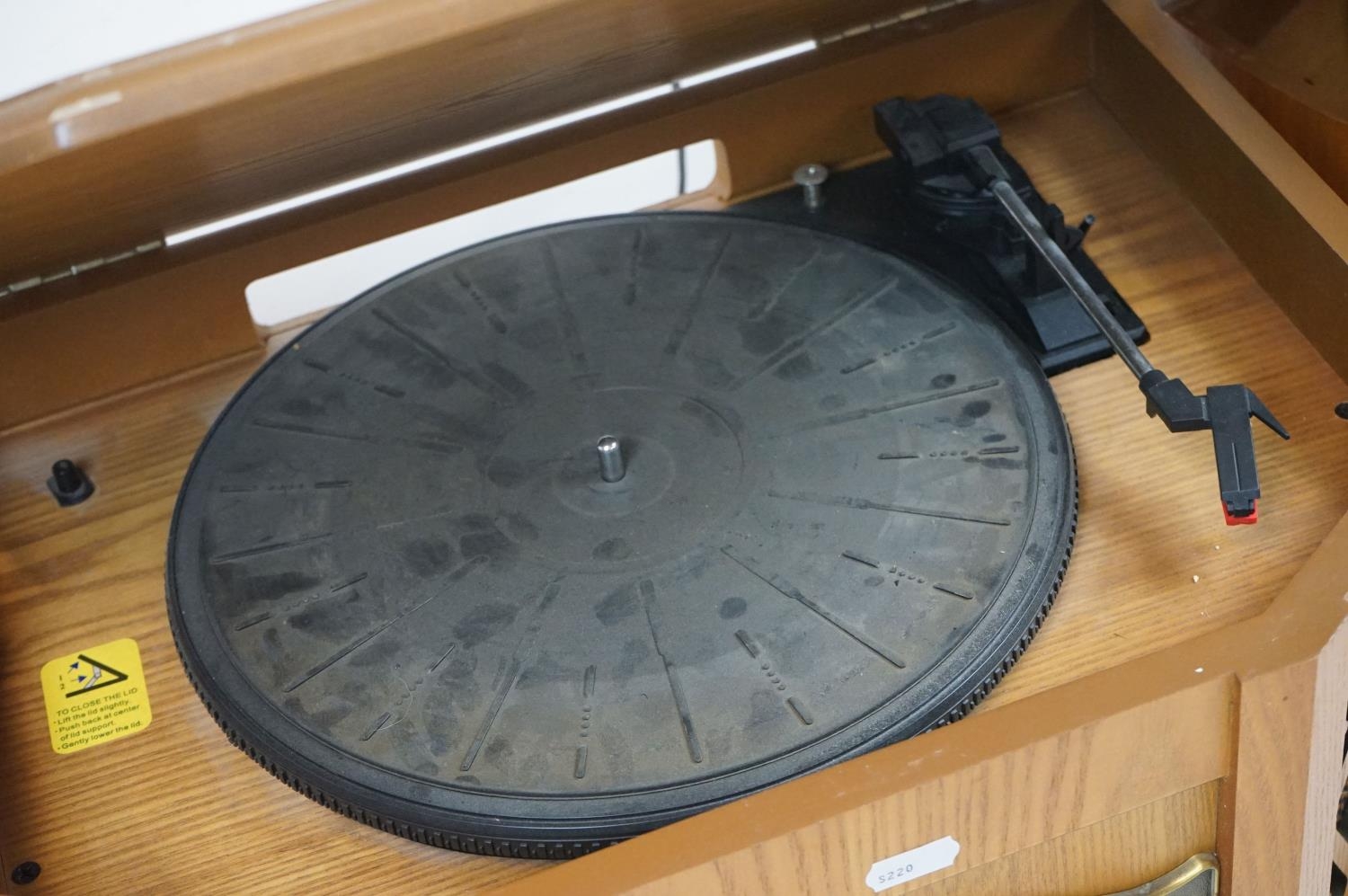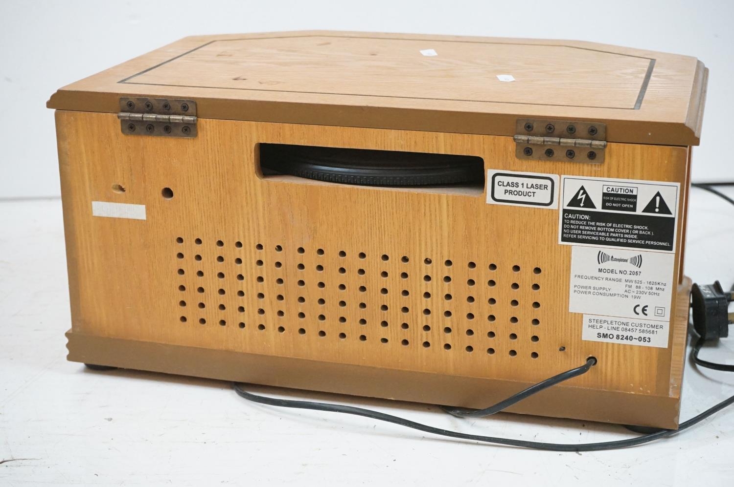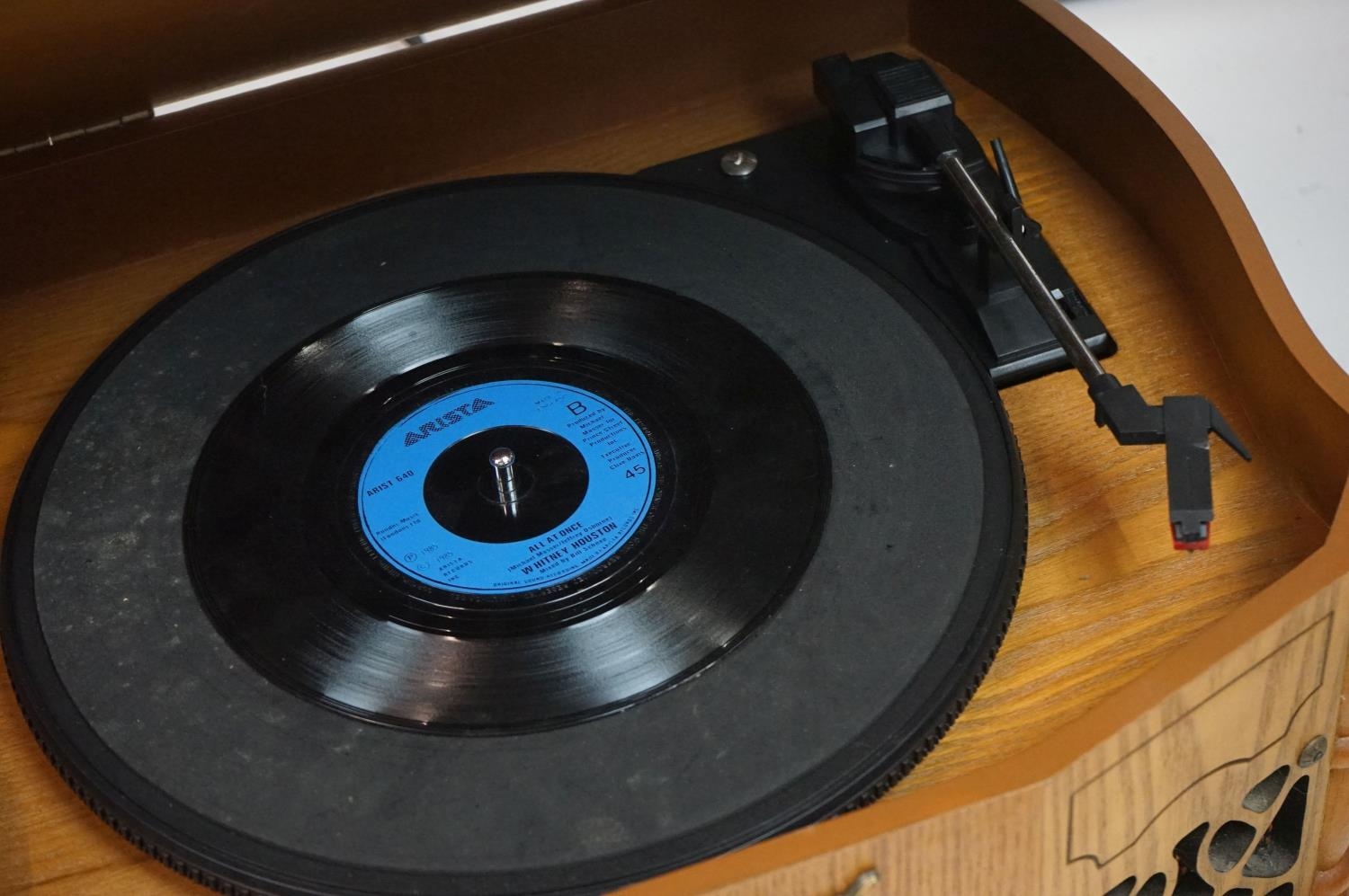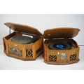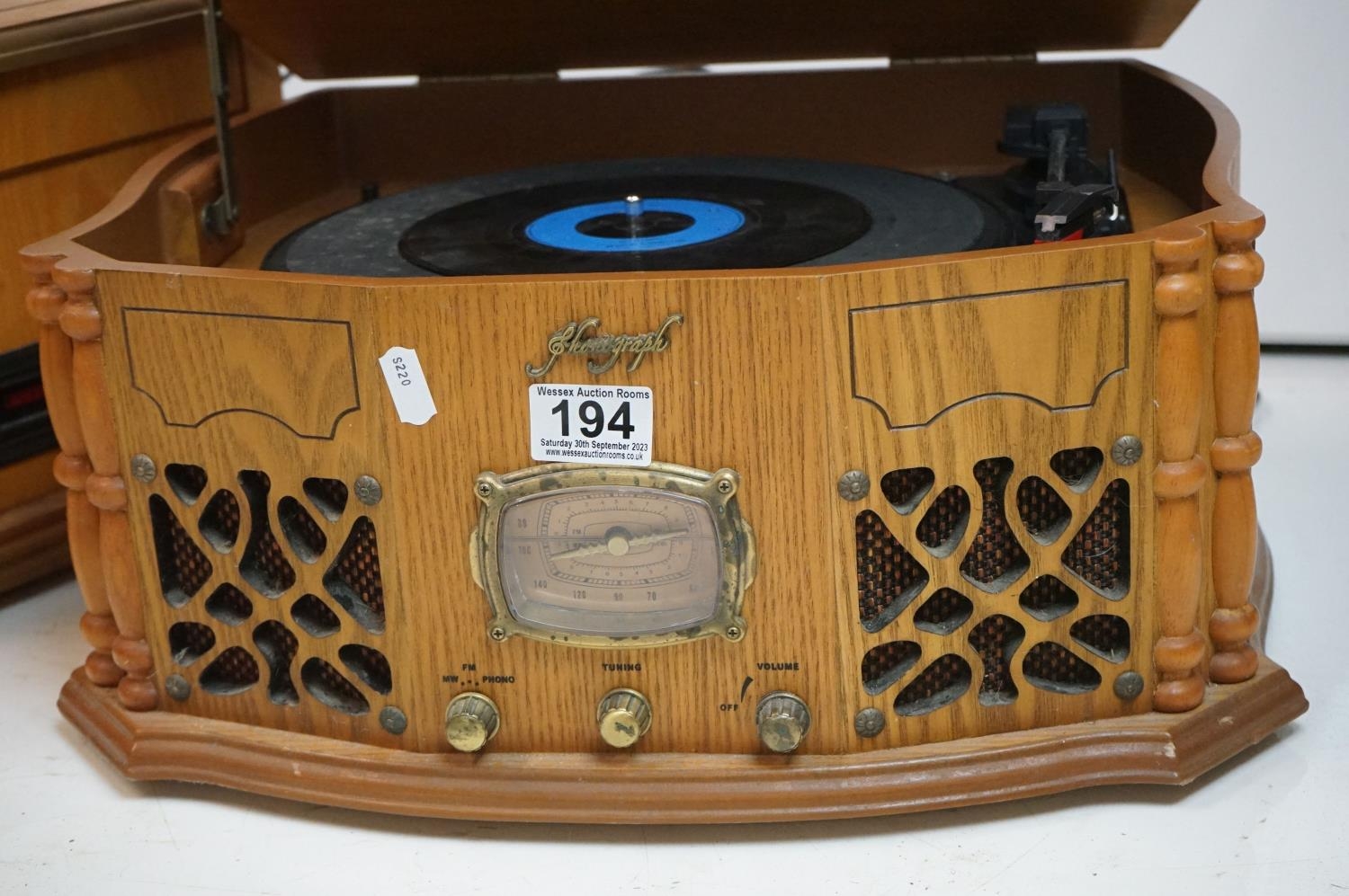 Two vintage style music centres to include record player, CD player, radio and Aux line.