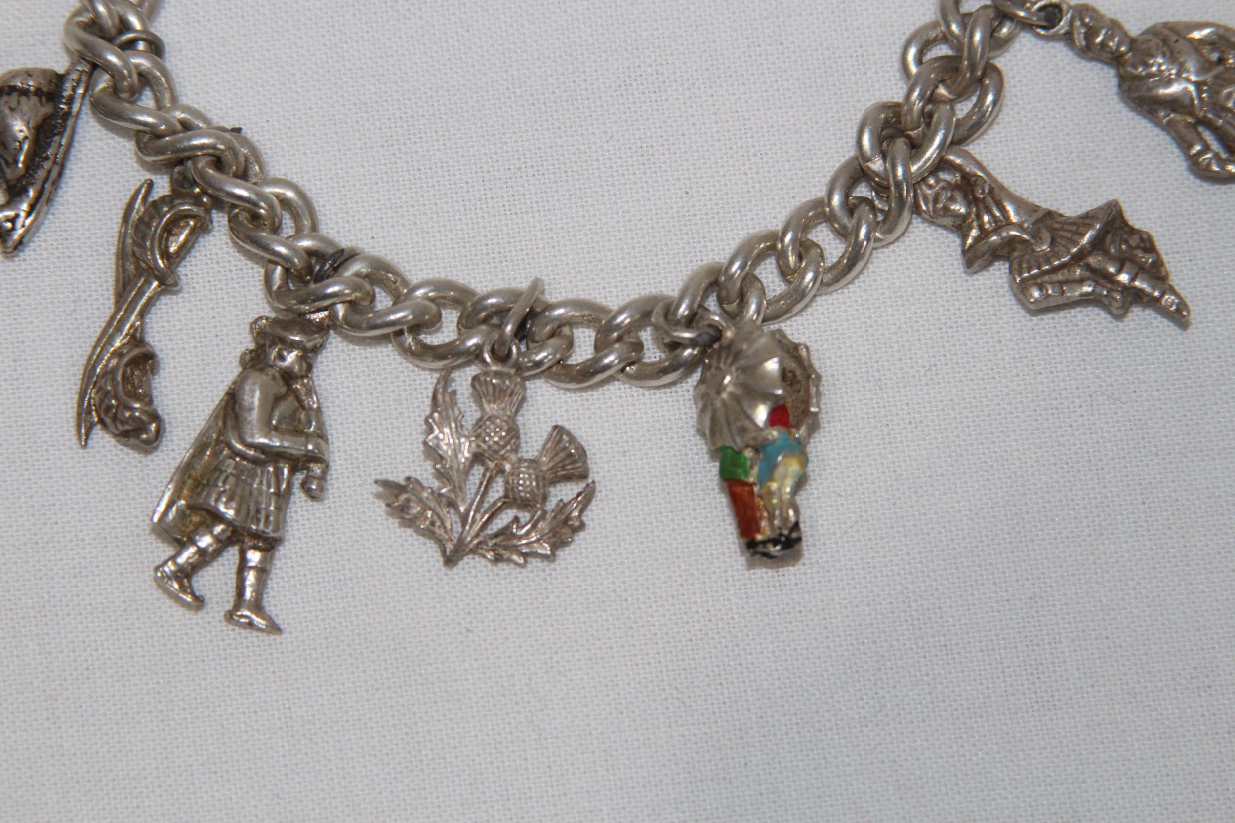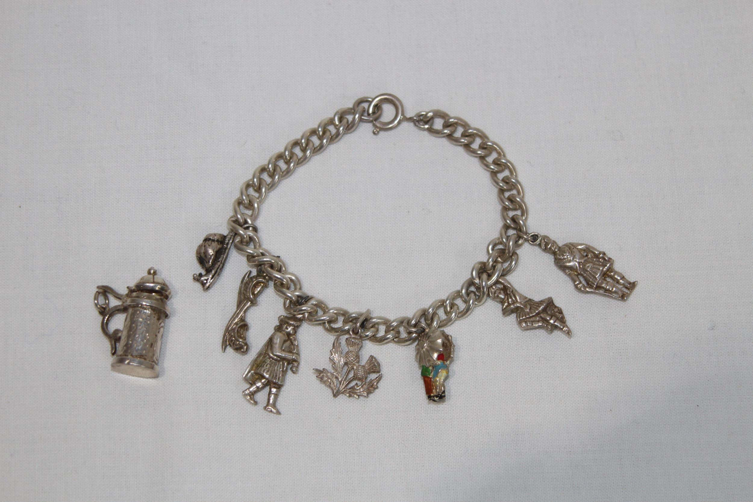 SILVER CHARM BRACELET INCLUDING SPARE CHARMS - 43G