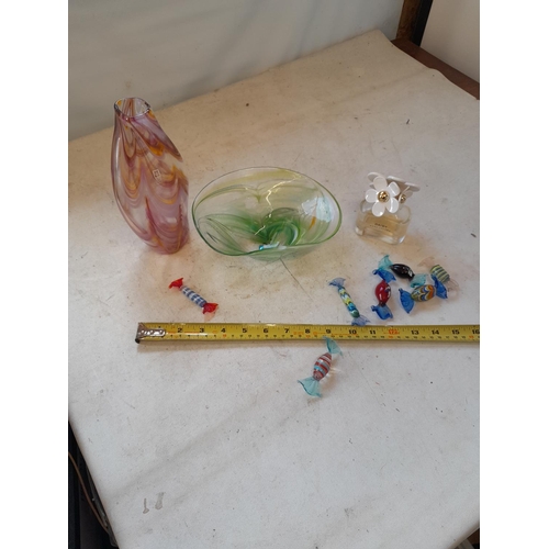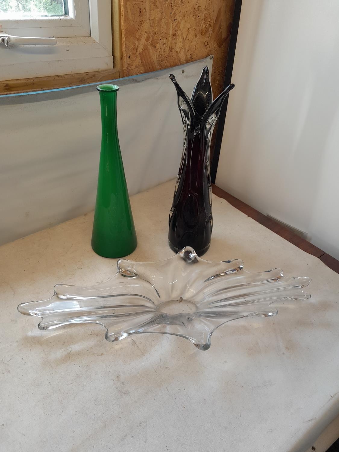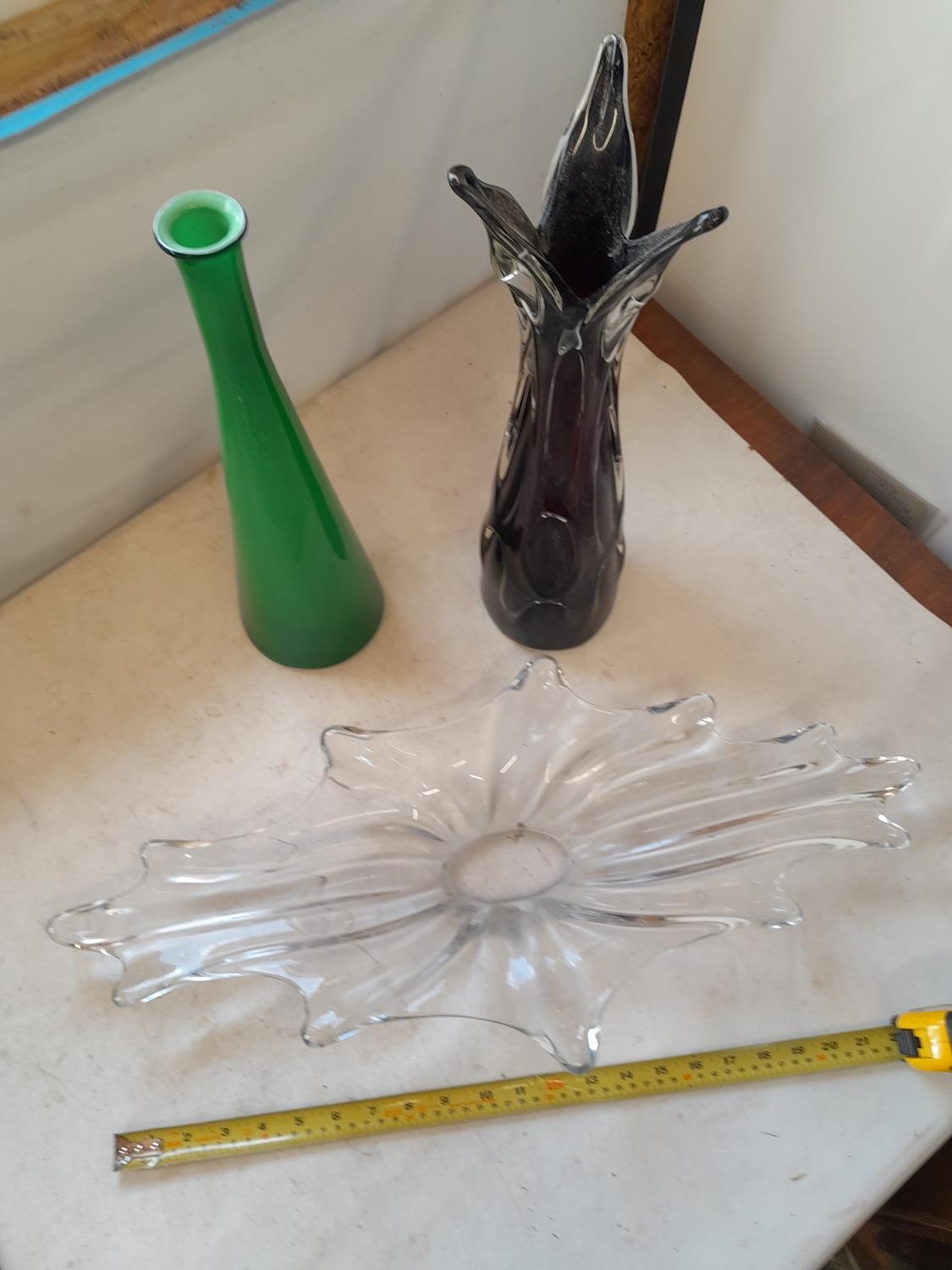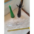 3 larger size pieces of mid 20th century Art glass, not crack to base of amethyst vase