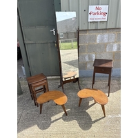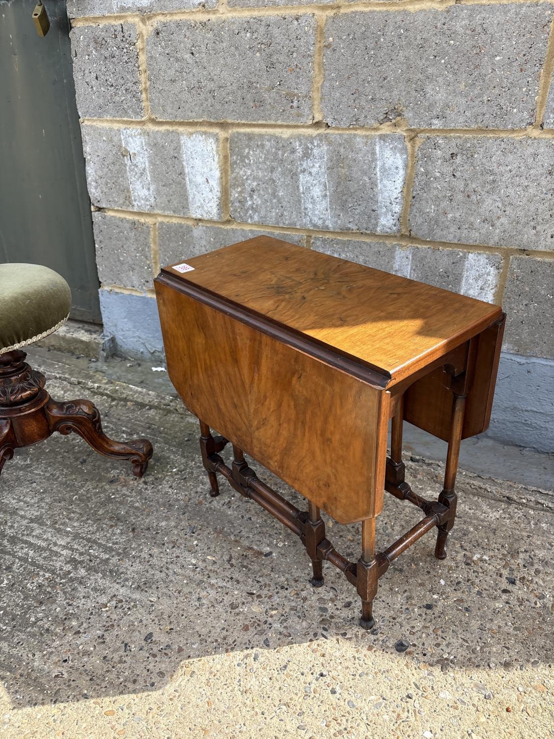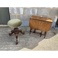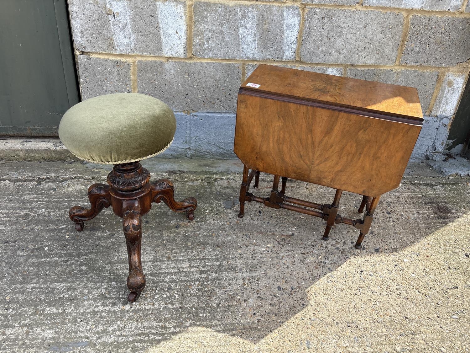 A Victorian walnut piano stool together with a small walnut drop leaf table