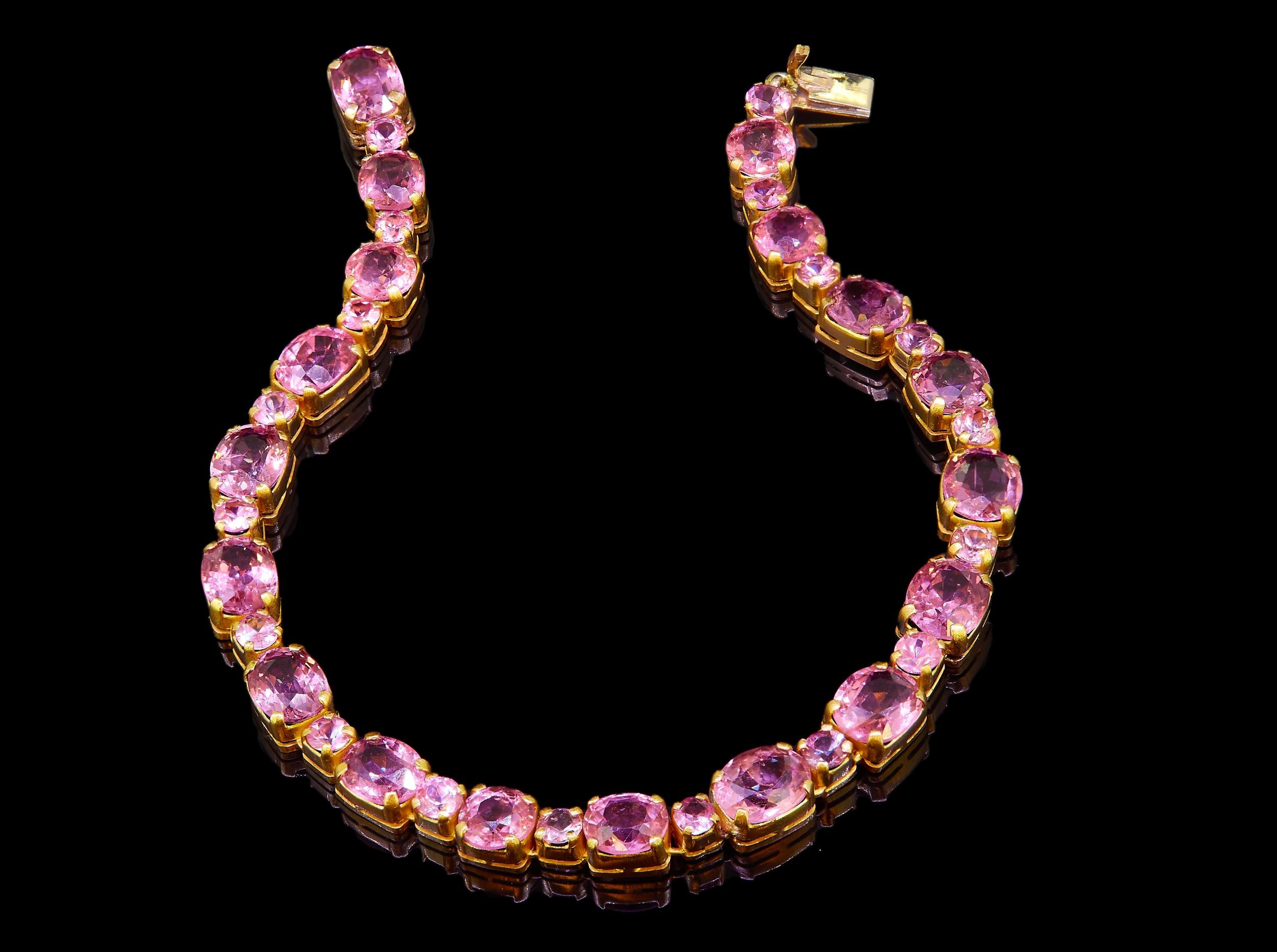 SPINEL AND PINK SAPPHIRE LINE BRACELET, the larger spinel stones alternated with smaller pink sapphires. L. 18.5 cm. 10.3 grams.