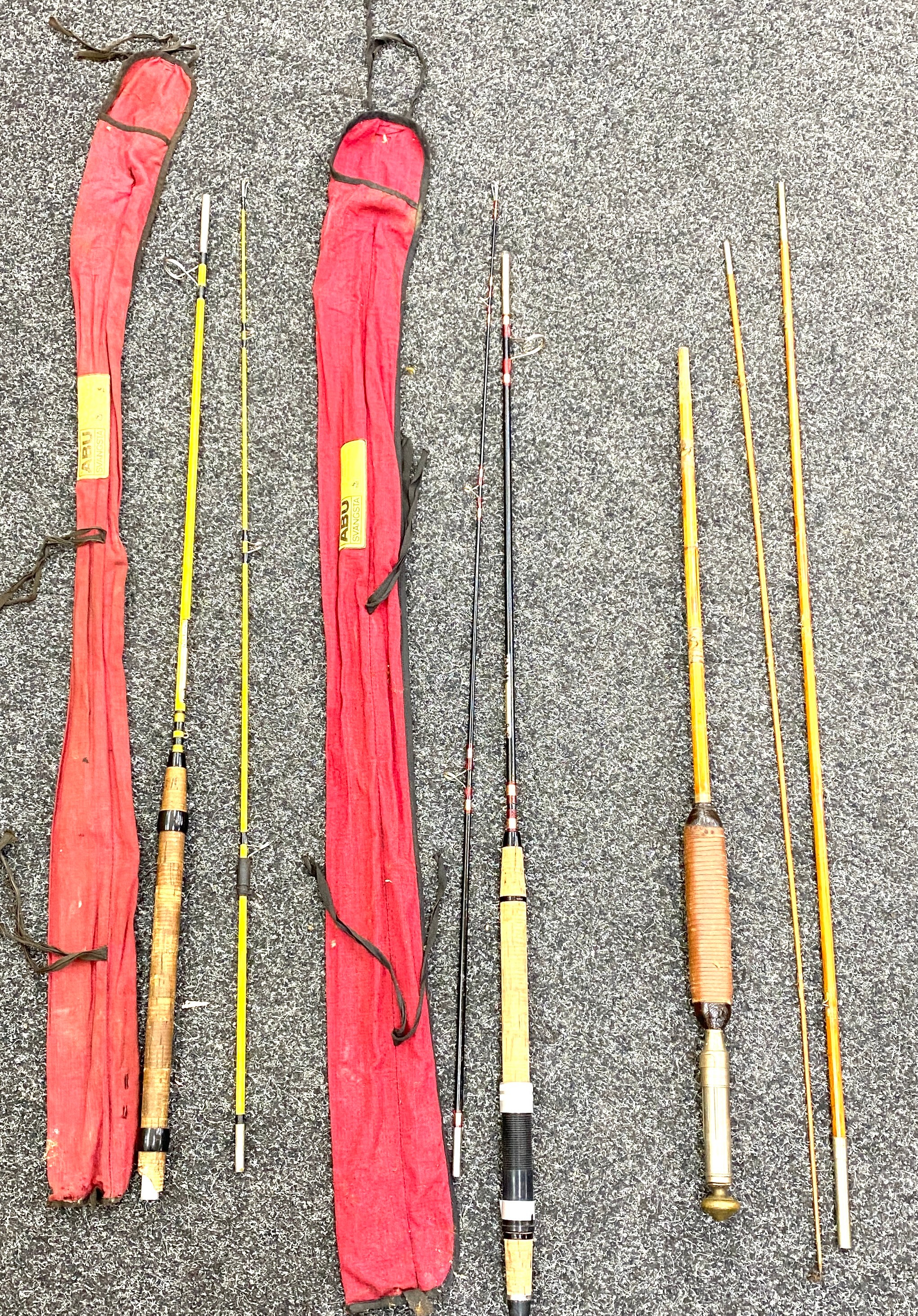 Vintage 3 piece fishing rod, 2 x 2 piece Abu Svangsta fishing rods