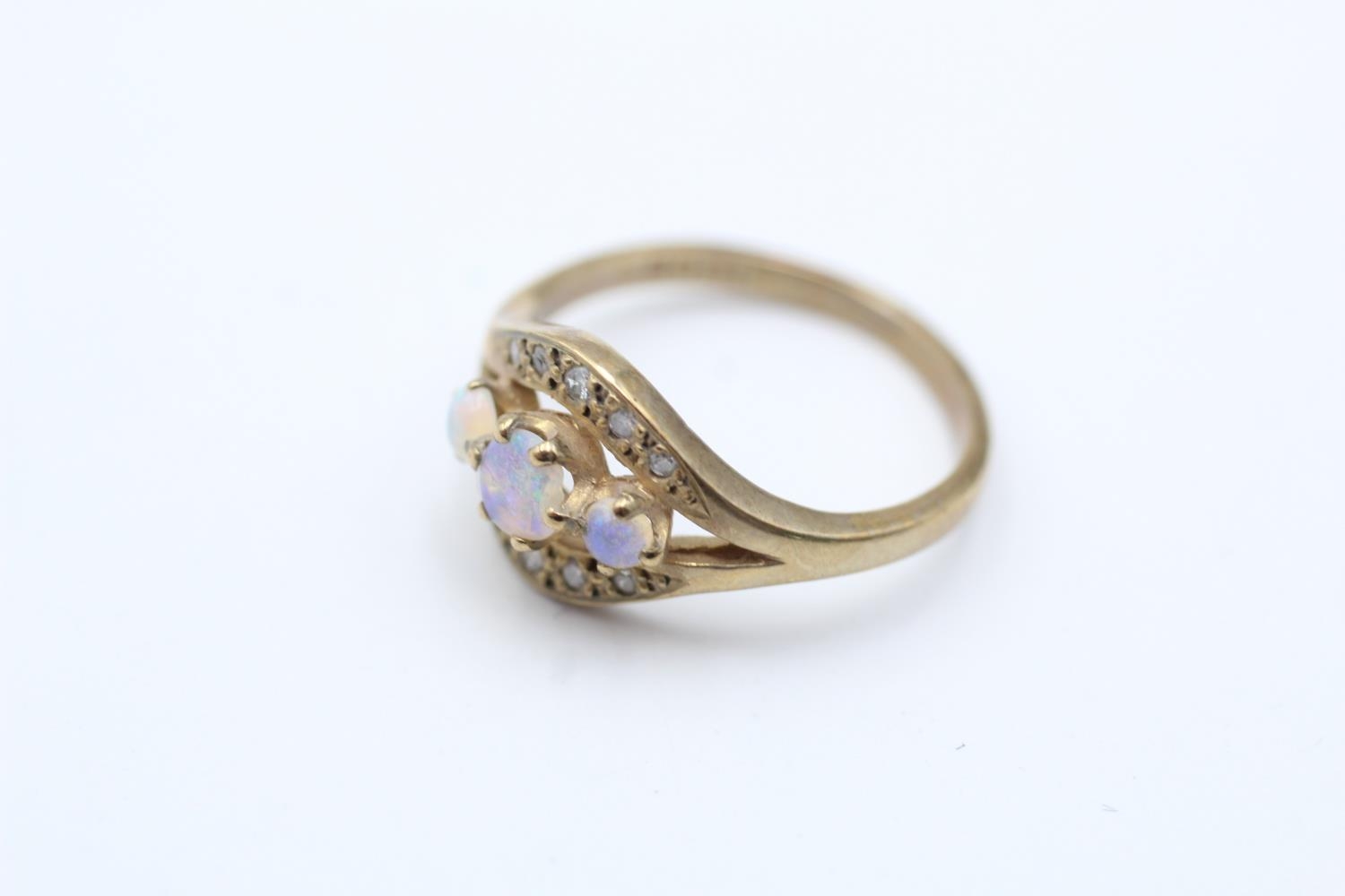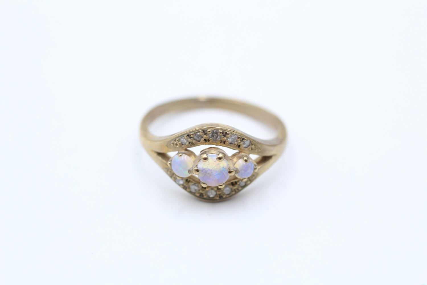9ct gold vintage opal and diamond halo ring (2.3g) Size K