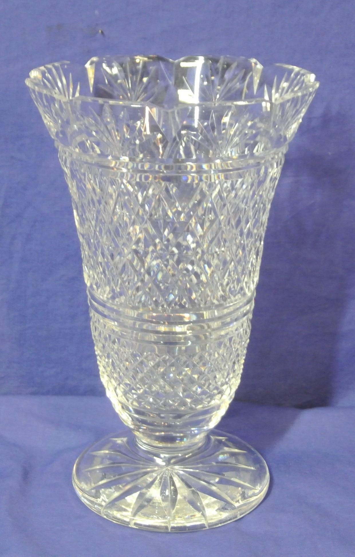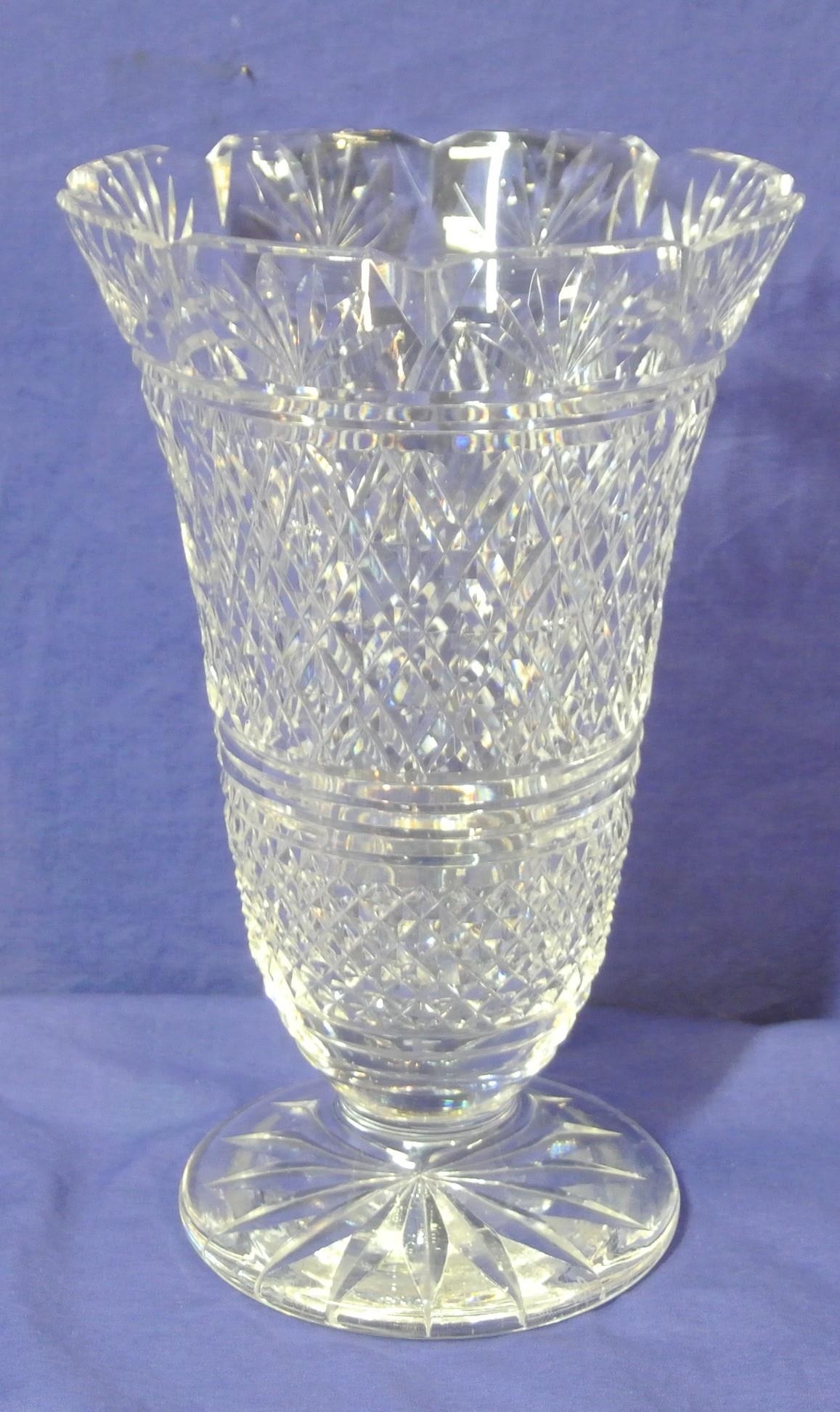 Tall flared Waterford Crystal cut glass flower vase with sca...
