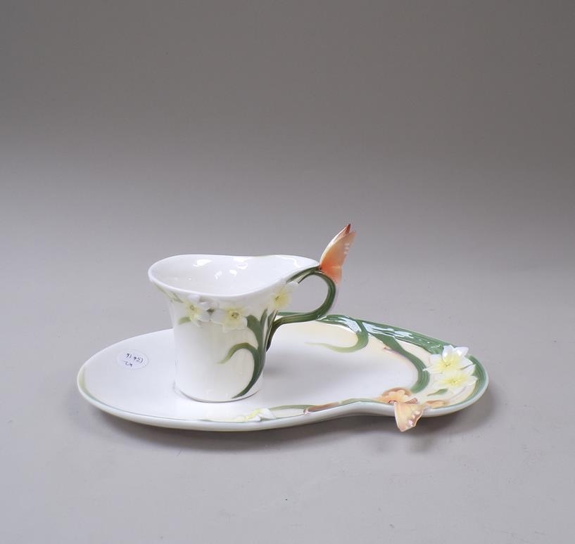 GRAFF PORCELAIN BUTTERFLY CUP, 11CM H AND SAUCER - a/f