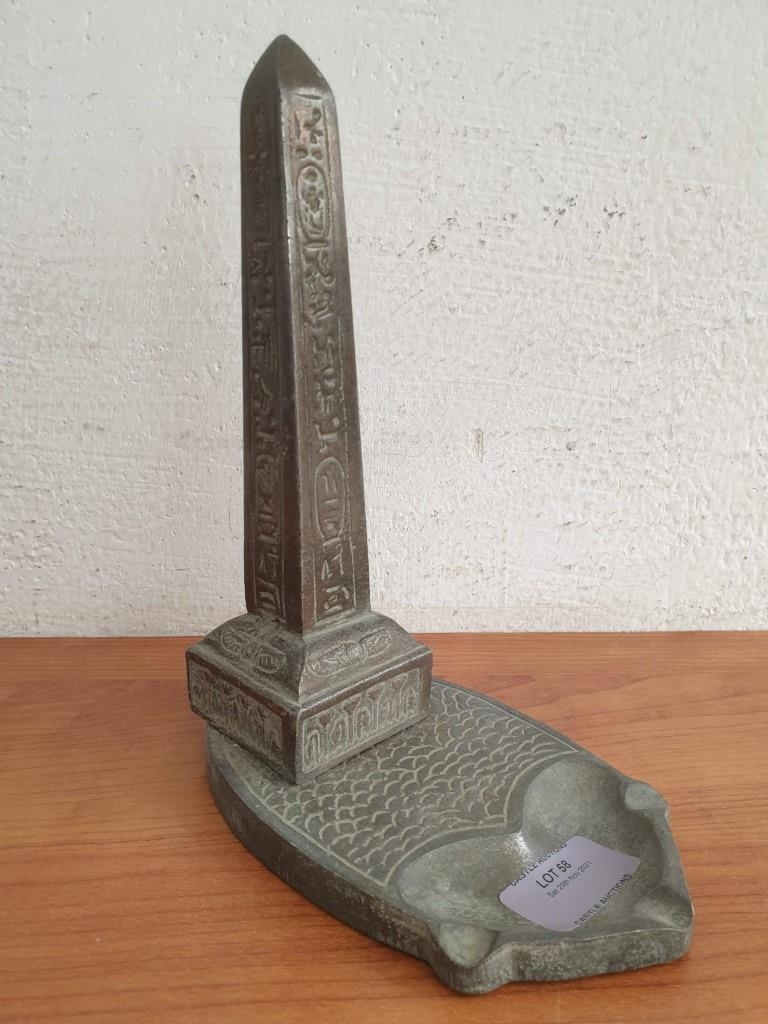 Cast Metal Ashtray with Tower, Similar to 'Luxor Obelisk', (22cm H)