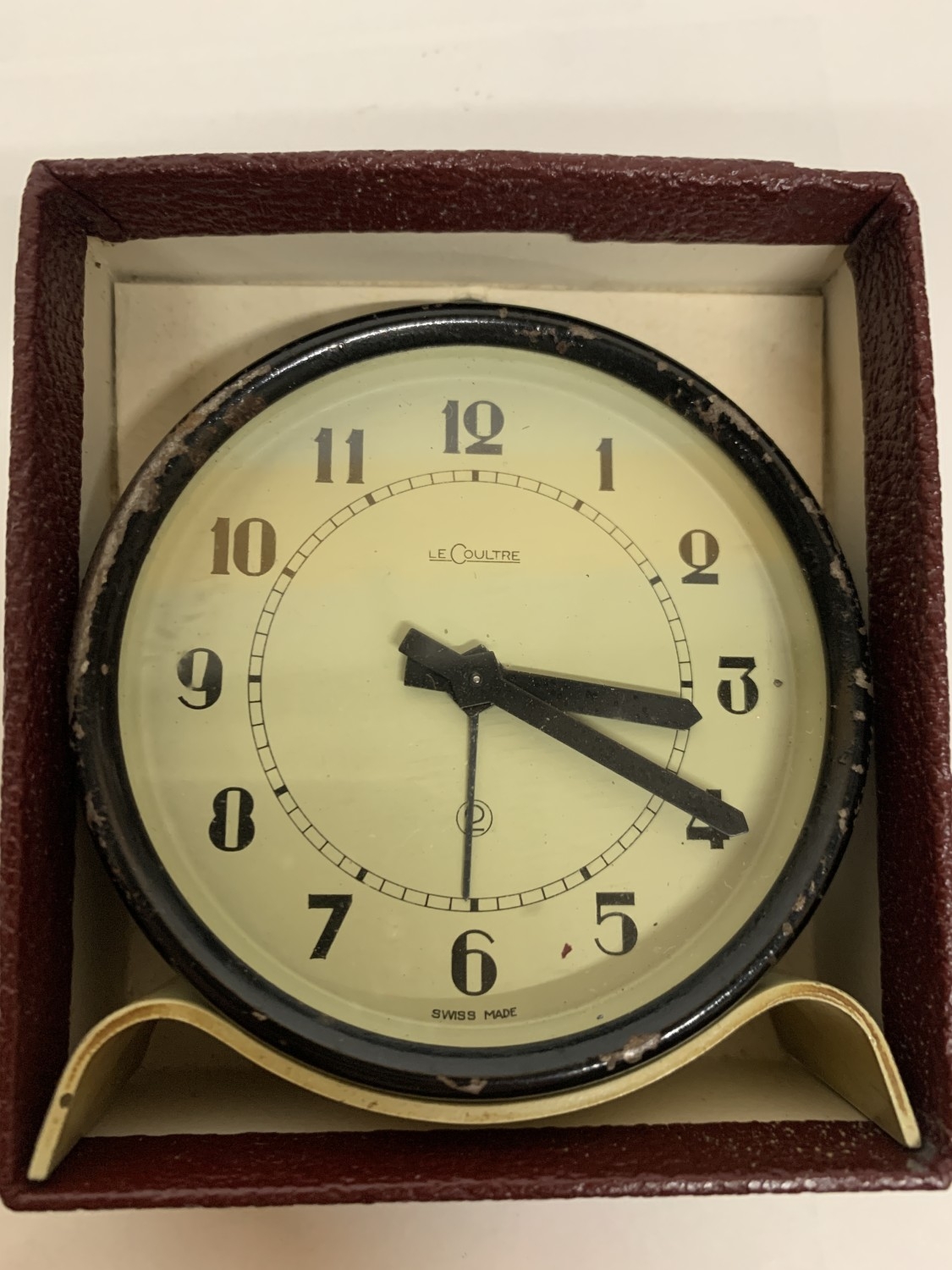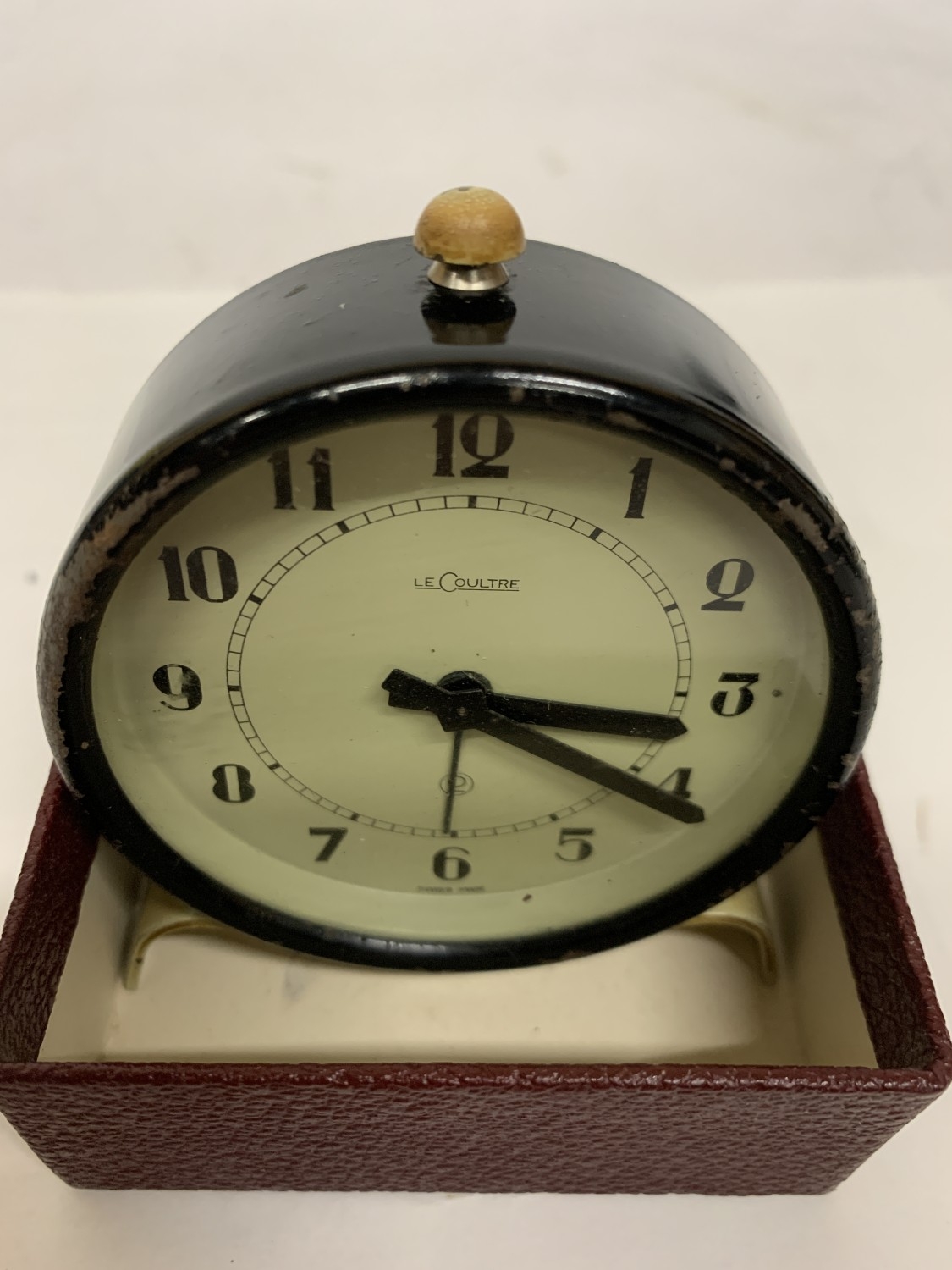 A 1030'S LE COULTRE ALARM CLOCK WITH ORIGINAL BOX
