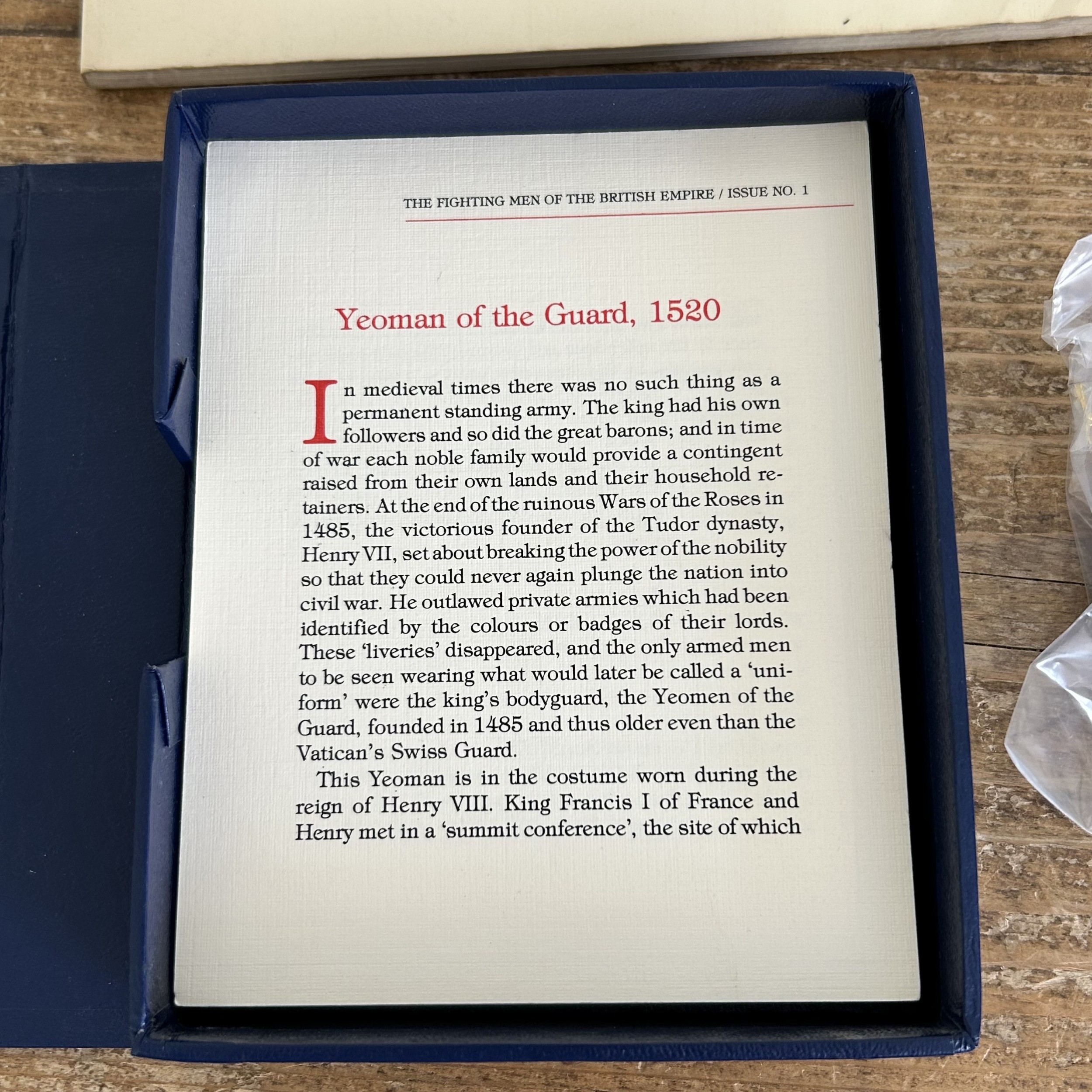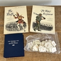 Franklin Mint The Fighting Men of the British Empire cards, Del Prado soldier tags and two Ospreys Men at Arms Series books, 'The Buffs' and 'The Kings Regiment'