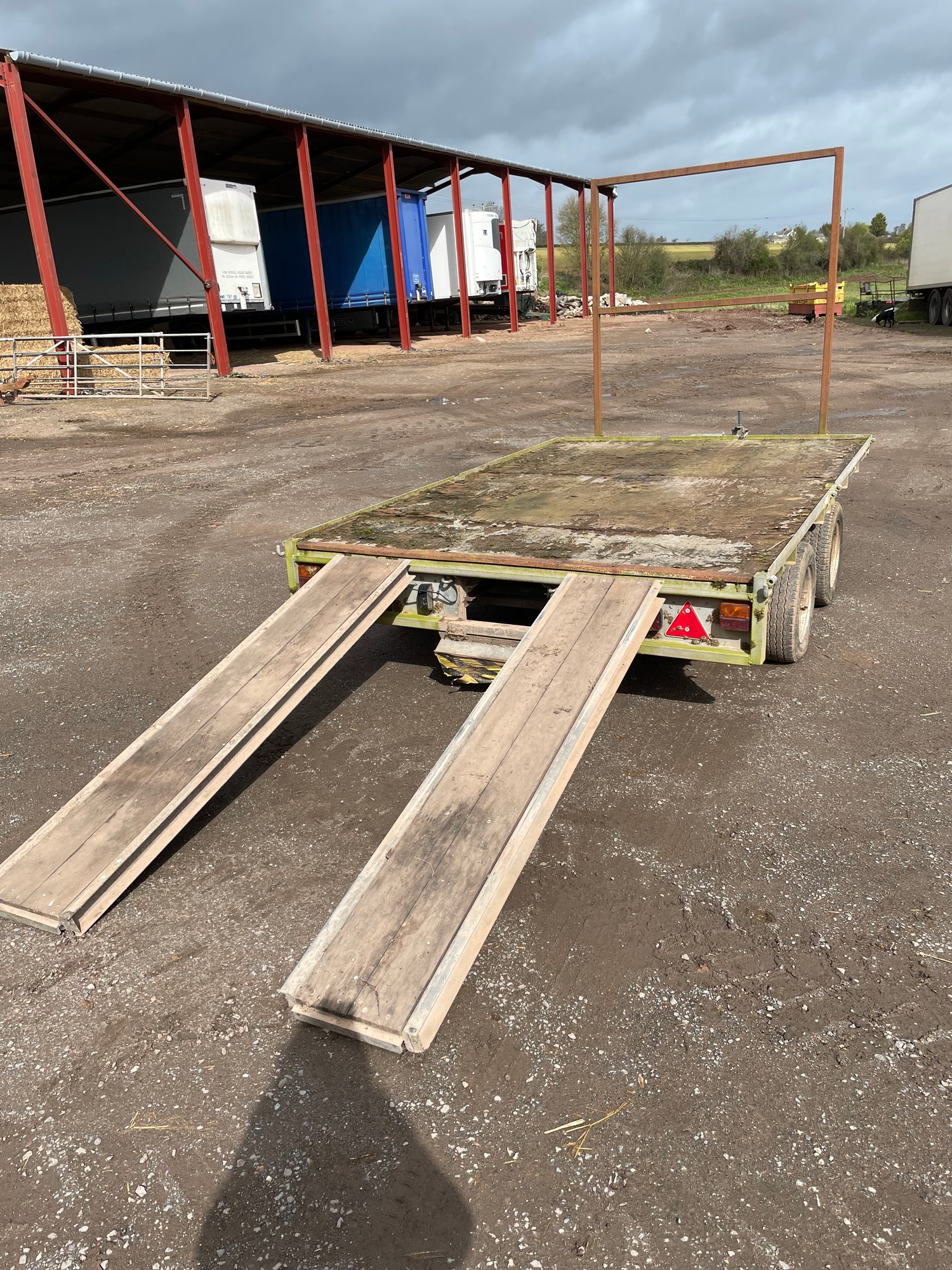 IFOR WILLIAMS 10' FLAT BED TRAILER, WITH RAMPS AND HAY BAR