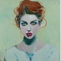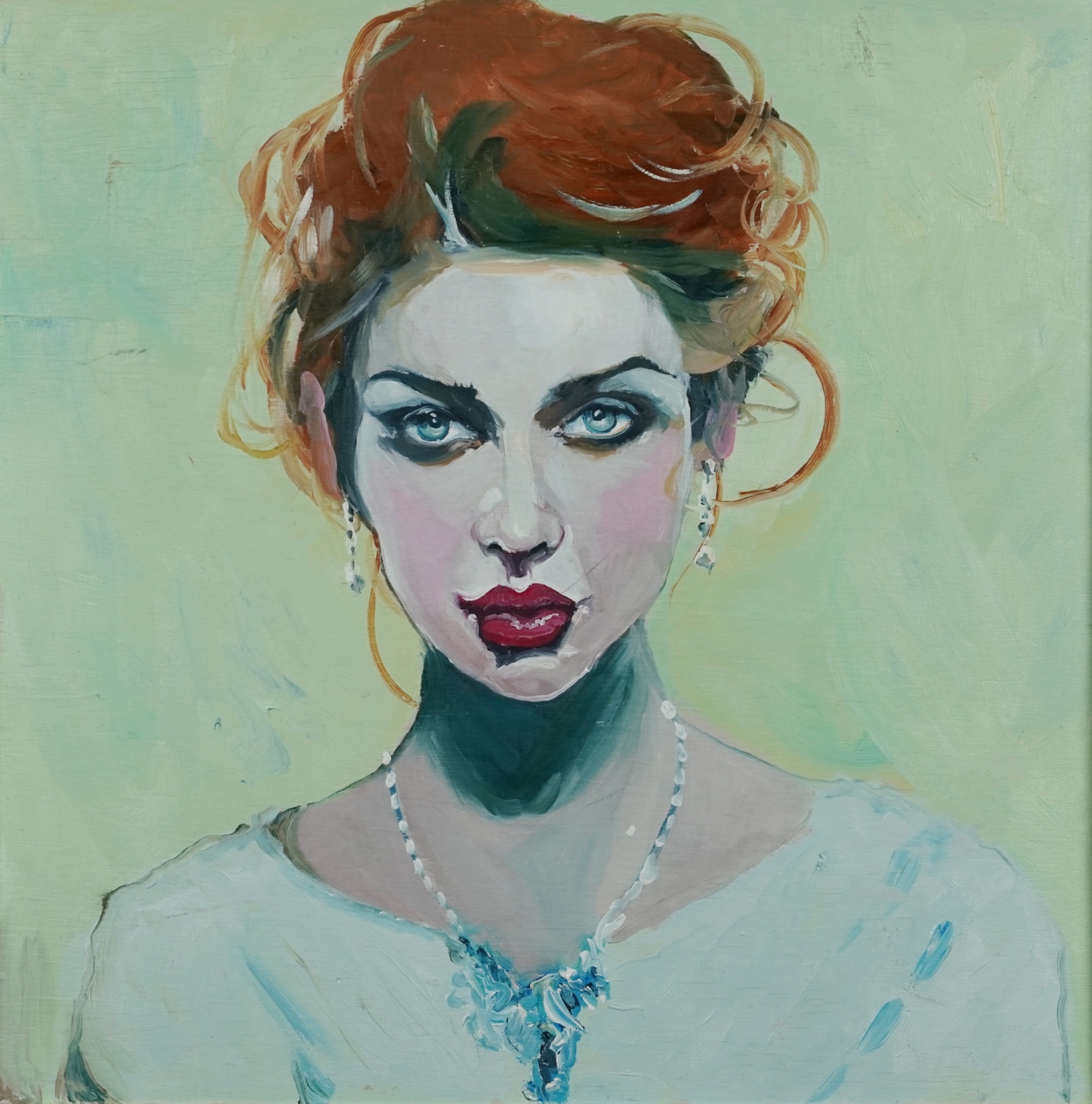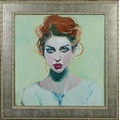 Clive Fredriksson - Head and shoulders portrait of a young lady, Modern British school oil on board within a silvered frame, 45cm x 46cm.