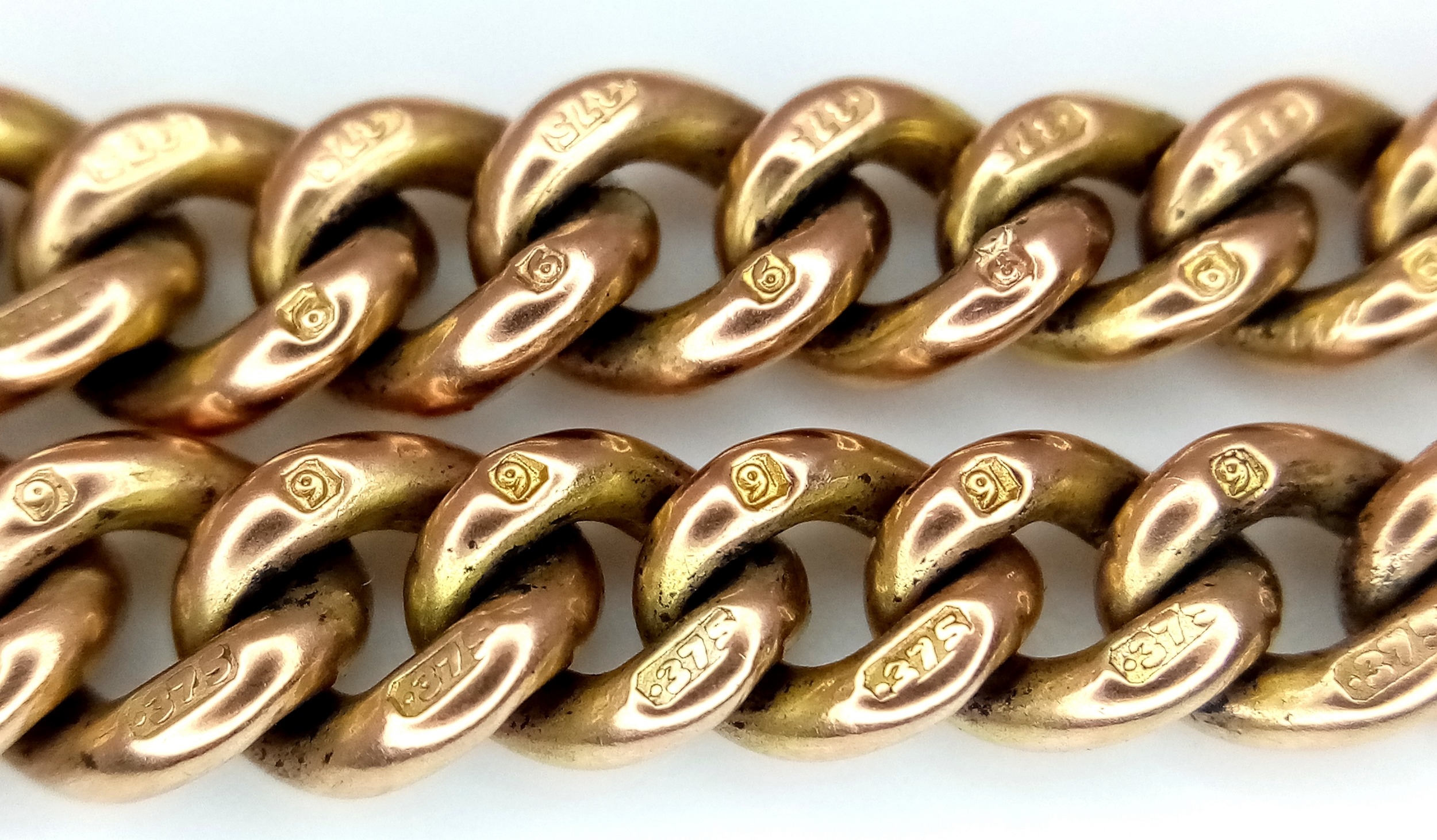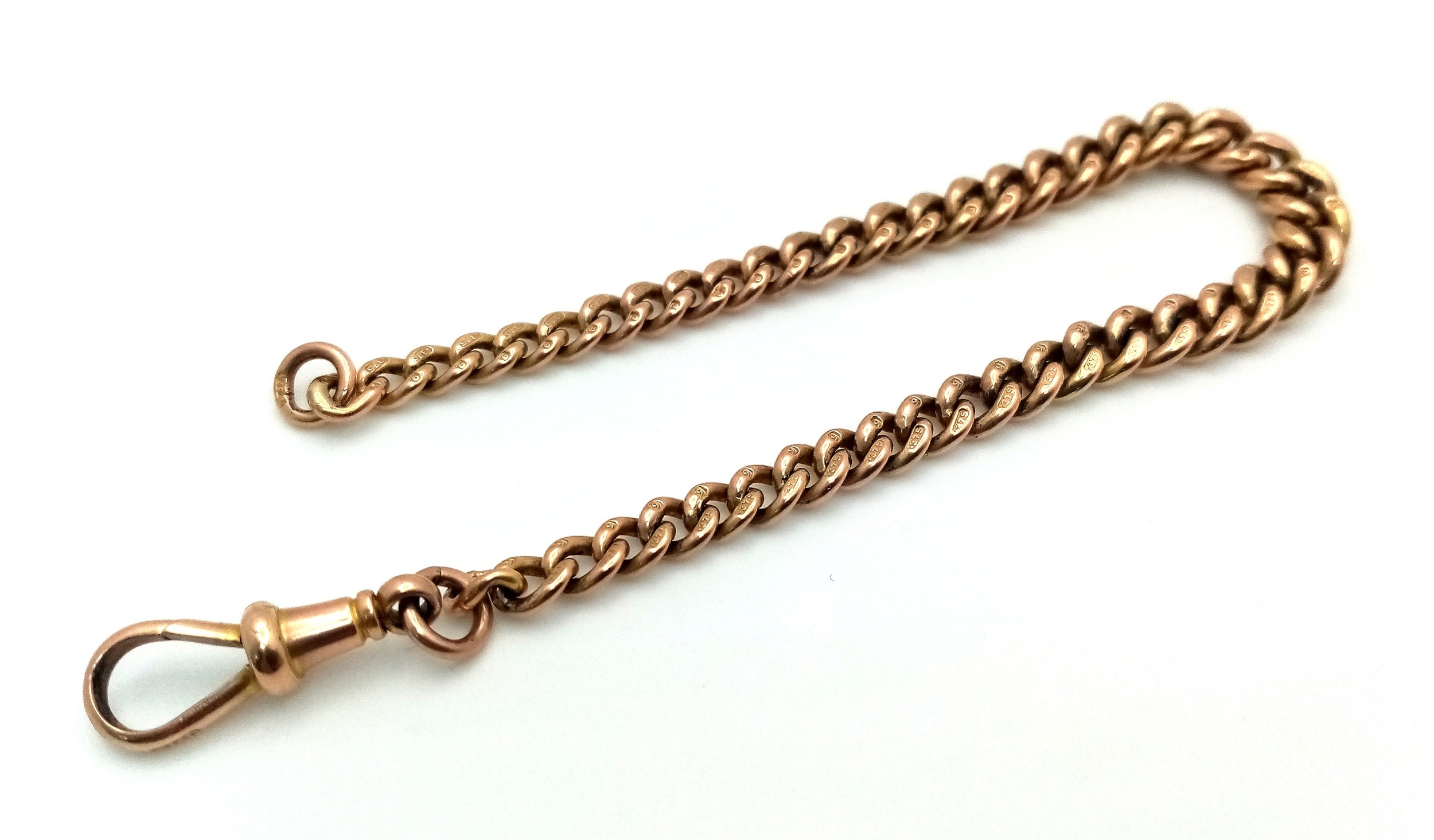 An Antique 9K Gold Fob Chain Bracelet Conversion. Multiple hallmarks. 18cm. 15.25g.