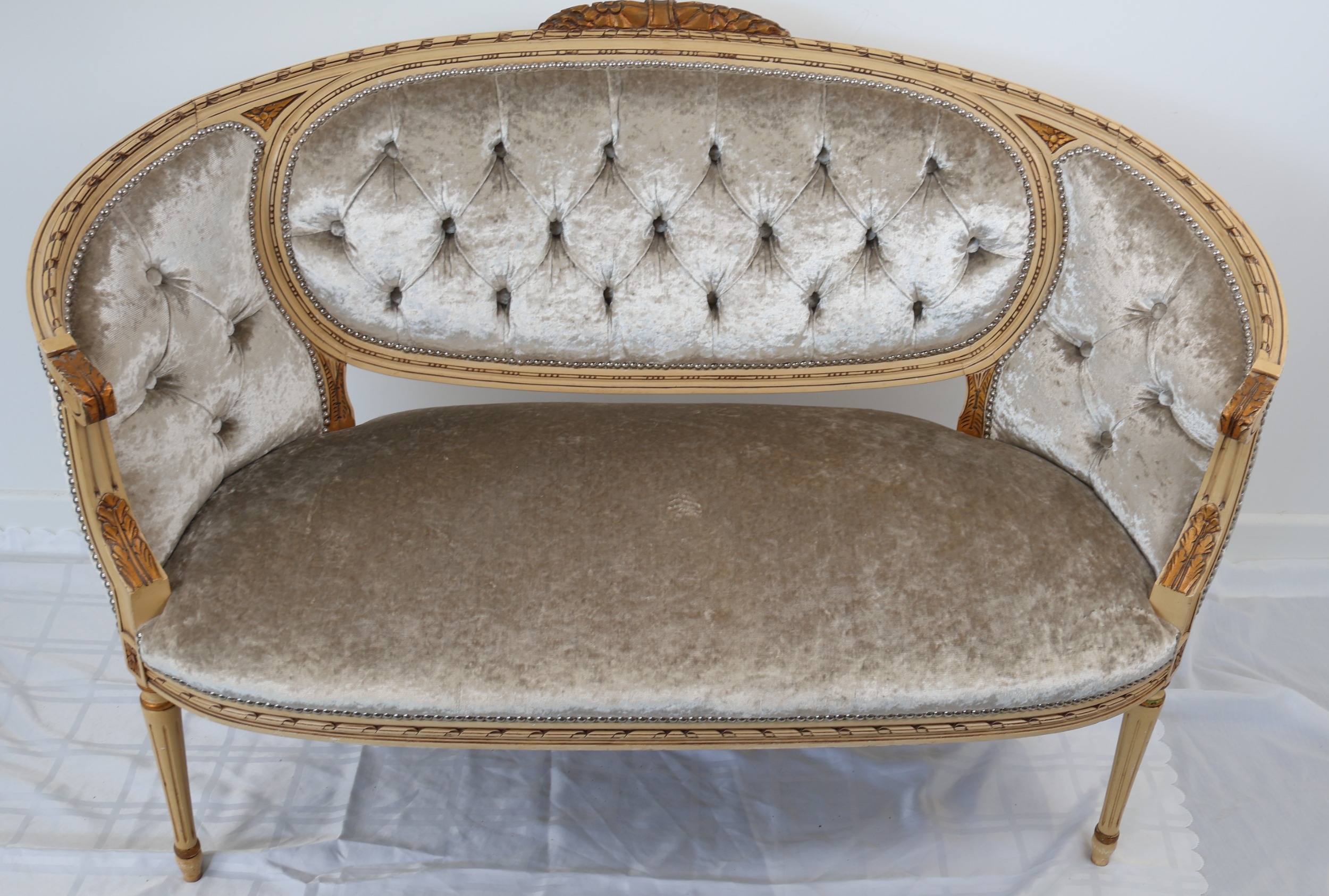 French Louis XVI Style Painted and Giltwood Canapé en Corbeille