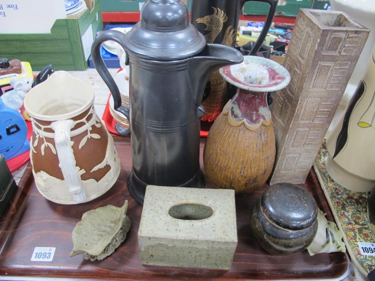 Sylvac Tall Coffee Pot, XIX Century jug featuring sporting dogs, MLF Studio Pottery:- One Tray