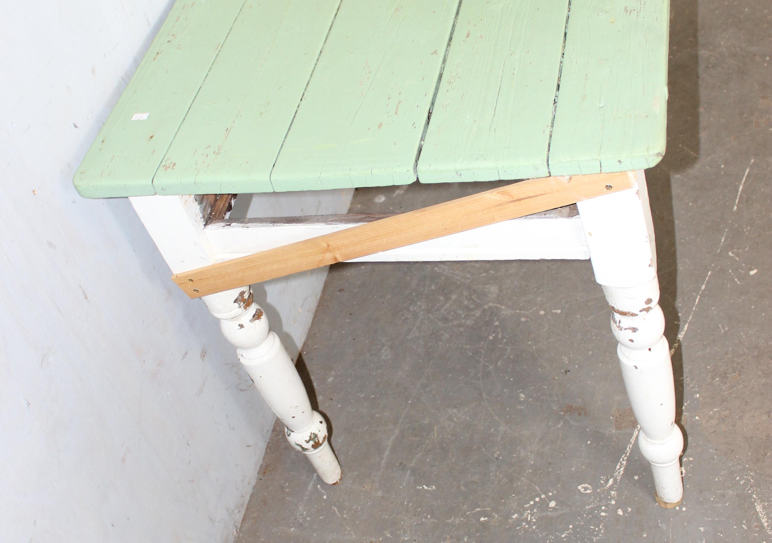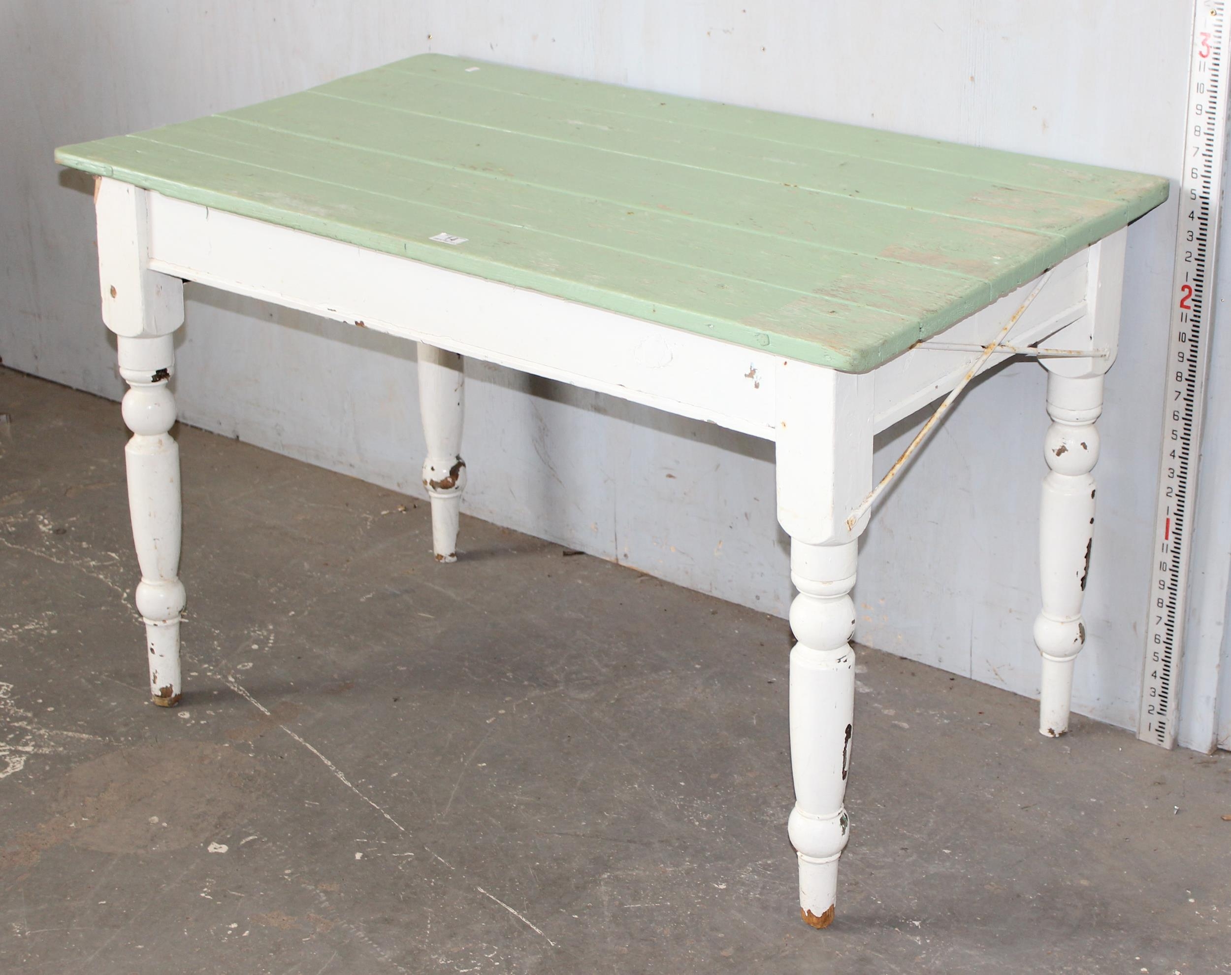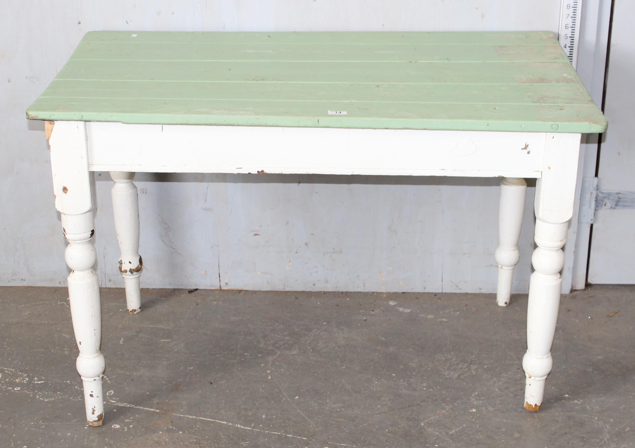 An antique painted pine kitchen table, approx 118cm x 70cm