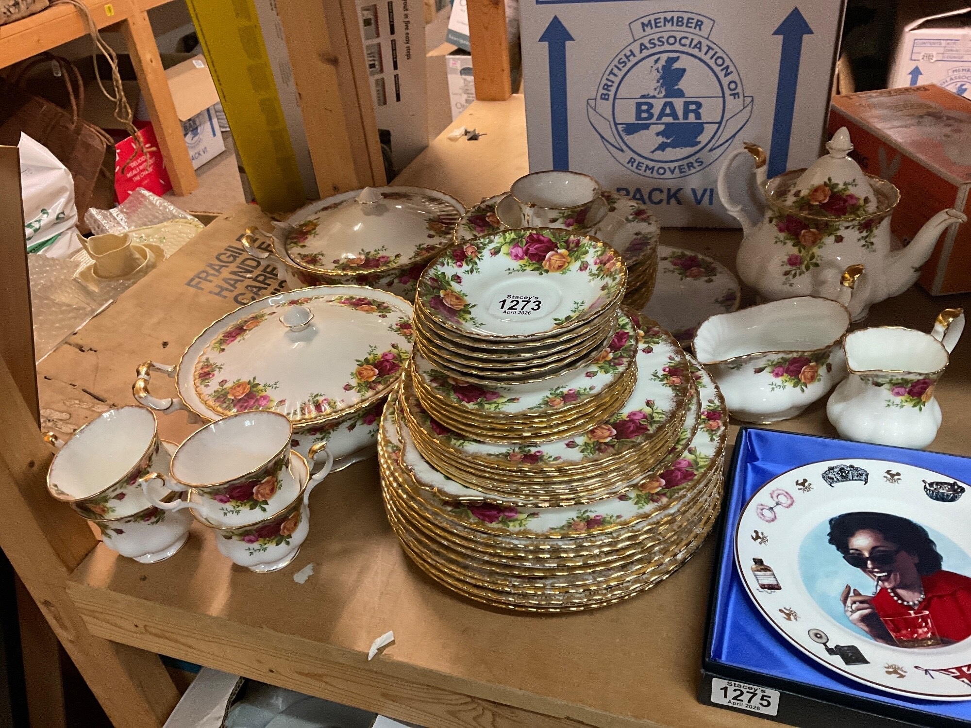 A Royal Albert country rose tea dinner service including tureens tea pot milk jug serving plates .