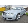 2005 Bentley Continental GT, 5998cc. Registration number TBC. VIN number SCBCE63WX5C029726. Engine number 011609. Sold with the V5C, MOT until October 2026, mileage 53,000, full service history, owners manuals. Interior and exterior videos are available on request. Introduced at the 2003 Geneva Salon, the Continental GT was the most technologically advanced Bentley in many years. Powered by the marque's first all-new engine since 1959, its twin-turbocharged 5998cc W12 was allied to six-speed ZF Tiptronic transmission, with a quoted 552bhp and permanent four-wheel drive, the GT was capable of a 0-60mph in 4.8 seconds and 198mph. Equipped with sophisticated independent suspension and ventilated ABS disc brakes all-round, the GT could have many optional upgrades. ??? in Moonbeam Silver Metallic with black leather and piano finish dash and consoles has only had 3 owners. It was first registered in Northern Ireland before going to Scotland and has nine Bentley service stamps in the book plus a Bentley specialist, the last at 50,272 miles in 2019 where some £4,200 was spent. The first owner would appear to have been the Dealer as it was registered on the 20th April 2005 and the second owner, Walter Malcolm Ltd bought it on the 17th May 2005. He kept it until 2010 when it came to Yorkshire with Roger Mills, our vendor bought it from him in 2015. In 2018 it had four new Pirelli tyres at 45,000 miles, as well as brake discs and service at a local garage. It has seen little use over the past few years, approximately 1,000 pa on special trips. It should be noted that the leather roof lining is drooping a bit and that the EGR sensor bank 1, sensor 2 needs replacing .