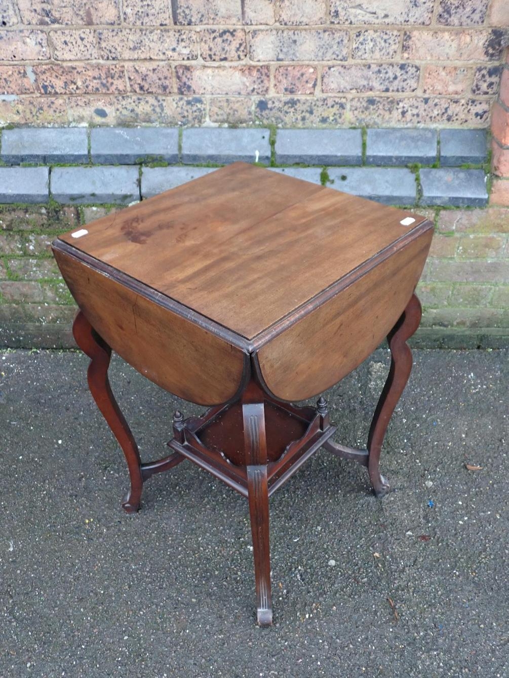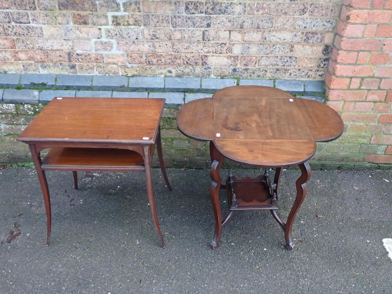 A LATE VICTORIAN WINDOW TABLE WITH FOUR DROP FLAPS45cm square, and a mahogany occasional table with undershelf and fine tapering splayed legs, 62cm wide (2)