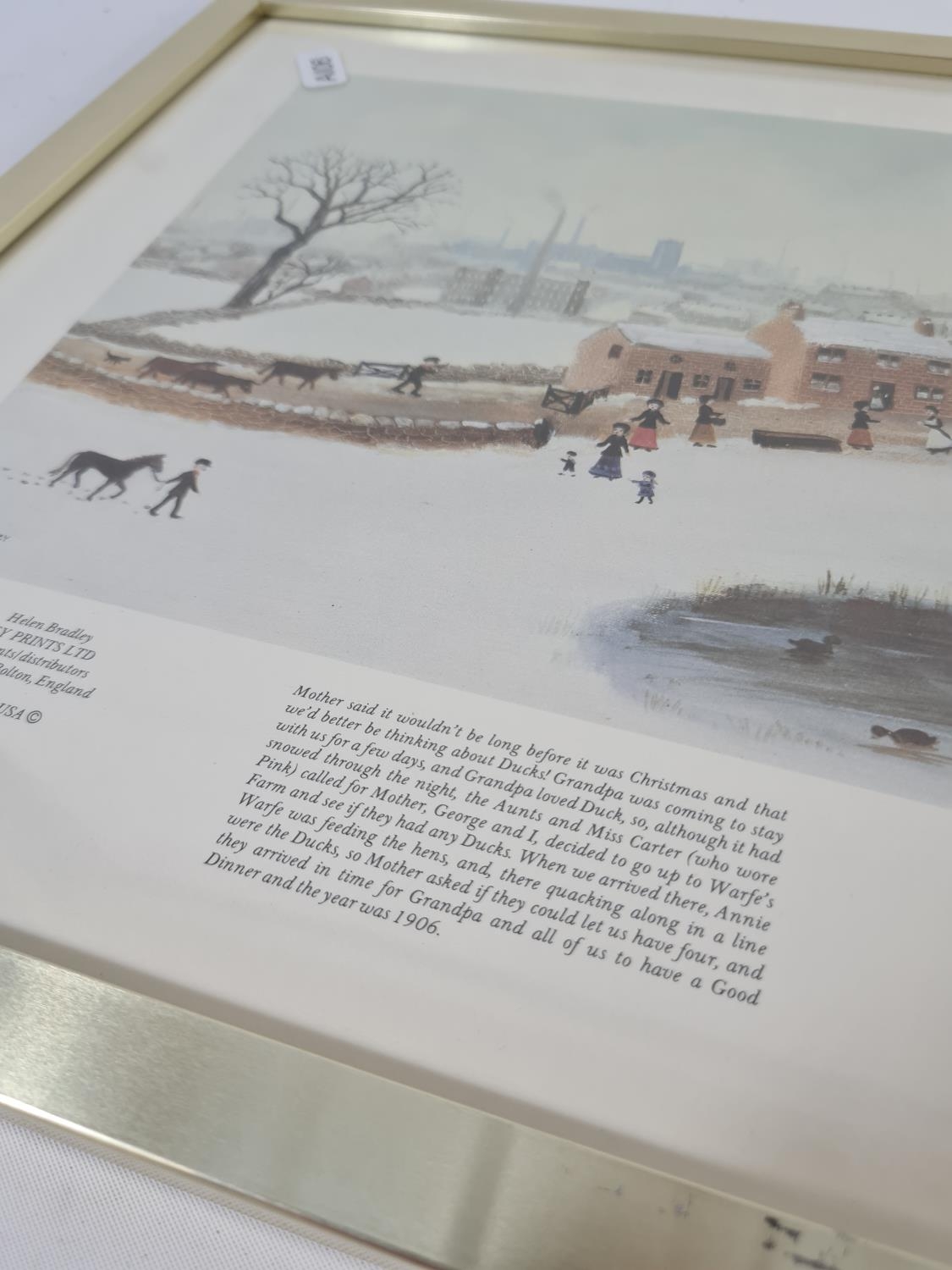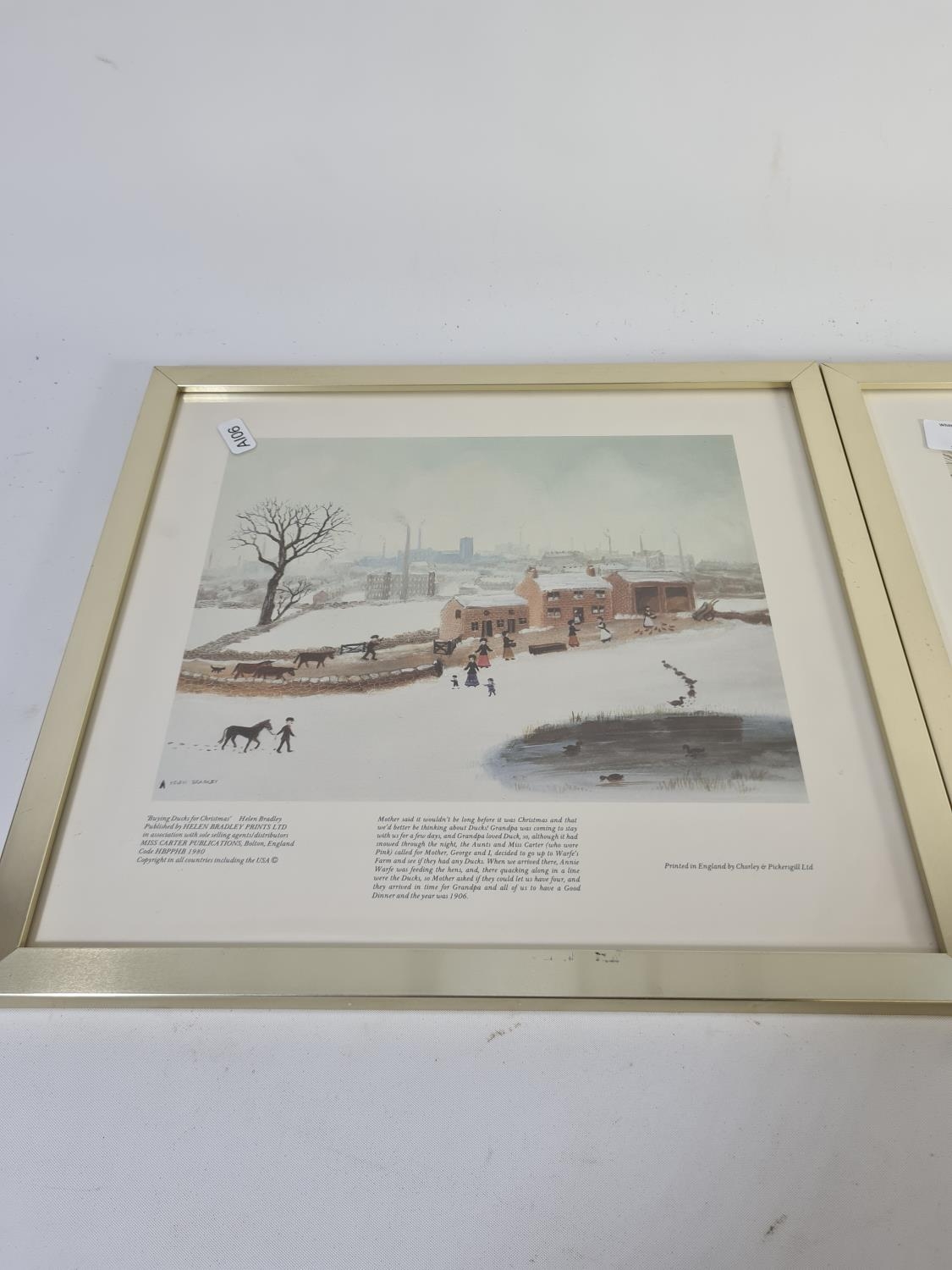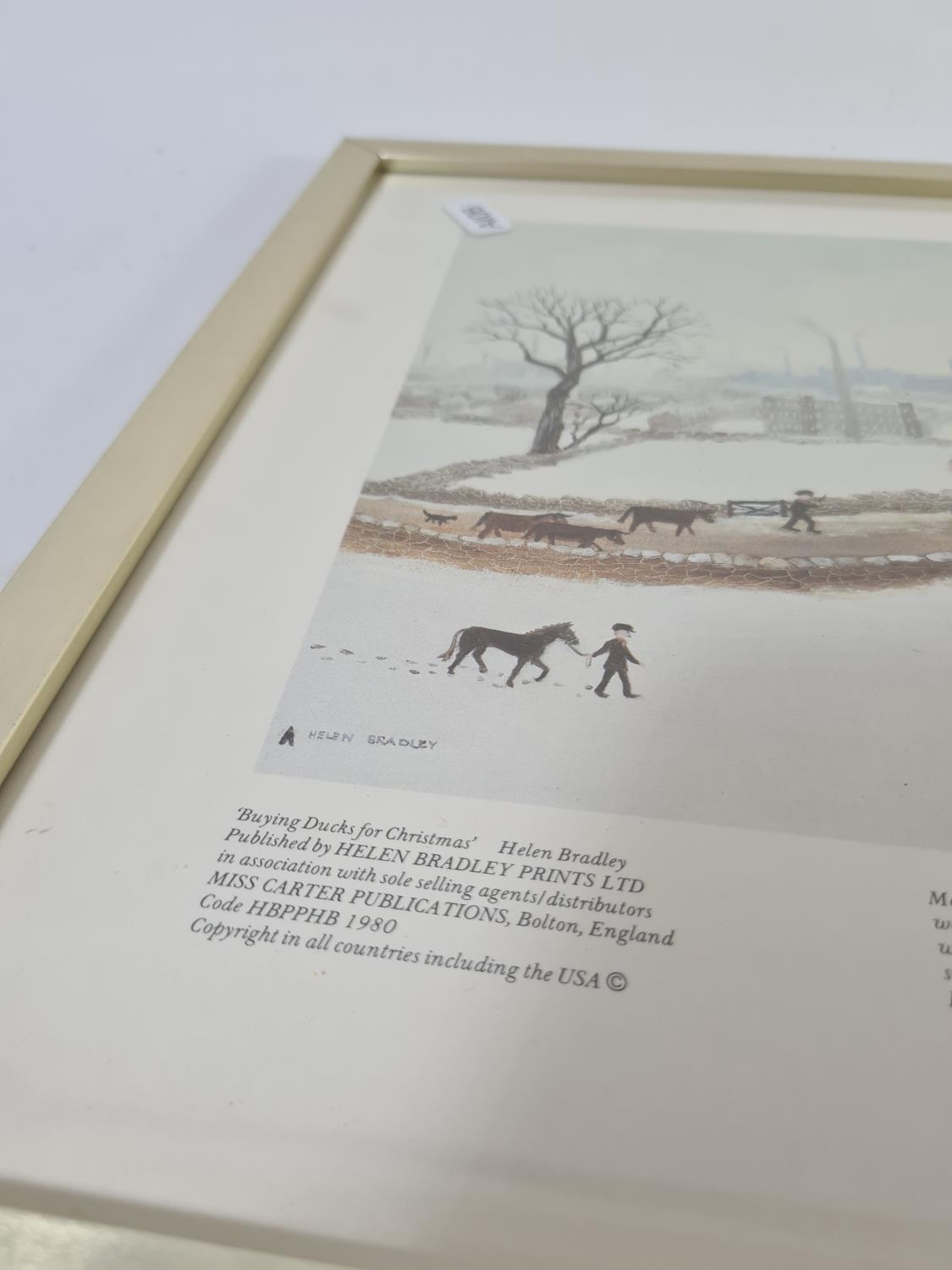 Two framed Helen Bradley prints, one titled ‘Going Through the Woods’ and one titled ‘Buying Ducks For Christmas’ - both approx. 35cm x 33cm