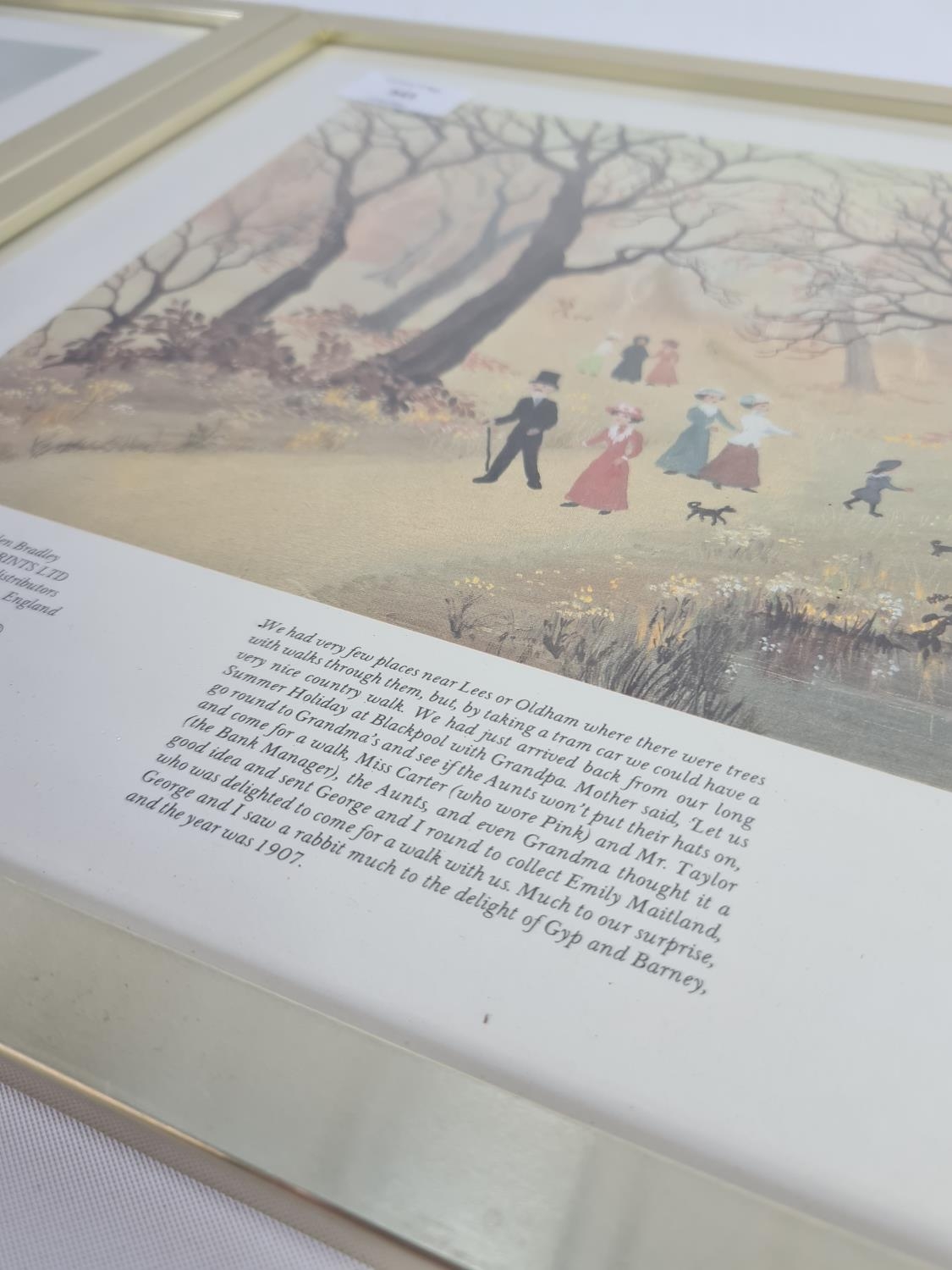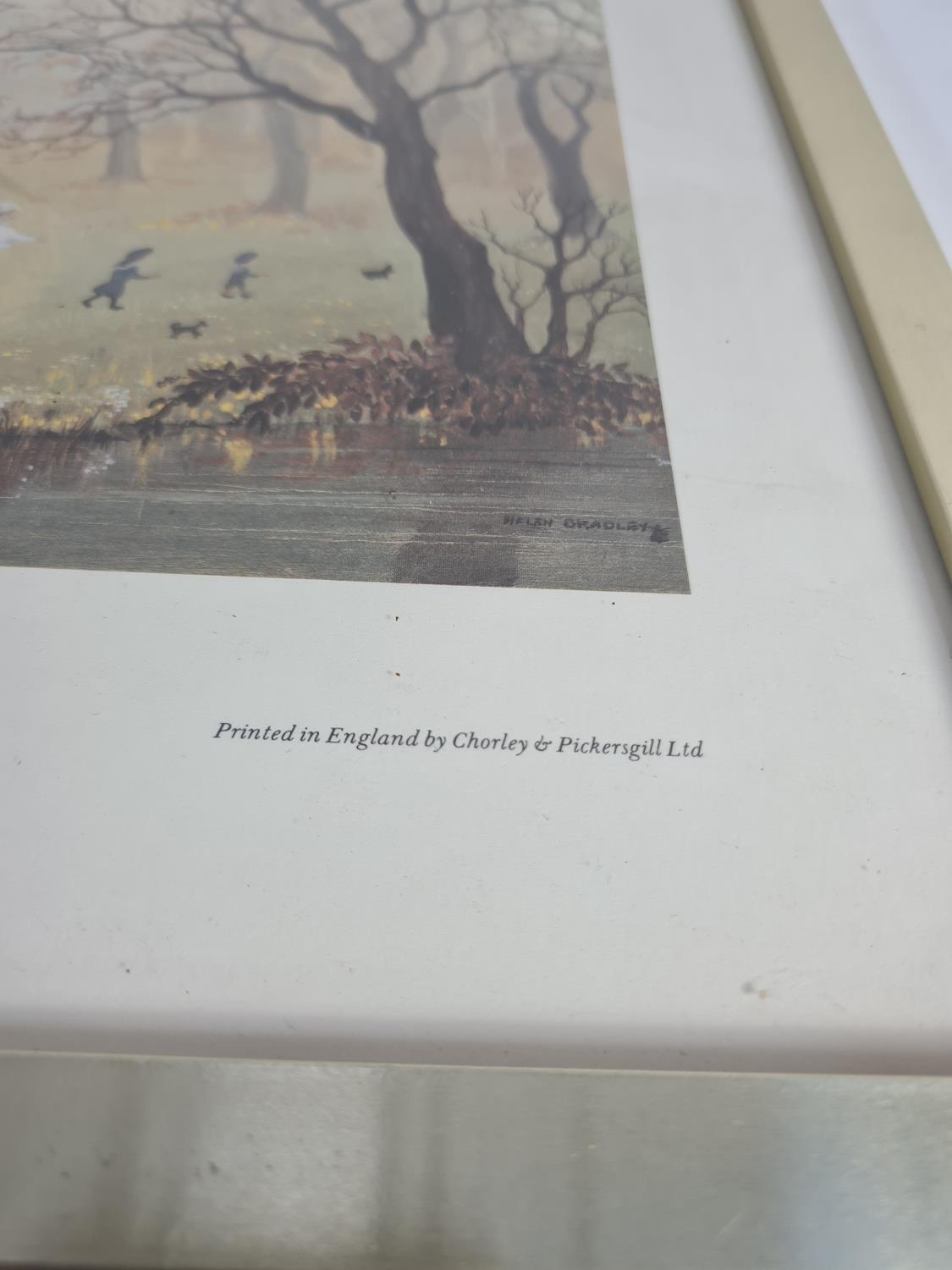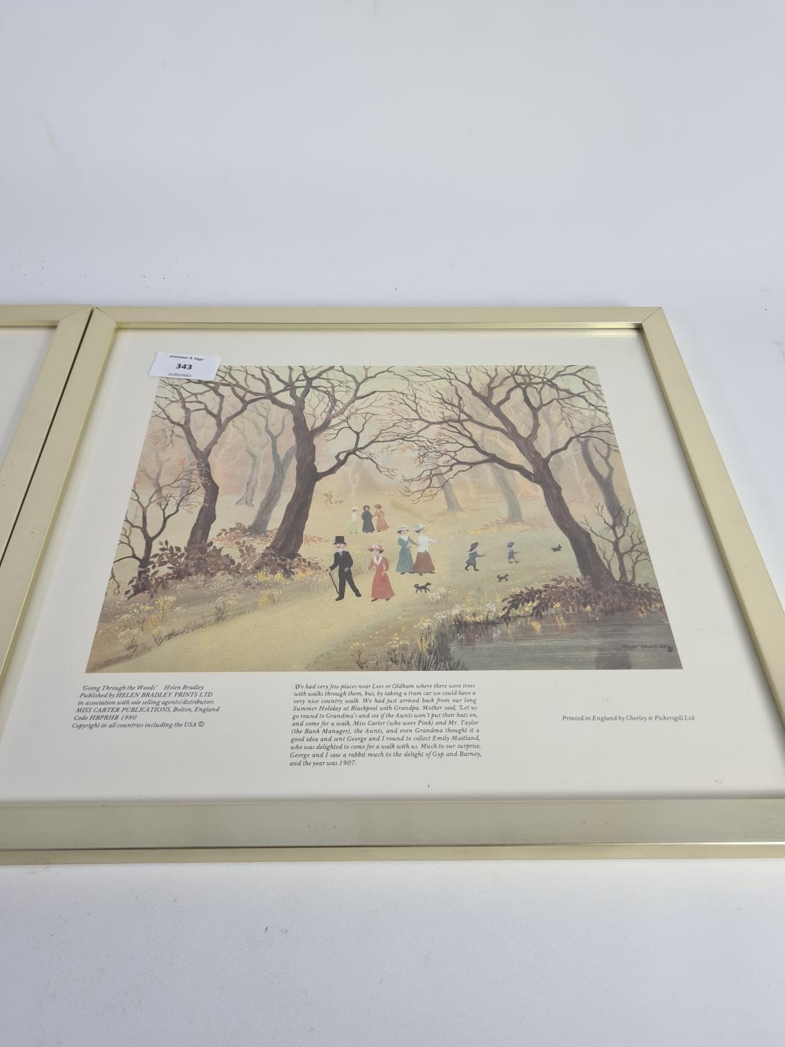 Two framed Helen Bradley prints, one titled ‘Going Through the Woods’ and one titled ‘Buying Ducks For Christmas’ - both approx. 35cm x 33cm