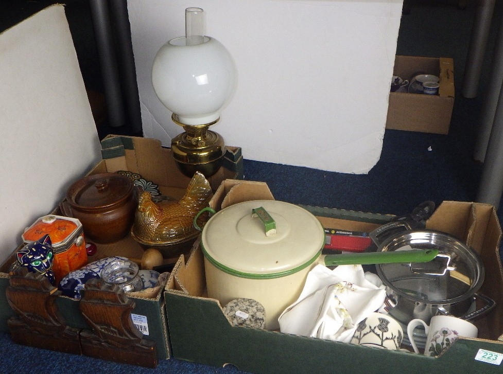 An oil lamp together with various kitchenalia (2)