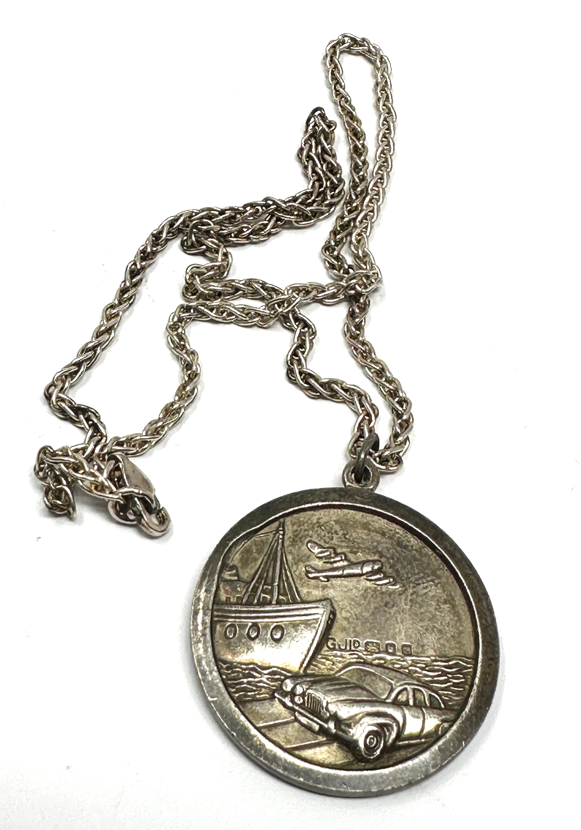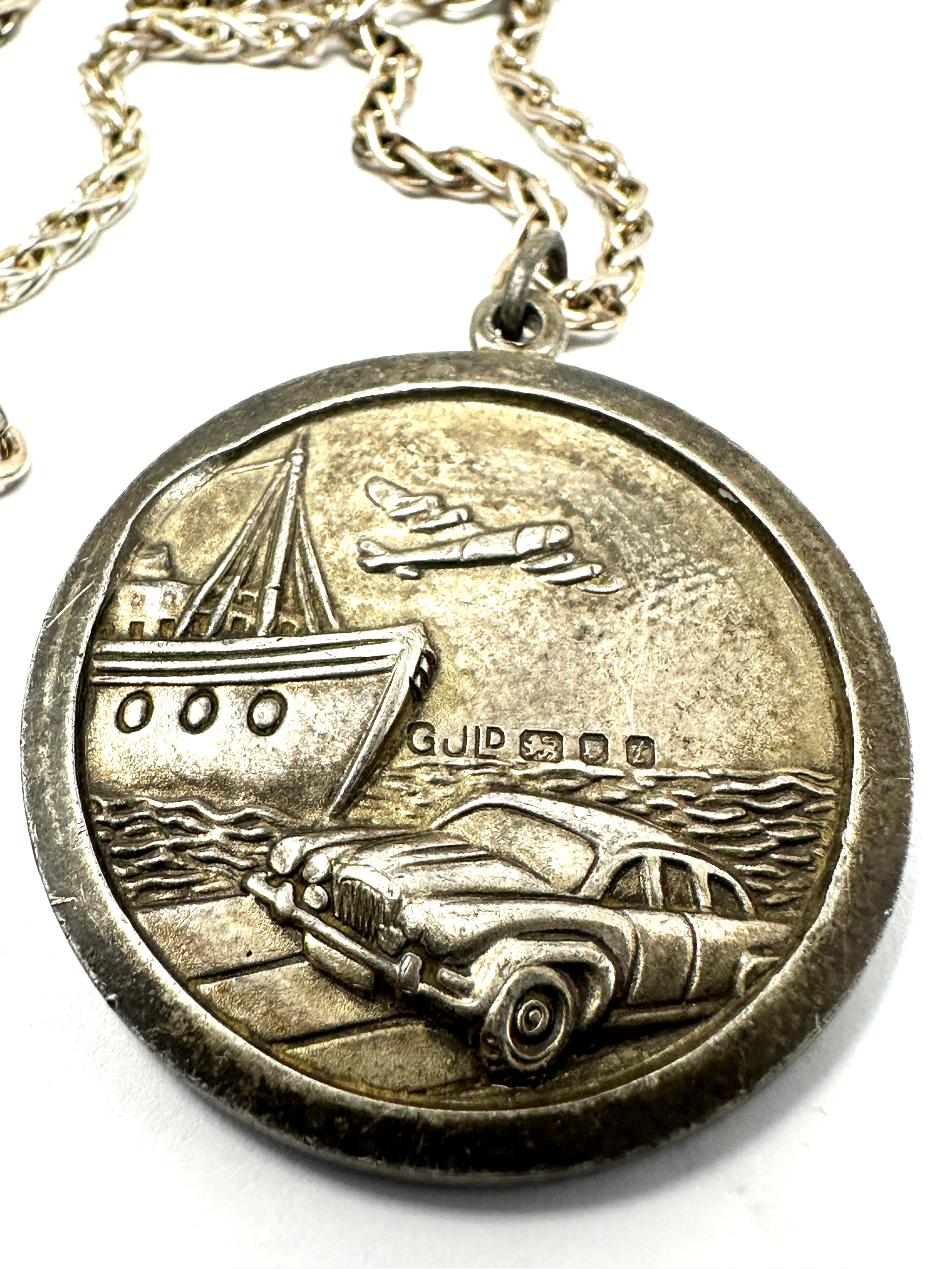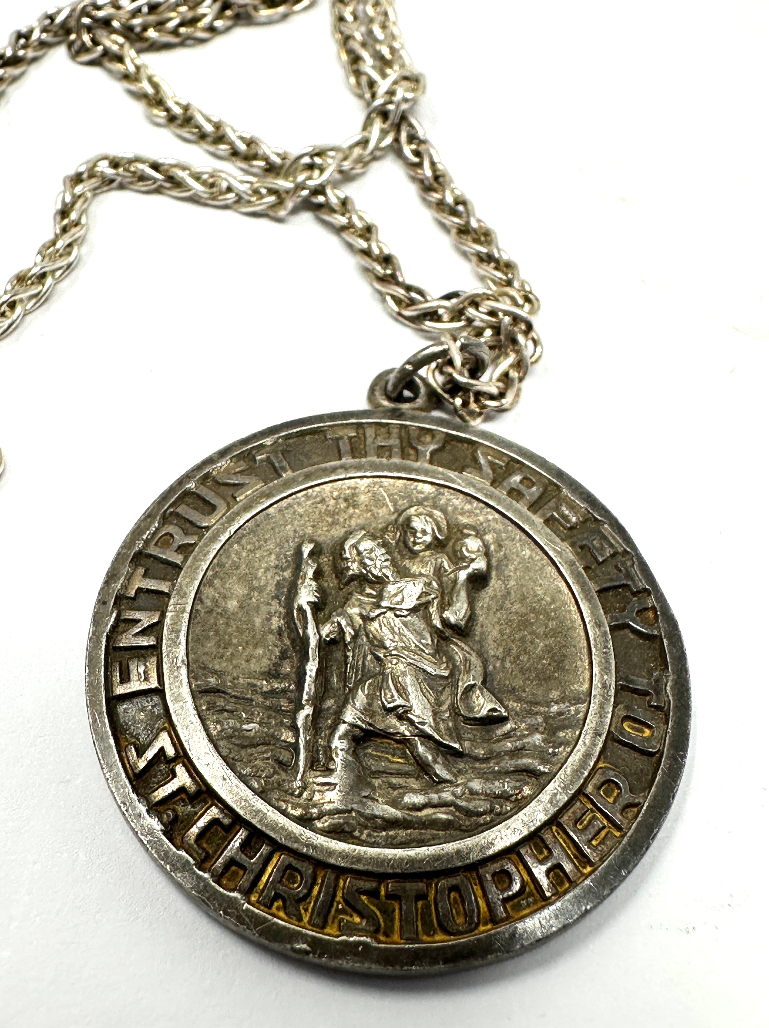 Large vintage georg jensen silver st christopher pendant necklace measures approx 3.1cm dia