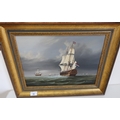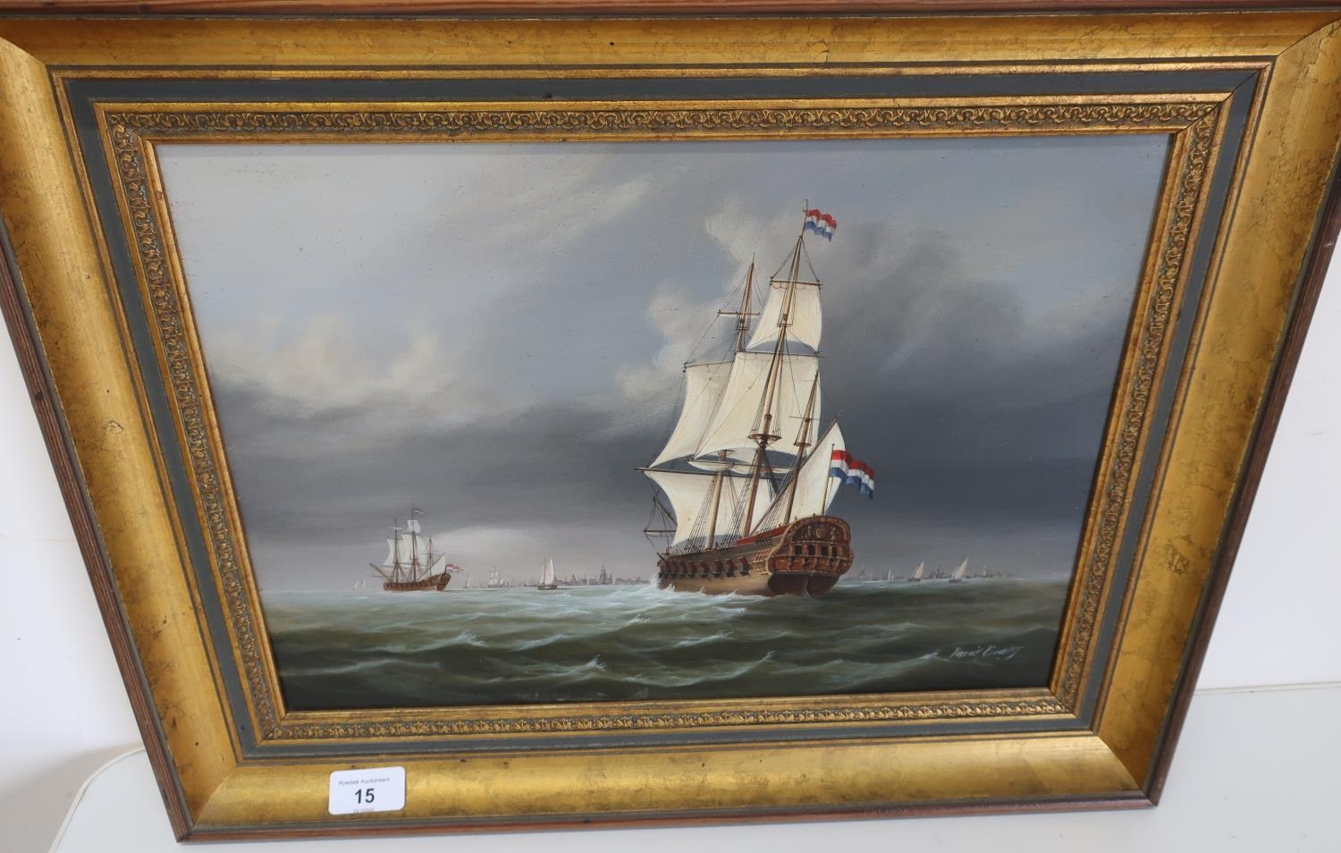 David Beaty (Contemporary): Dutch Man of War in choppy water, oil on board, signed (51cm x 41cm including frame)