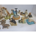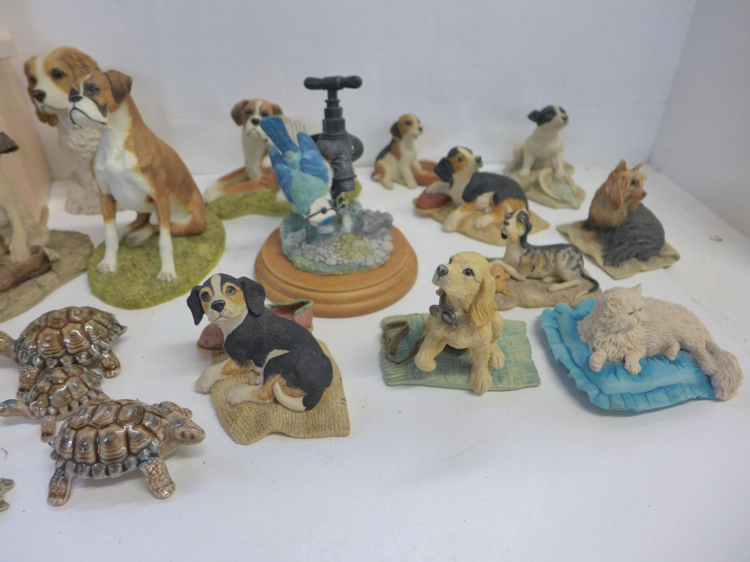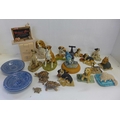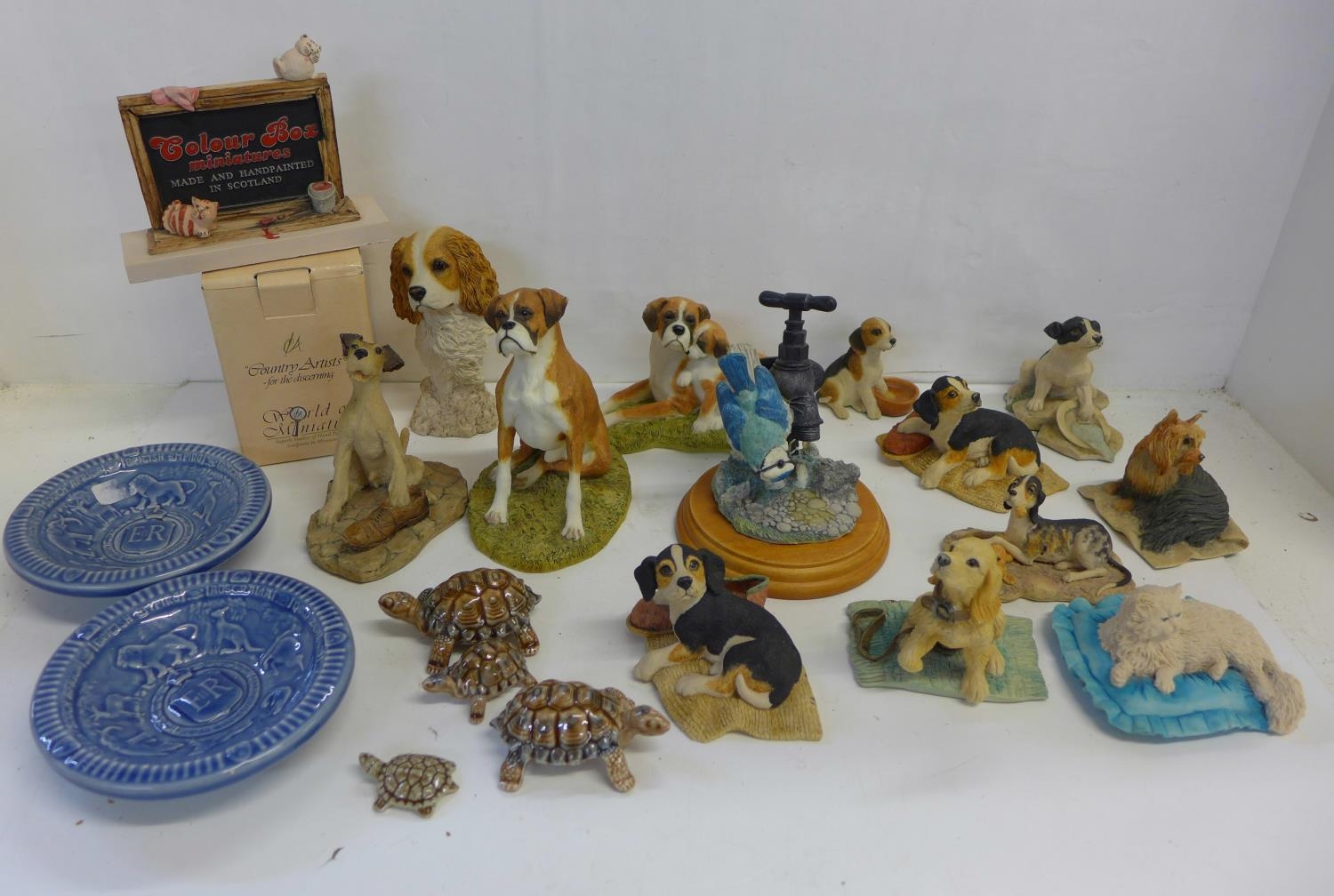 A collection of animal figures including Wade, Border Fine Arts, etc., and two Wade dishes