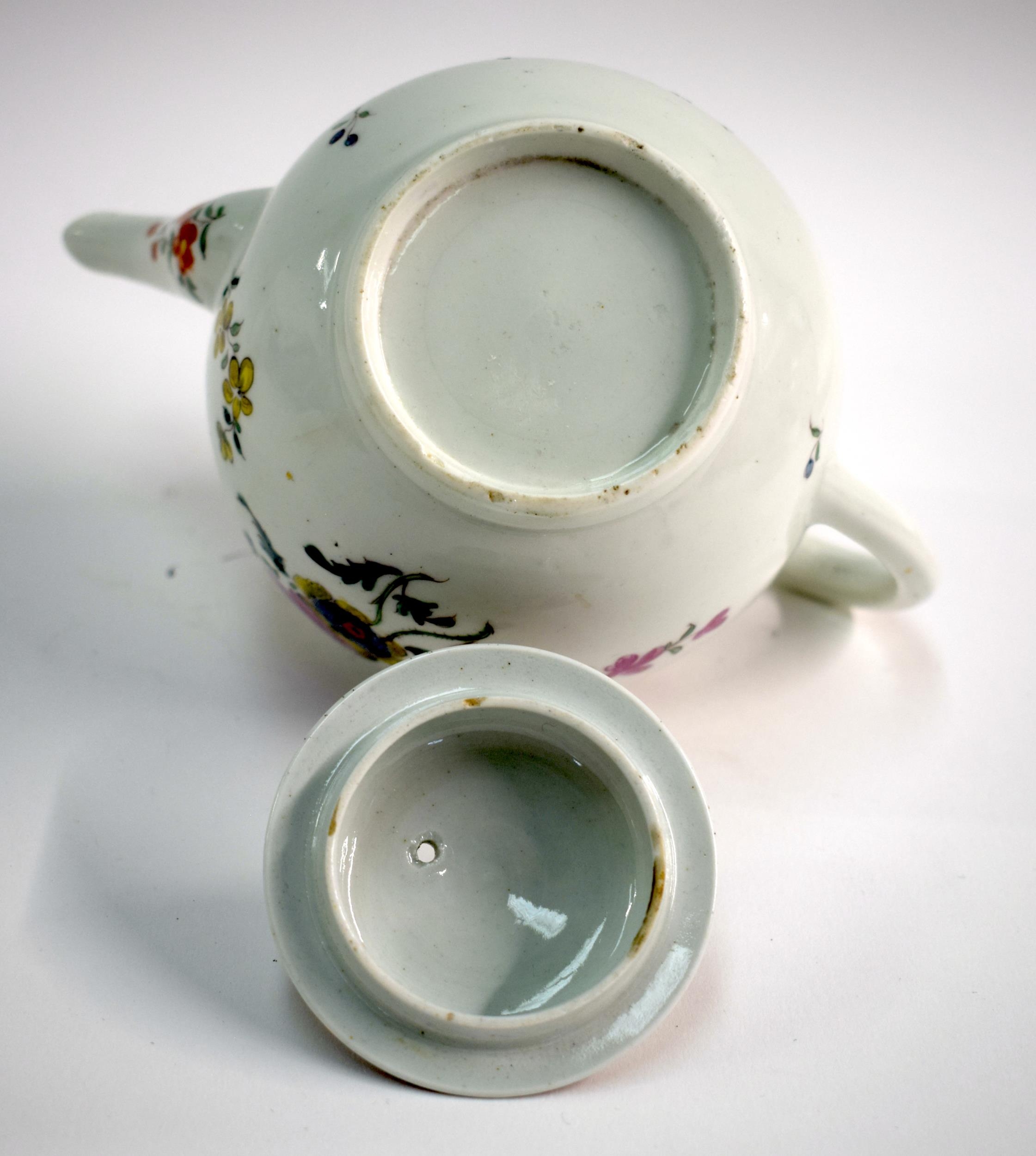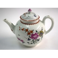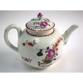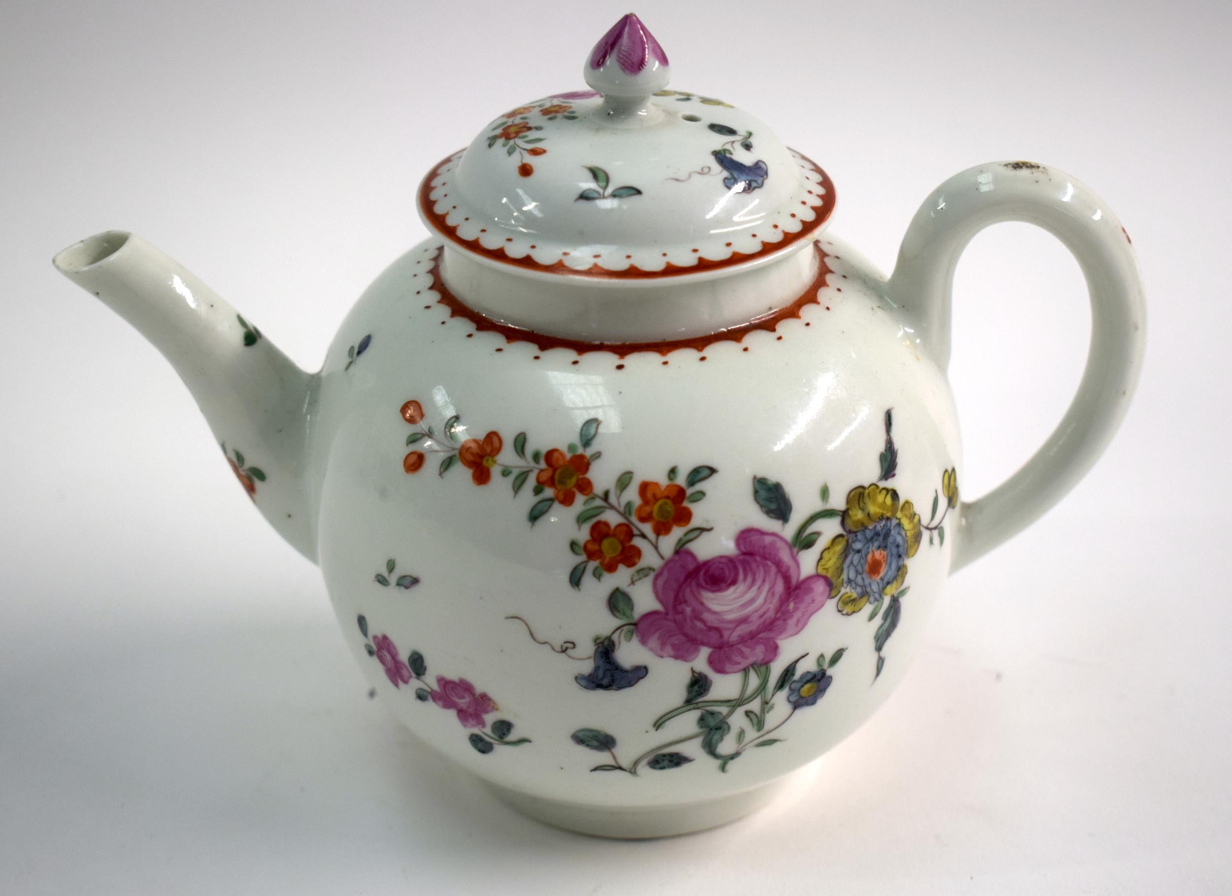 18th century Worcester teapot and cover painted with painted on each side with a large cabbage rose and other flowers. 14 cm high