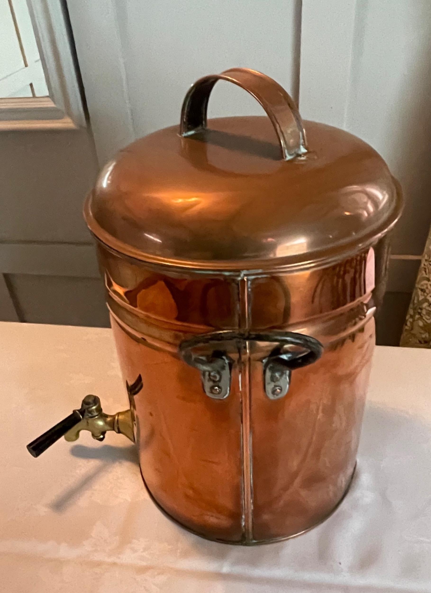 An ANTIQUE copper urn with brass tap stands 15" tall - this item came from an old INN