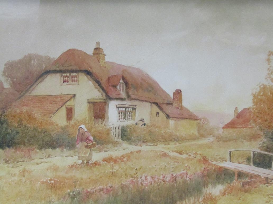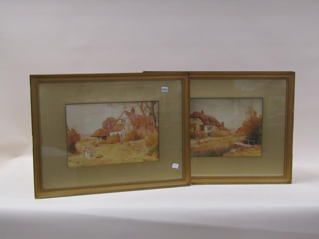 H ENGLISH - PAIR, COUNTRY COTTAGES, SIGNED F/G, WATERCOLOURS, 30CM X 45CM