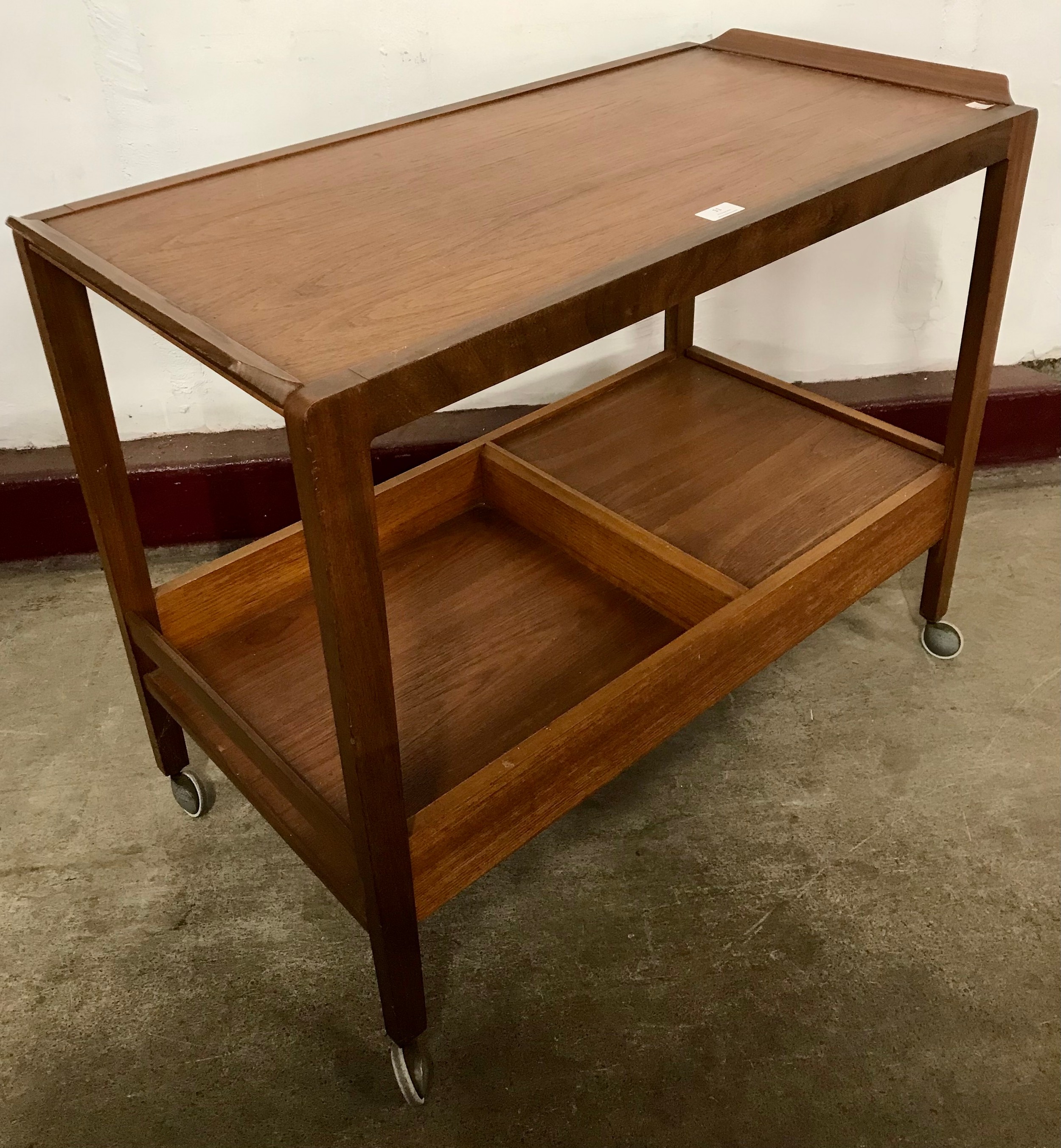 A Remploy teak two tier cocktail trolley