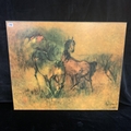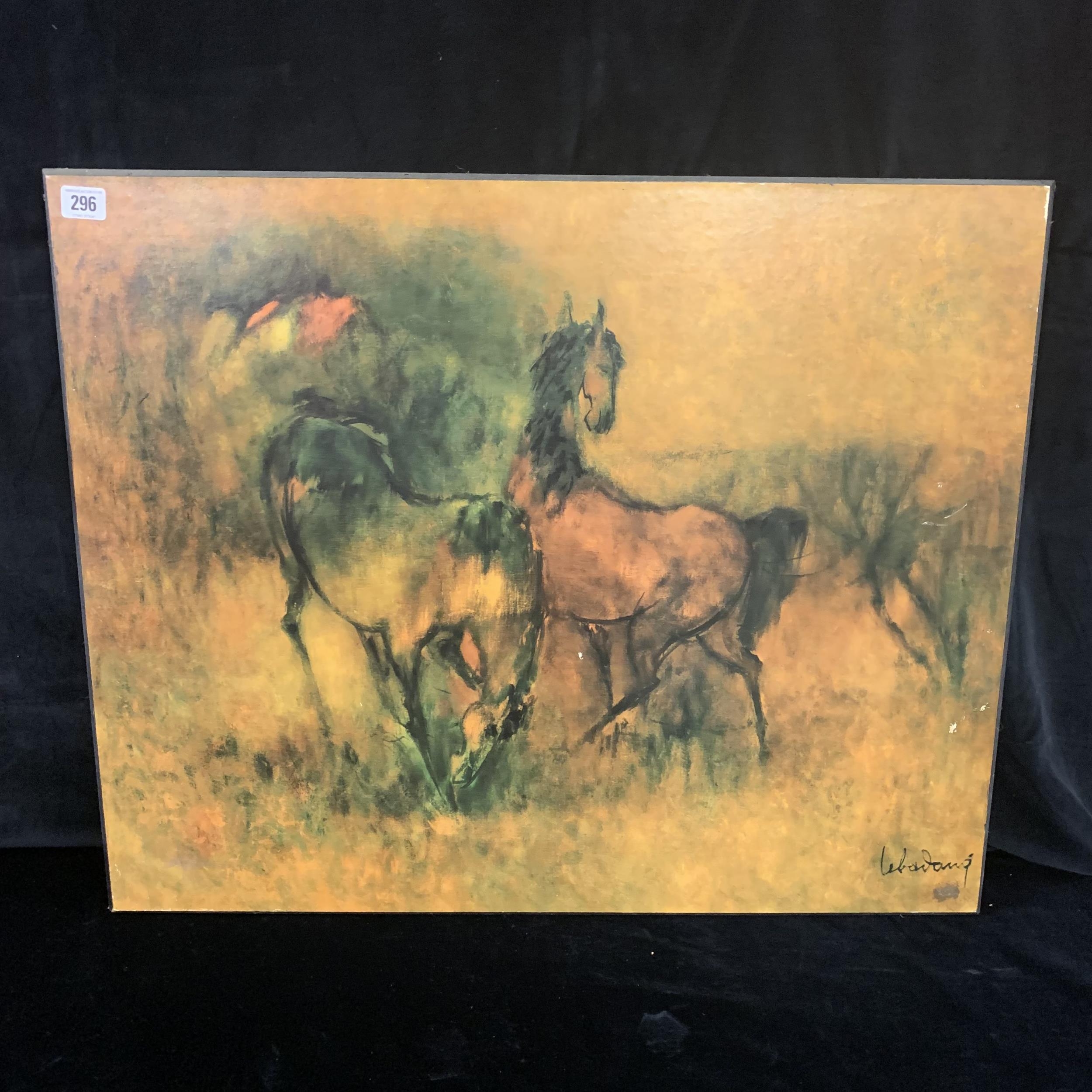 Large equestrian wild horses print on board signed by artist Lebadang