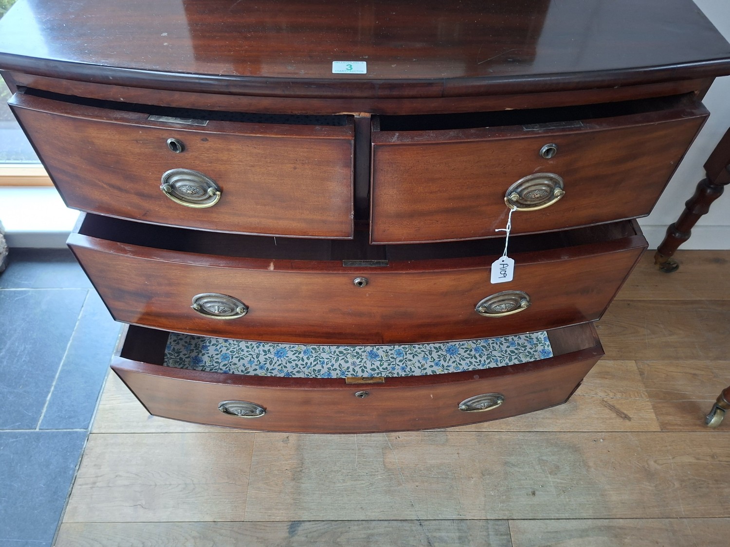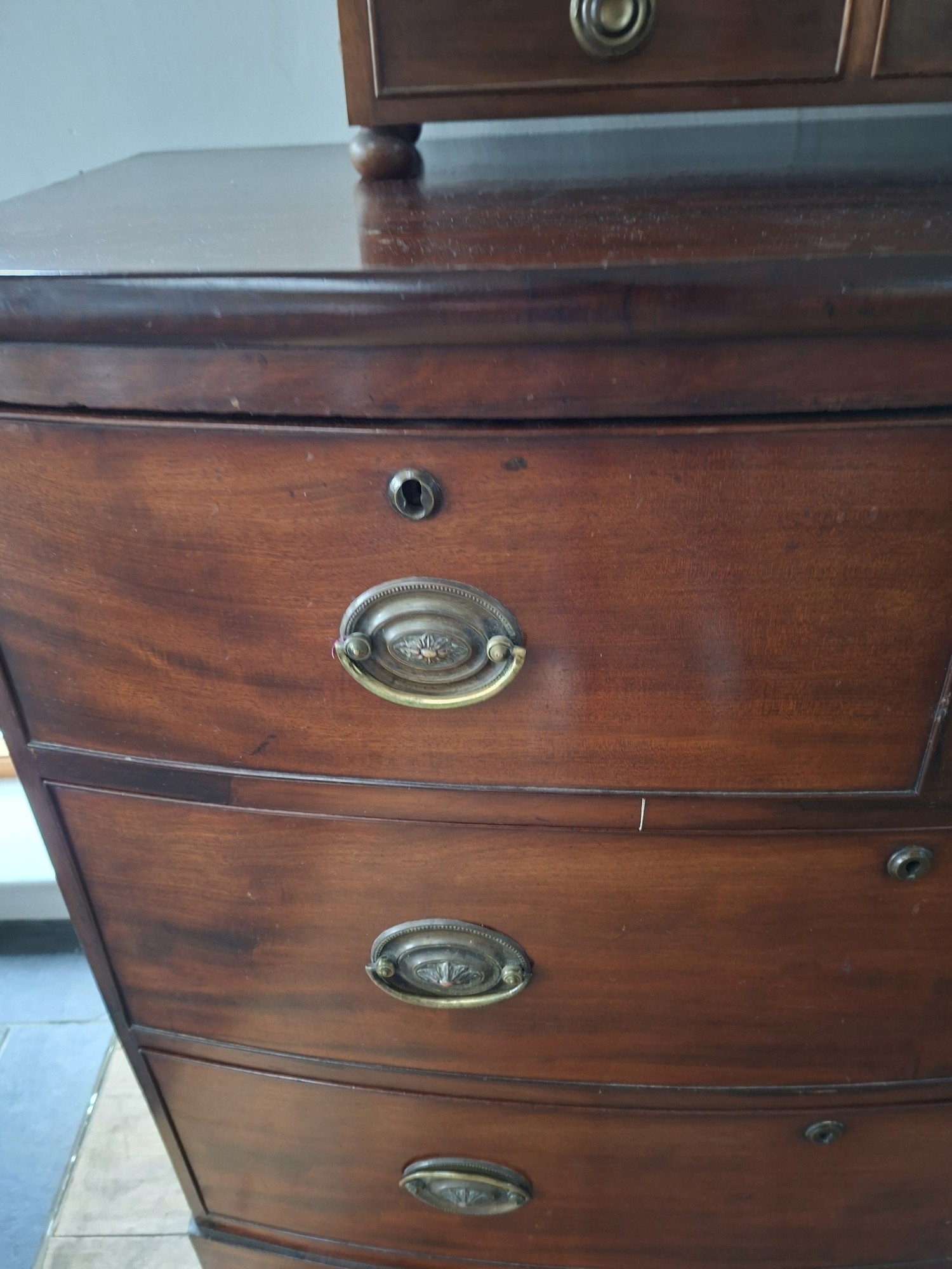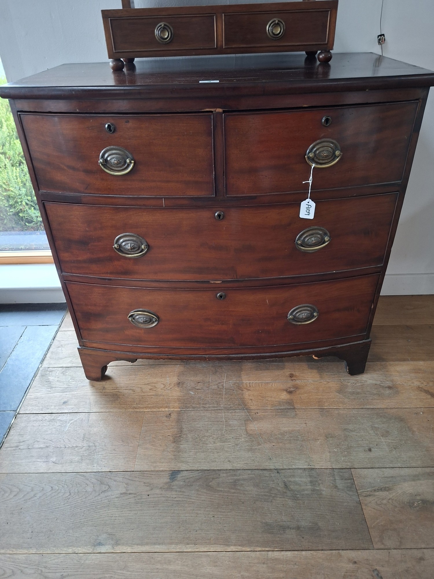 Small 2 over 2 bow fronted chest of drawers 87cm H x 97cm W x 43cm D approx.