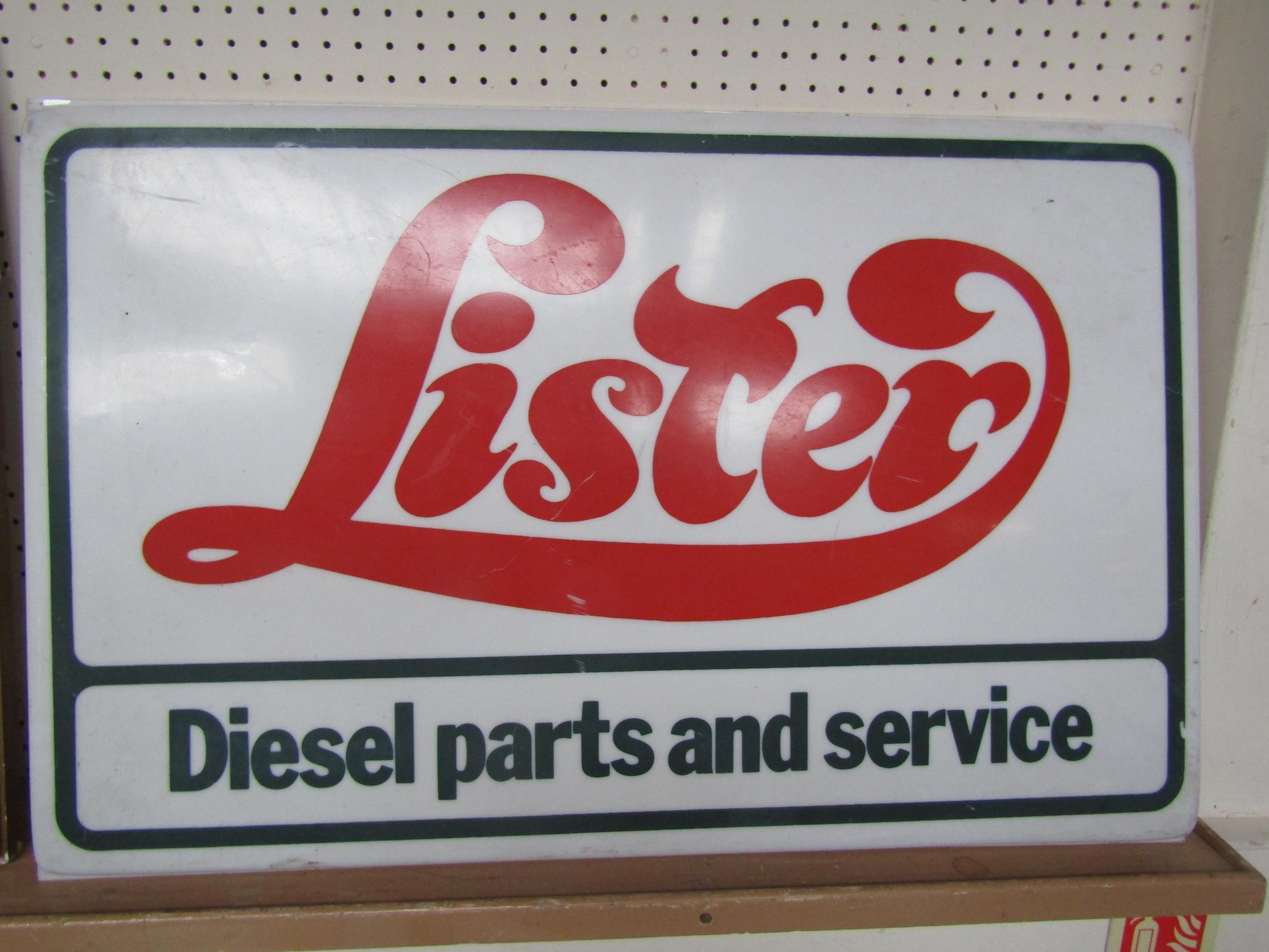 A moulded light cover "Lister Diesel Parts and Service", 73cm x 48cm