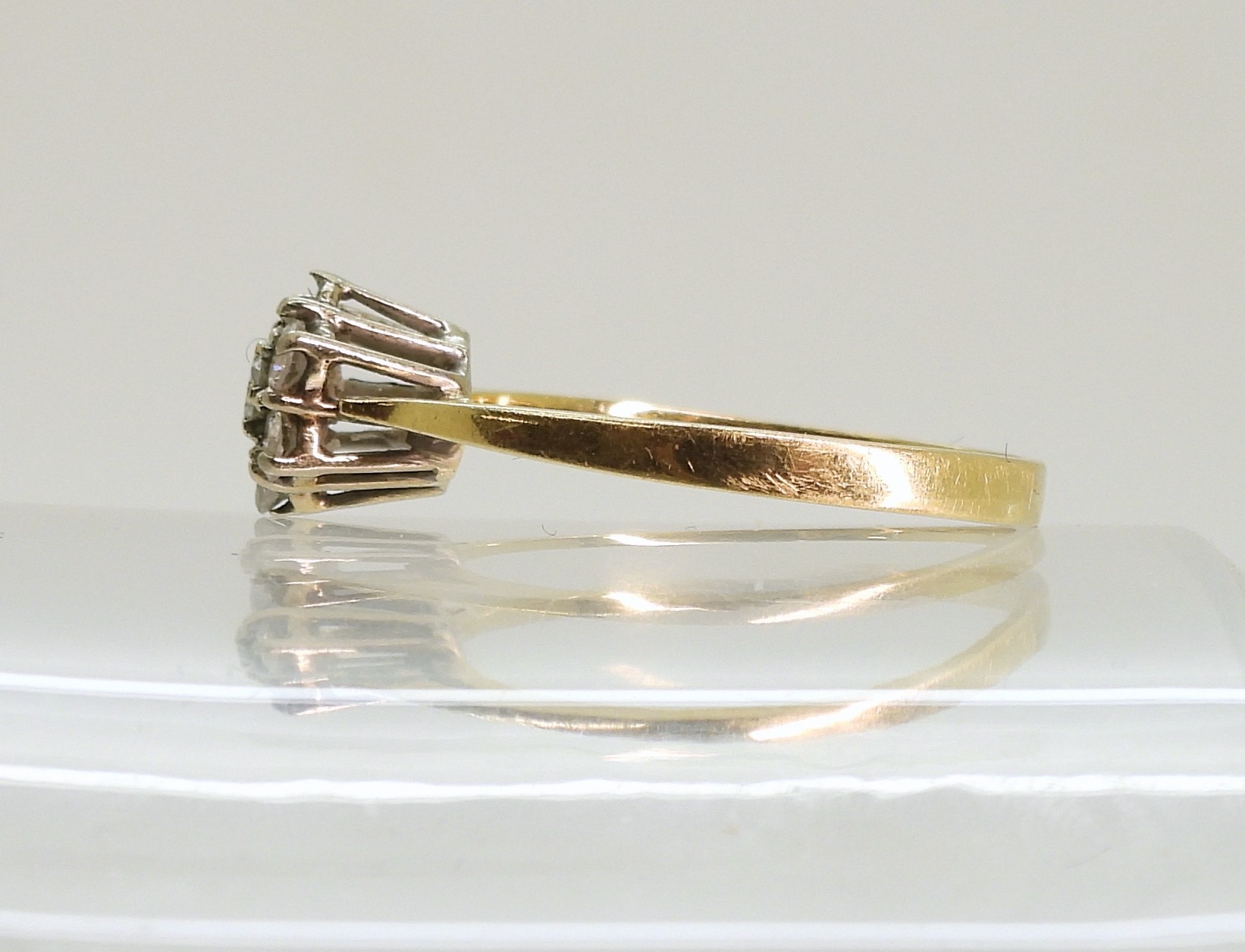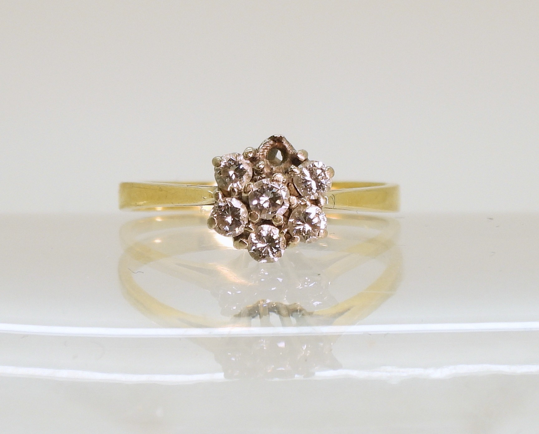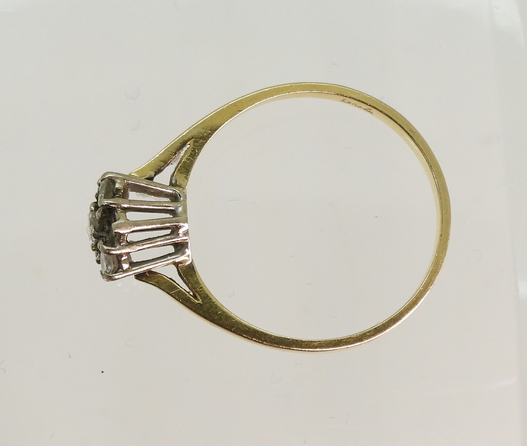 An 18ct gold diamond flower ring, (one diamond missing) size P1/2, weight 2.5gms
