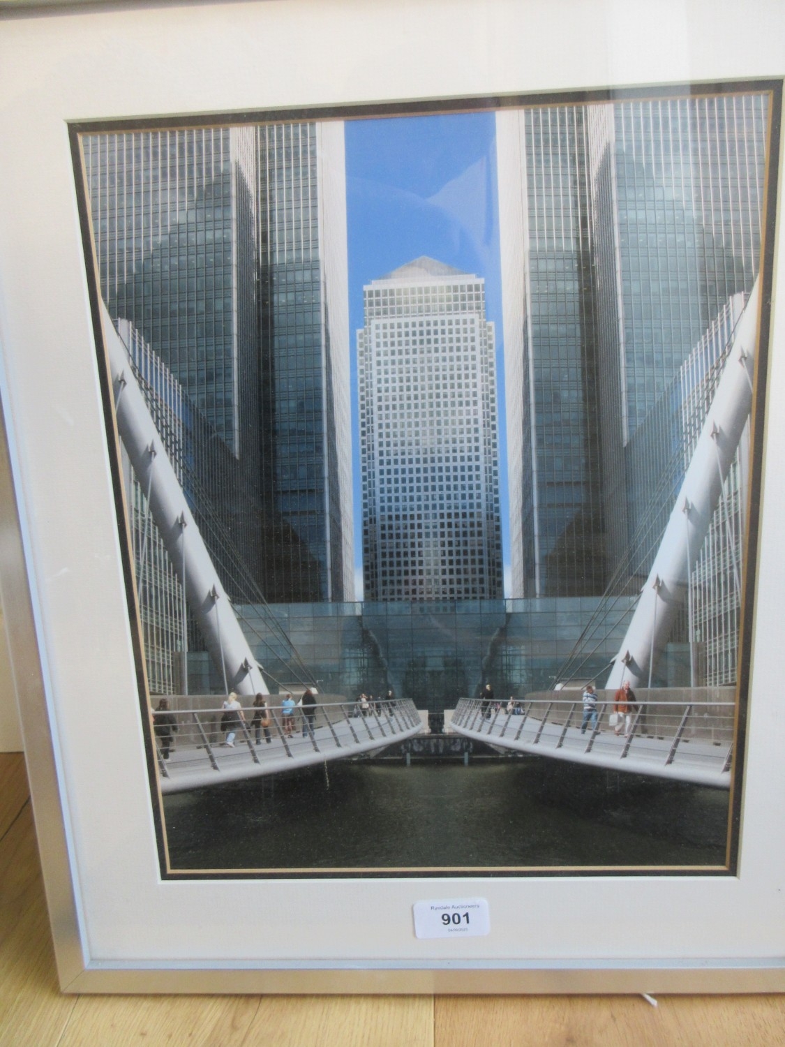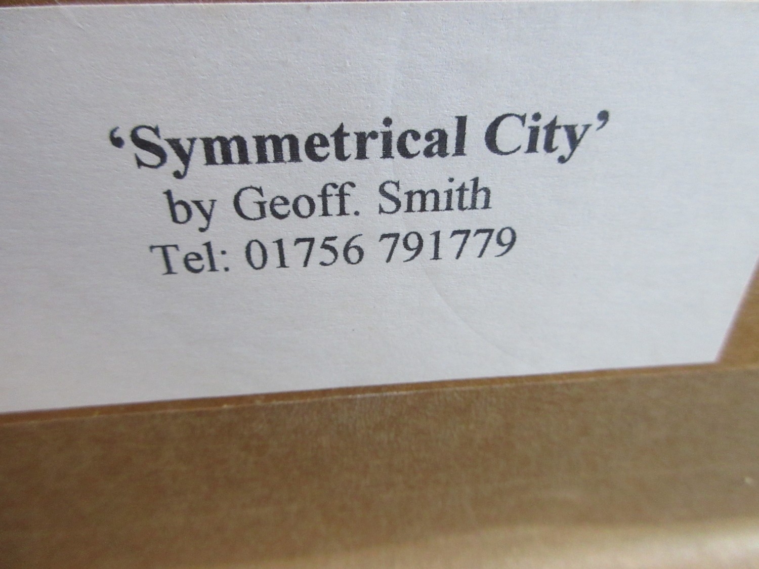 Geoff Smith (British Contemporary); 'Symmetrical City' Canary Wharf Tower, photographic colour print, in frame, labelled verso, 49cm x 41cm