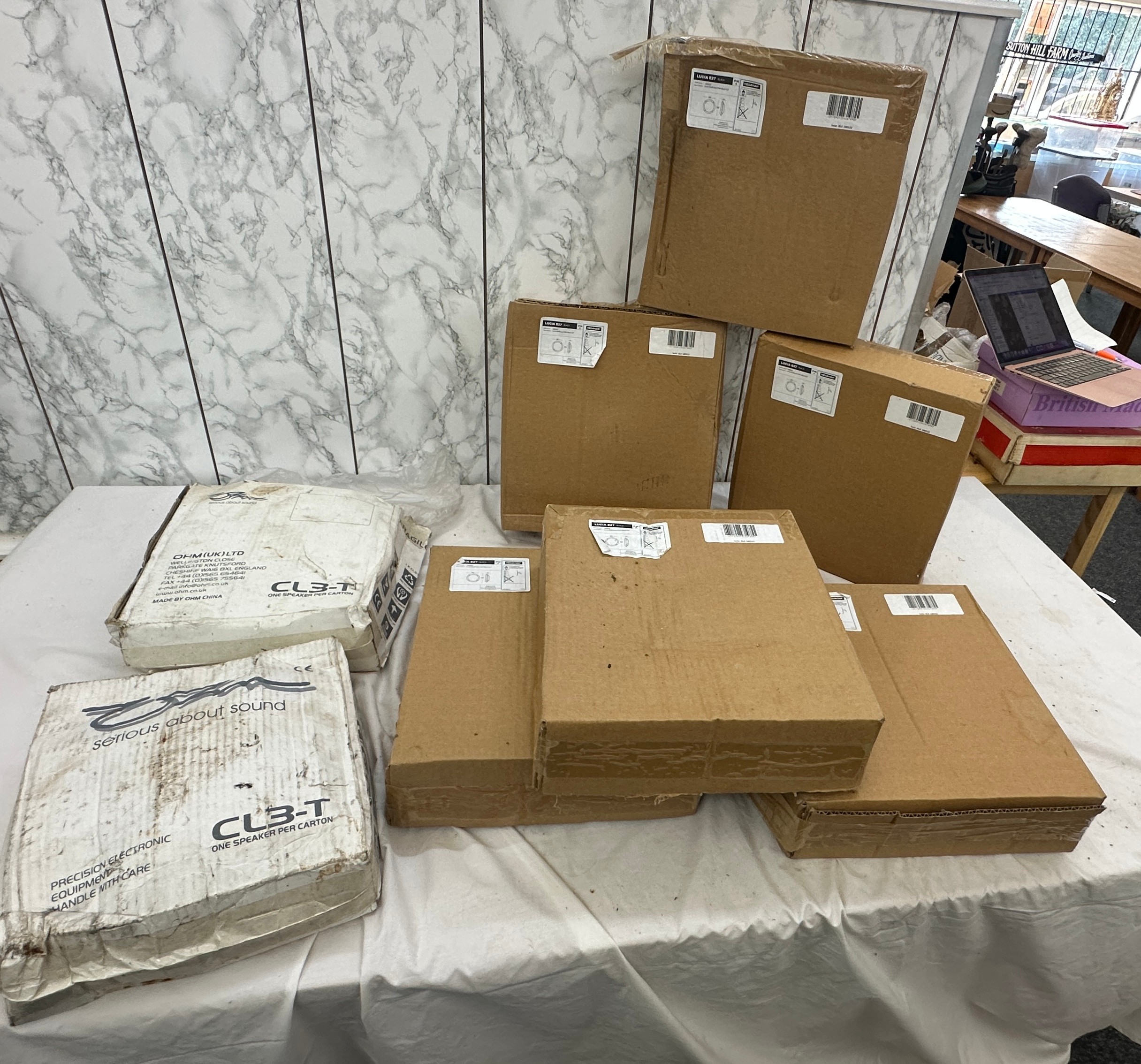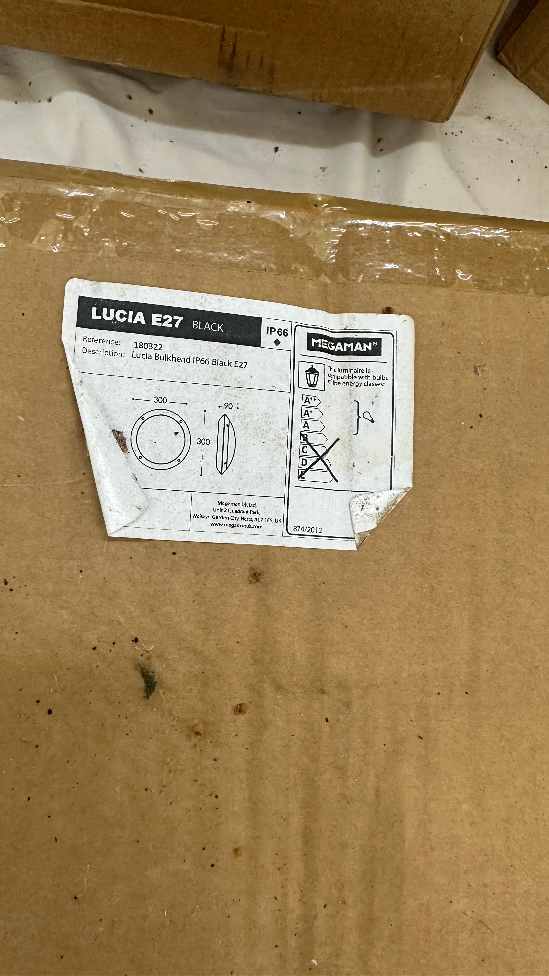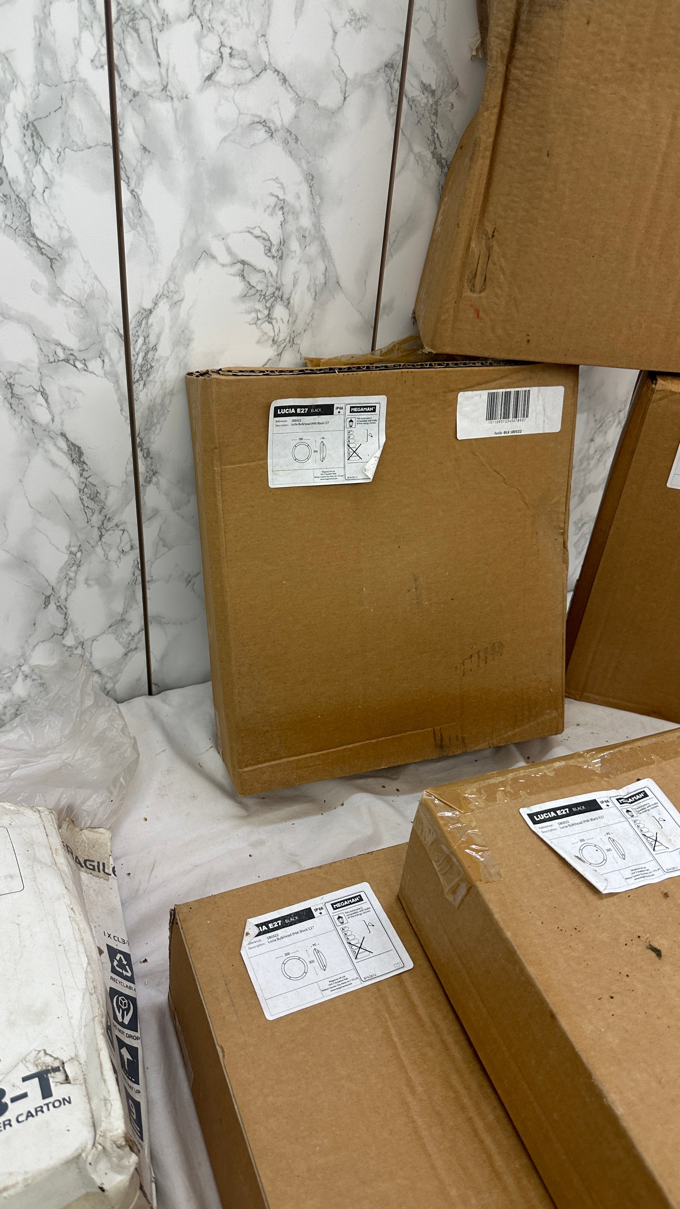 6 brand new in box Lucia E27 bulkhead lights and two others, untested
